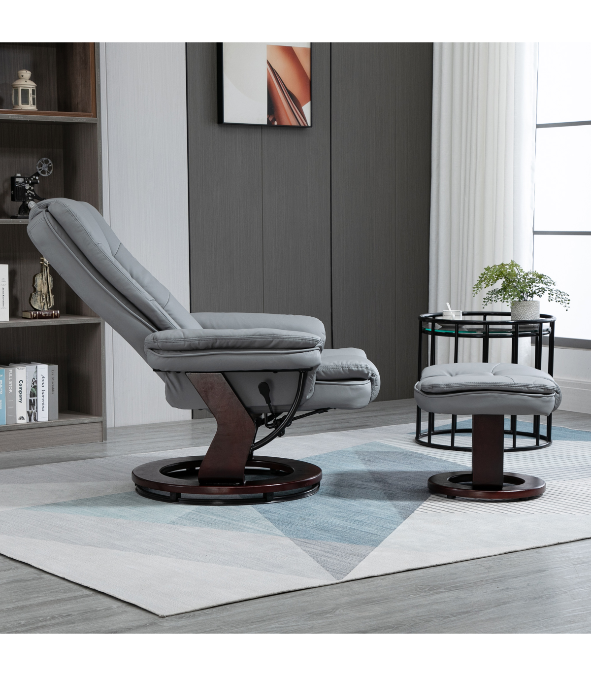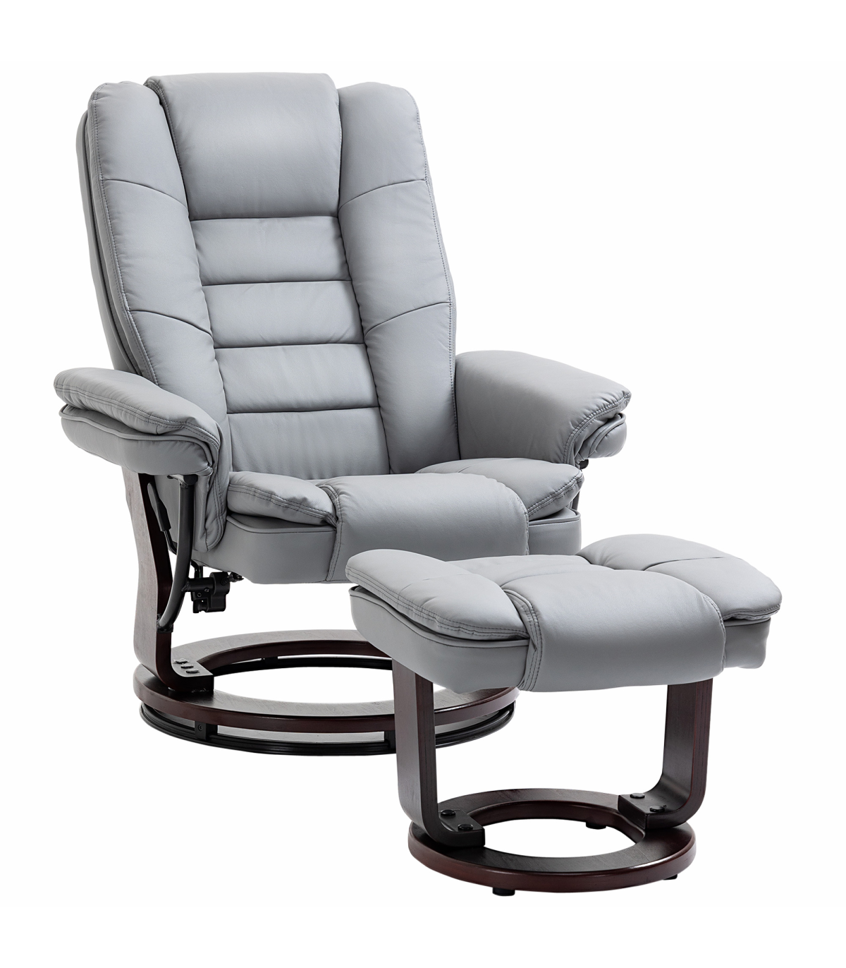 Swivel Manual Recliner and Footrest Set PU Lounge Chair Wood Base, Grey