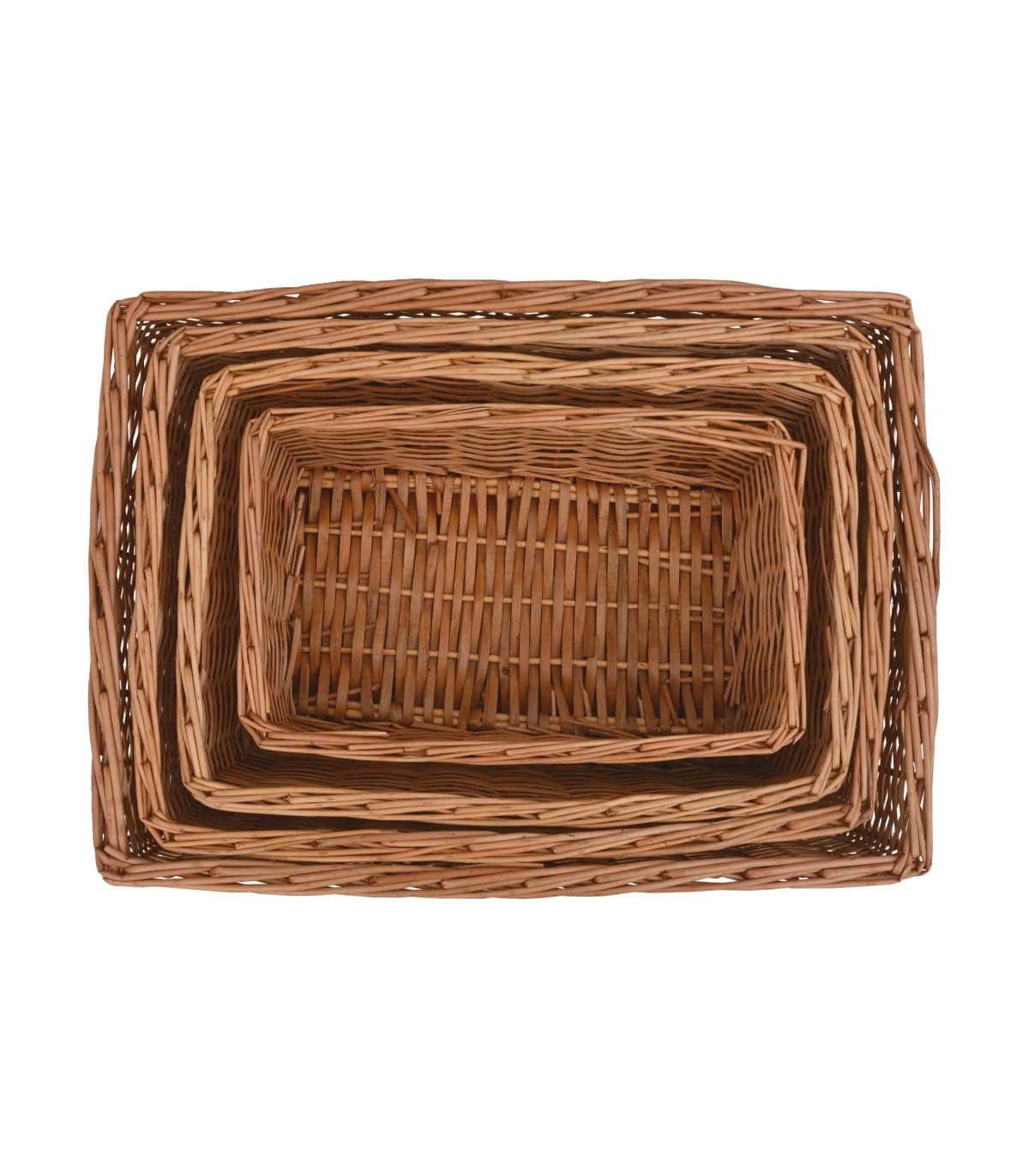 The 4-piece organiser set, with classic and functional design, will make a rustic and practical addition to your daily life. Made of willow, the organiser baskets are sturdy and durable. The rectangular boxes are versatile for daily organising and the largest box can be a laundry basket, providing ample space for your laundry. The attractive woven style adds natural charm to the set. Featuring a space-saving design, they can be stacked into the largest basket when not in use. Delivery includes 4 rectangular baskets.