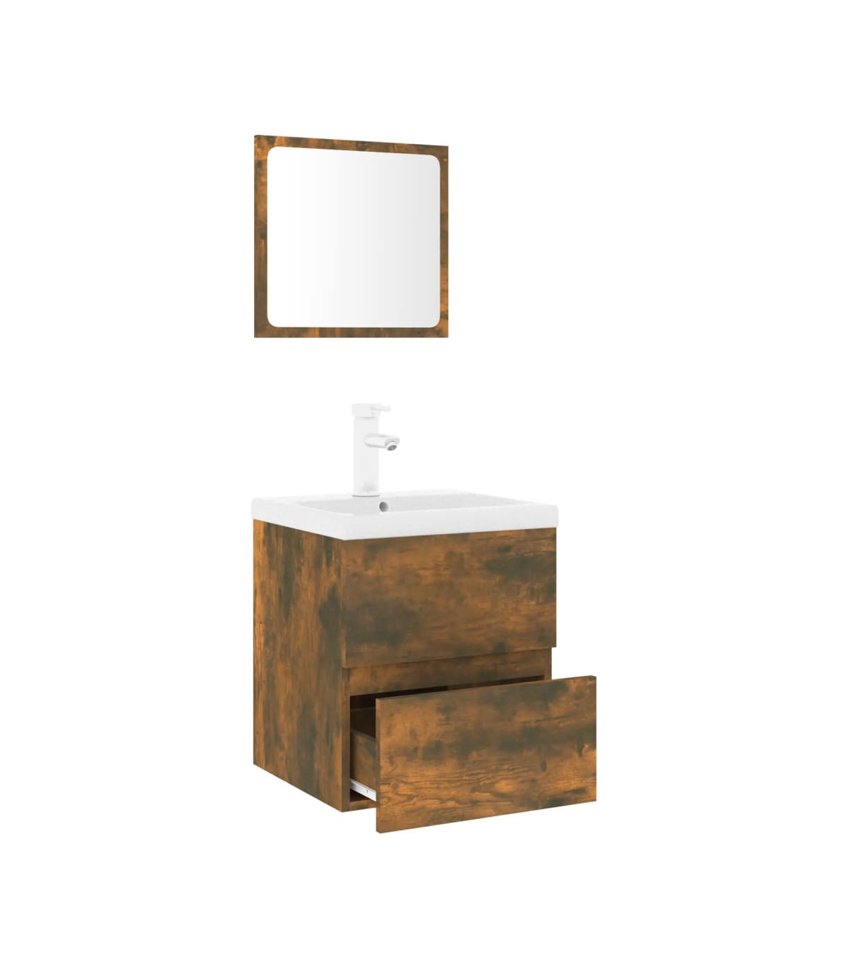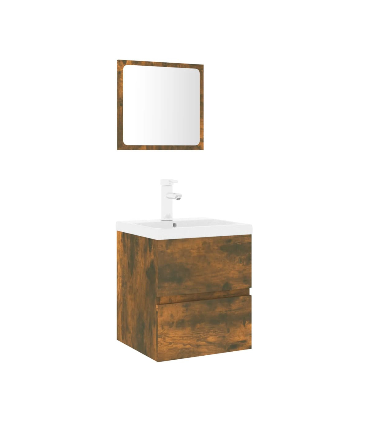 Bathroom Furniture Set Smoked Oak Engineered Wood