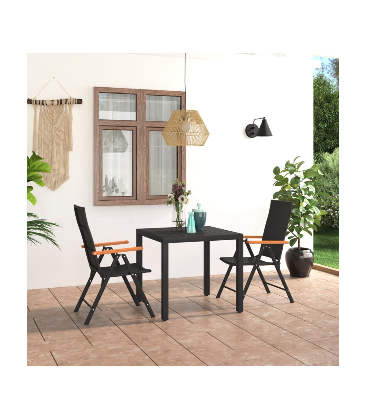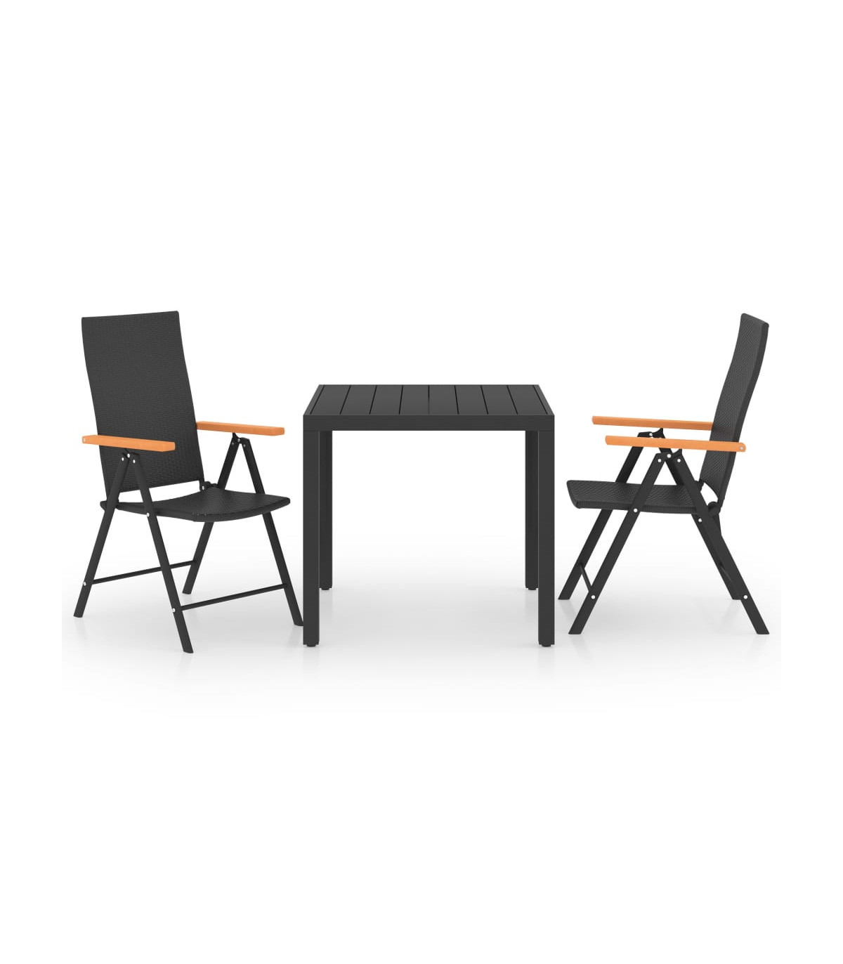 This garden dining set is an excellent choice for your garden, patio or terrace. The garden chair is made of PE rattan, making it weather-resistant and durable. The brown WPC armrests add to the chairs' stylish look. The table features a WPC tabletop with simple line, which is easy to clean and suitable for outdoor use. The aluminium frames also ensure the stability and studiness for this set. Thanks to the lightweight construction, this outdoor furniture set is easy to move. Note: We recommend covering the furniture set in the rain, snow or frost. Note: In order to extend the life of your outdoor furniture, we recommend you to clean it regularly and do not leave it outdoors without protection unnecessarily.Clean: Use a mild soap solutionStoring: If possible, store in a cool, dry place indoors. If the product is stored outdoors, protect it with a waterproof cover. Wipe and dry the excess water or snow from flat surfaces after a rain or snowfall. Allow sufficient air circulation to avoid moisture-related damage.