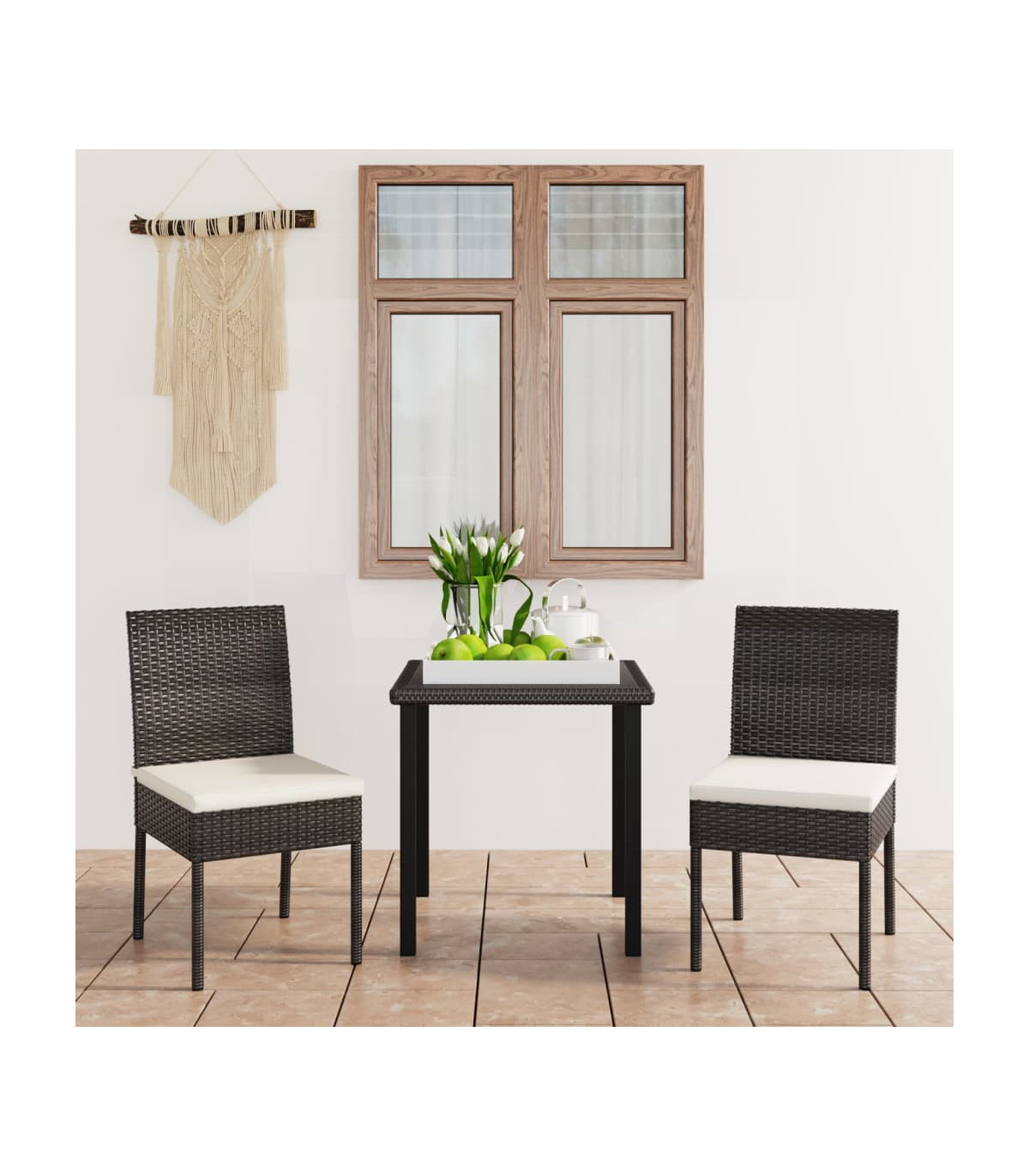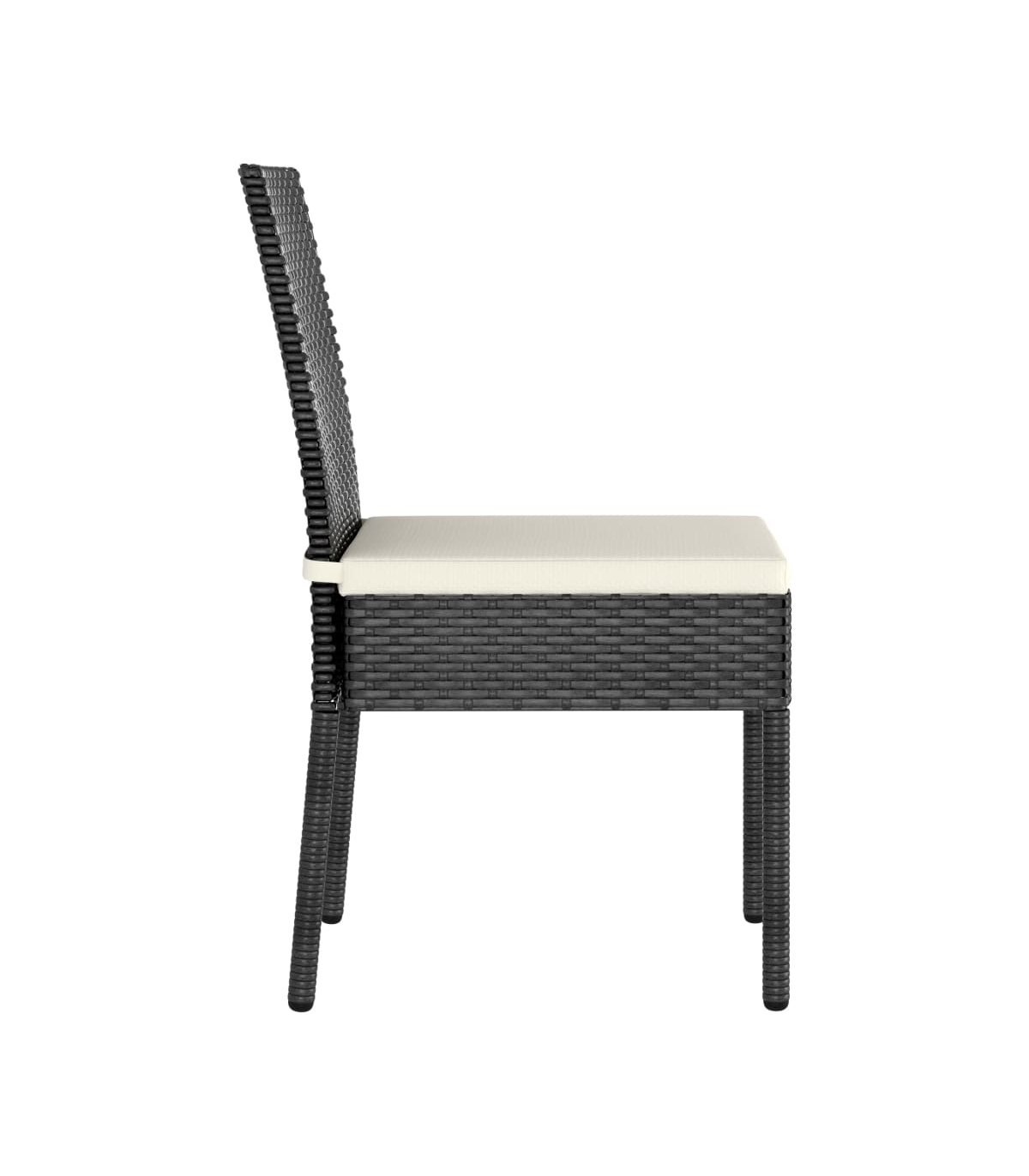 This exquisitely designed garden dining set is meant to be the focal point of your garden or patio! The steel frame makes these tables and chairs sturdy and stable. As the set is also lightweight, all items are easy to move around and suitable for outdoor use. Thanks to the weather-resistant and water-resistant PE rattan, the outdoor furniture set is easy to clean and durable. The thickly padded and removable seat cushions give extra seating comfort. Note: In order to extend the life of your outdoor furniture, we recommend you to clean it regularly and do not leave it outdoors without protection unnecessarily.Clean: Use a mild soap solution.Storing: If possible, store in a cool, dry place indoors. If the product is stored outdoors, protect it with a waterproof cover. Wipe and dry the excess water or snow from flat surfaces after a rain or snowfall. Allow sufficient air circulation to avoid moisture-related damage.