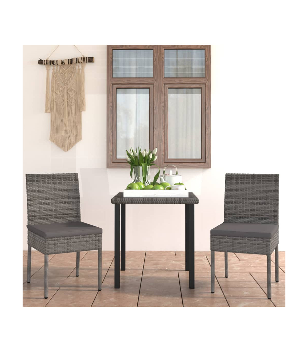 This exquisitely designed garden dining set is meant to be the focal point of your garden or patio! The steel frame makes these tables and chairs sturdy and stable. As the set is also lightweight, all items are easy to move around and suitable for outdoor use. Thanks to the weather-resistant and water-resistant PE rattan, the outdoor furniture set is easy to clean and durable. The thickly padded and removable seat cushions give extra seating comfort. Note: In order to extend the life of your outdoor furniture, we recommend you to clean it regularly and do not leave it outdoors without protection unnecessarily.Clean: Use a mild soap solution.Storing: If possible, store in a cool, dry place indoors. If the product is stored outdoors, protect it with a waterproof cover. Wipe and dry the excess water or snow from flat surfaces after a rain or snowfall. Allow sufficient air circulation to avoid moisture-related damage.