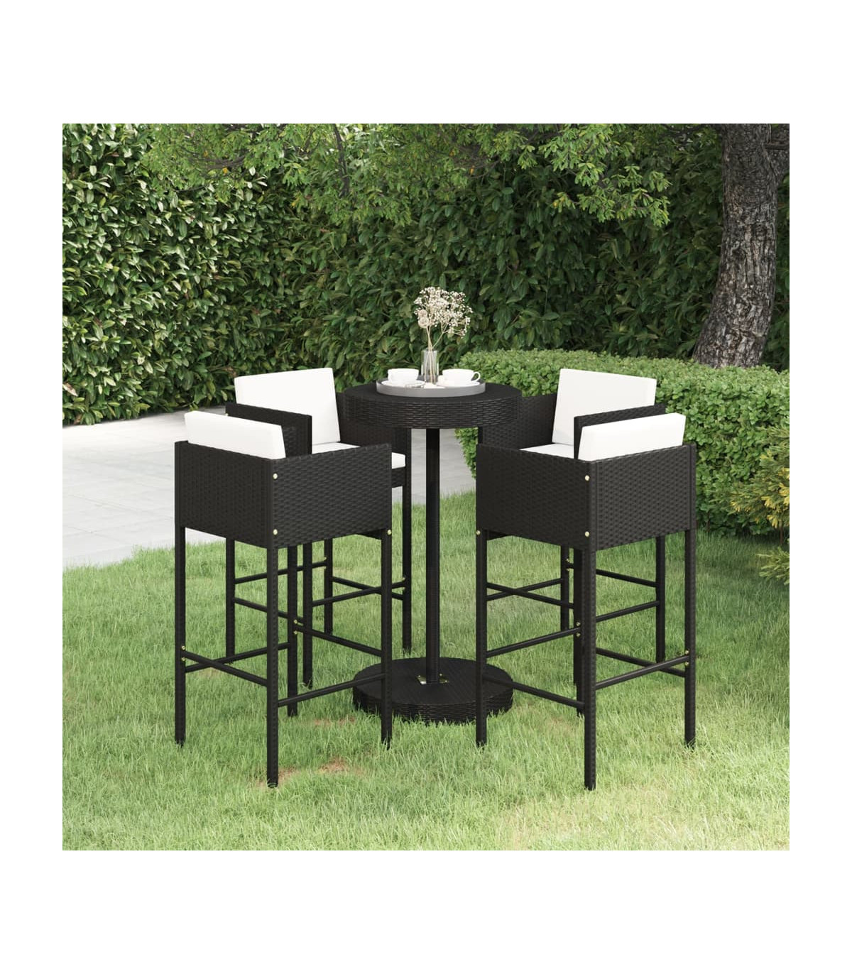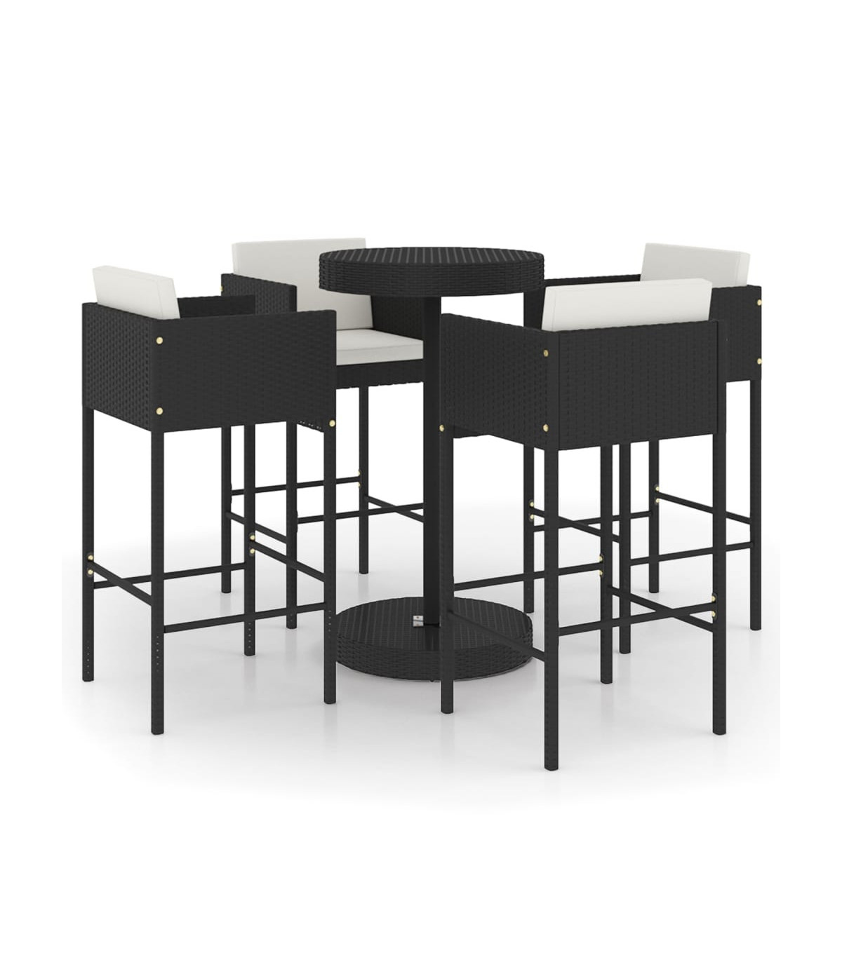 This stylish garden bar set provides you with a leisurely and comfortable time with your family and friends. Made of weather-resistant and waterproof PE rattan, this outdoor bar set is easy to clean, hard-wearing and suitable for daily use. The powder-coated steel frame makes the table and stools sturdy and durable. The round tabletop is ideal for placing drinks, food, or some decorative items. The footrest and cushions also add additional seating comfort for the stool. Thanks to the lightweight construction, all items are easy to move. Note: In order to extend the life of your outdoor furniture, we recommend you to clean it regularly and do not leave it outdoors without protection unnecessarily.Clean: Use a mild soap solution.Storing: If possible, store in a cool, dry place indoors. If the product is stored outdoors, protect it with a waterproof cover. Wipe and dry the excess water or snow from flat surfaces after a rain or snowfall. Allow sufficient air circulation to avoid moisture-related damage.