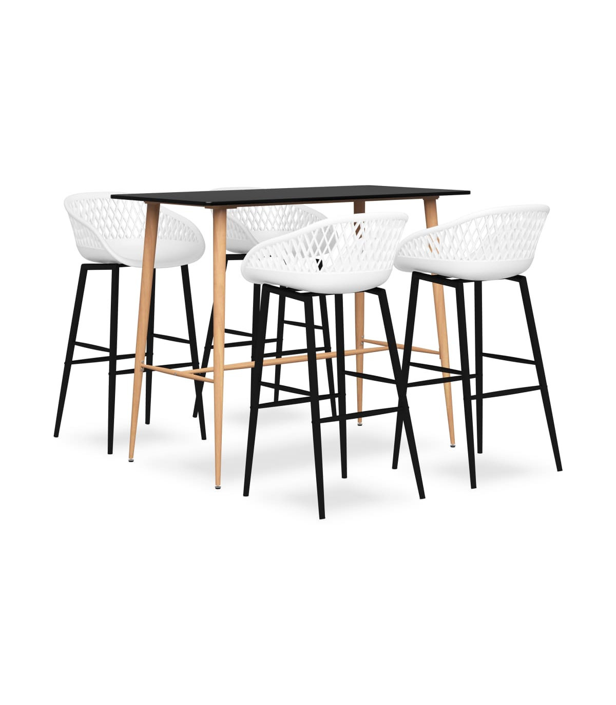 Featuring a modern and contemporary design, our bar set is perfect to go with any modern homes, gardens, bars, pubs or restaurants. Its clean and contemporary design will complement any interior decor. Our counter table features a durable MDF tabletop and strong metal legs with wood look. The bar stools have an ergonomically designed seat with integrated low backrest in a mesh look. Made of robust PP and supported by strong powder-coated metal legs, these counter chairs are sturdy and durable.