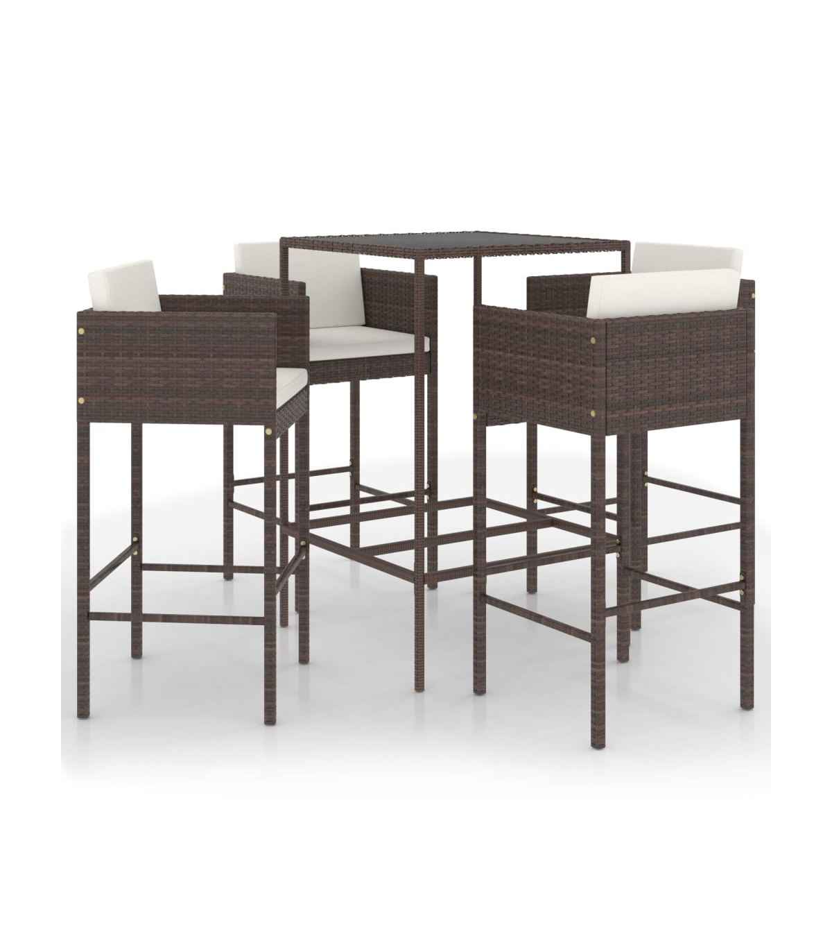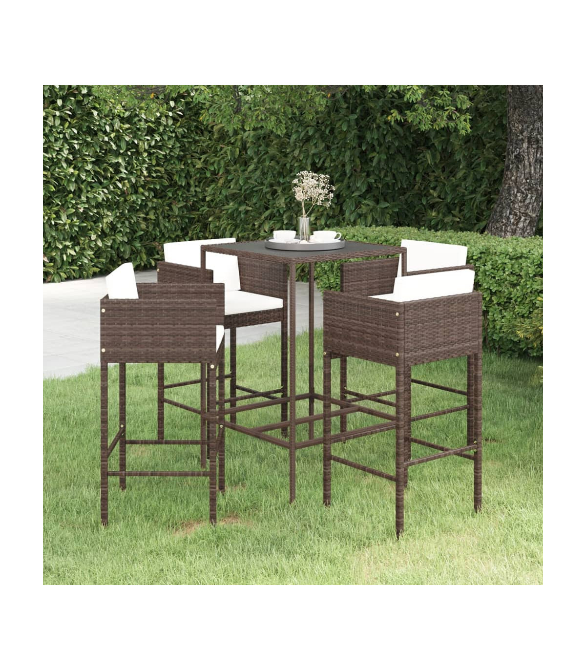 This stylish garden bar set provides you with a leisurely and comfortable time with your family and friends. Made of weather-resistant and waterproof PE rattan, this outdoor bar set is easy to clean, hard-wearing and suitable for daily use. The powder-coated steel frame makes the table and stools sturdy and durable. The tempered glass tabletop is ideal for placing drinks, food, or some decorative items. The footrest and cushions also add additional seating comfort for the stool. Thanks to the lightweight construction, all items are easy to move. Note: In order to extend the life of your outdoor furniture, we recommend you to clean it regularly and do not leave it outdoors without protection unnecessarily.Clean: Use a mild soap solution.Storing: If possible, store in a cool, dry place indoors. If the product is stored outdoors, protect it with a waterproof cover. Wipe and dry the excess water or snow from flat surfaces after a rain or snowfall. Allow sufficient air circulation to avoid moisture-related damage.