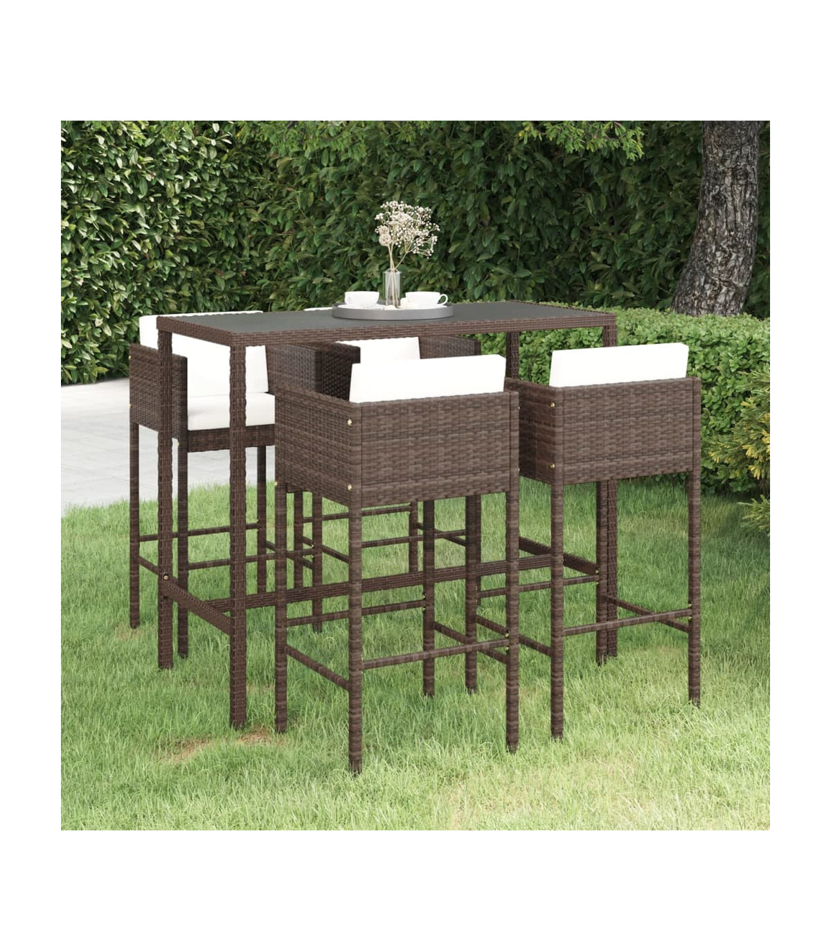 vidaXL 5 Piece Garden Bar Set with Cushions Poly Rattan Brown