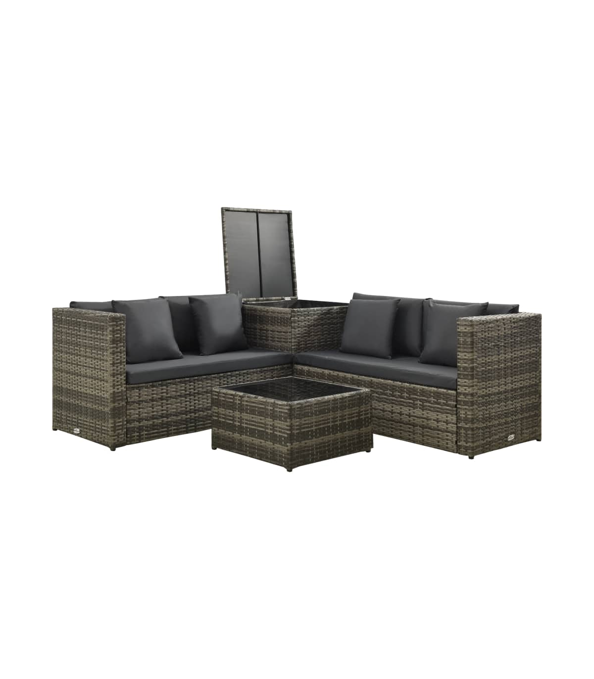 This stylish yet highly comfortable rattan sofa set will be an eye-catcher in your garden or on the patio. Thanks to the weather-resistant PE rattan, the sofa set is easy to clean and is hard-wearing and suitable for daily use. The sofa features a sturdy, powder-coated steel frame, which is highly durable. The removable seat and back cushions are very comfortable. The polyester covers are soft and easy to clean. Thanks to the large storage box, you can put in any items and take them out for immediate use. The rattan sofa set can be easily moved to suit any setting. Delivery includes two 2-seater sofas, 1 storage box, 1 coffee table, 4 back cushions, 2 seat cushions and 4 pillows. Note: We recommend covering the set in rain, snow and frost.