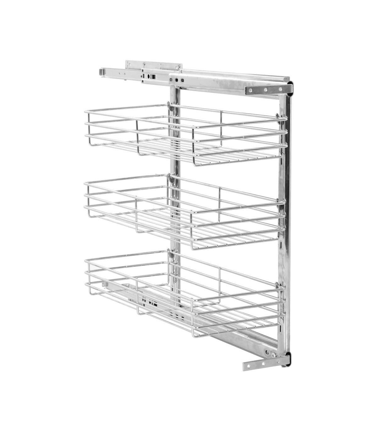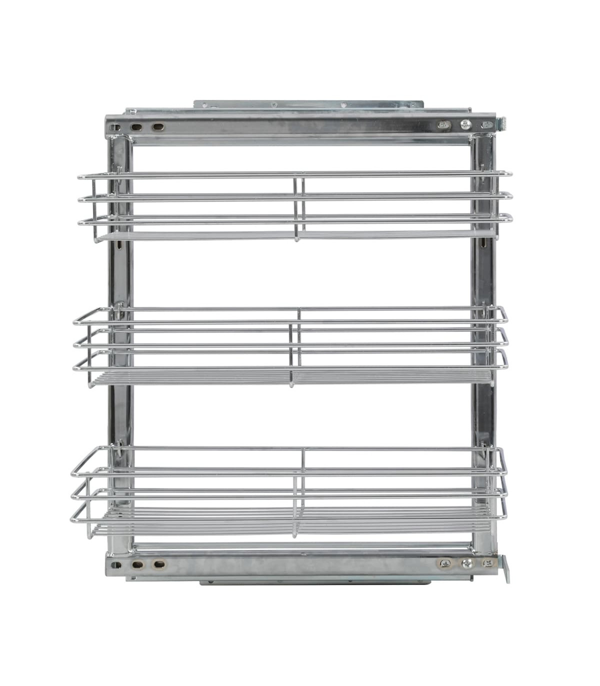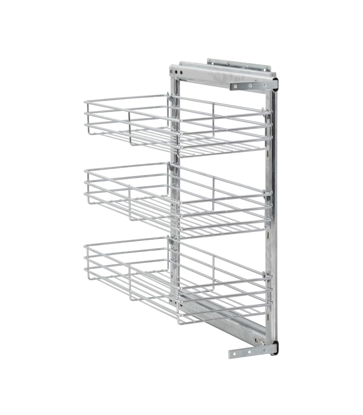 Our pull-out wire basket is easy to install into your kitchen cupboard with the included mounting accessories. Equipped with 3 shelves, this wire basket presents a simple yet practical solution to optimise the storage space of your kitchen cupboard. Made of silver electroplated wire, this kitchen storage basket exudes a clean and modern look and is exceedingly durable. Additionally, the included sliding runners allow you to pull out or push in the wire basket smoothly and quietly.