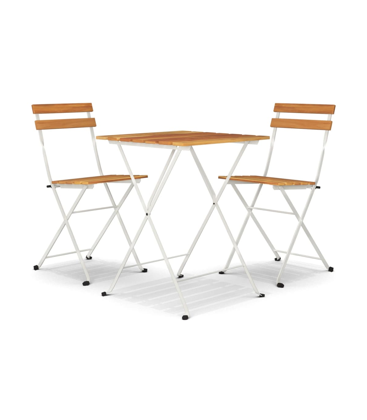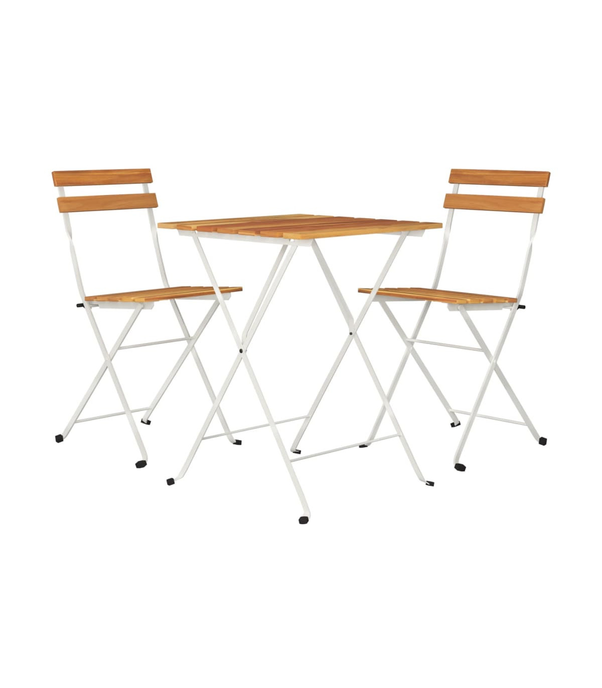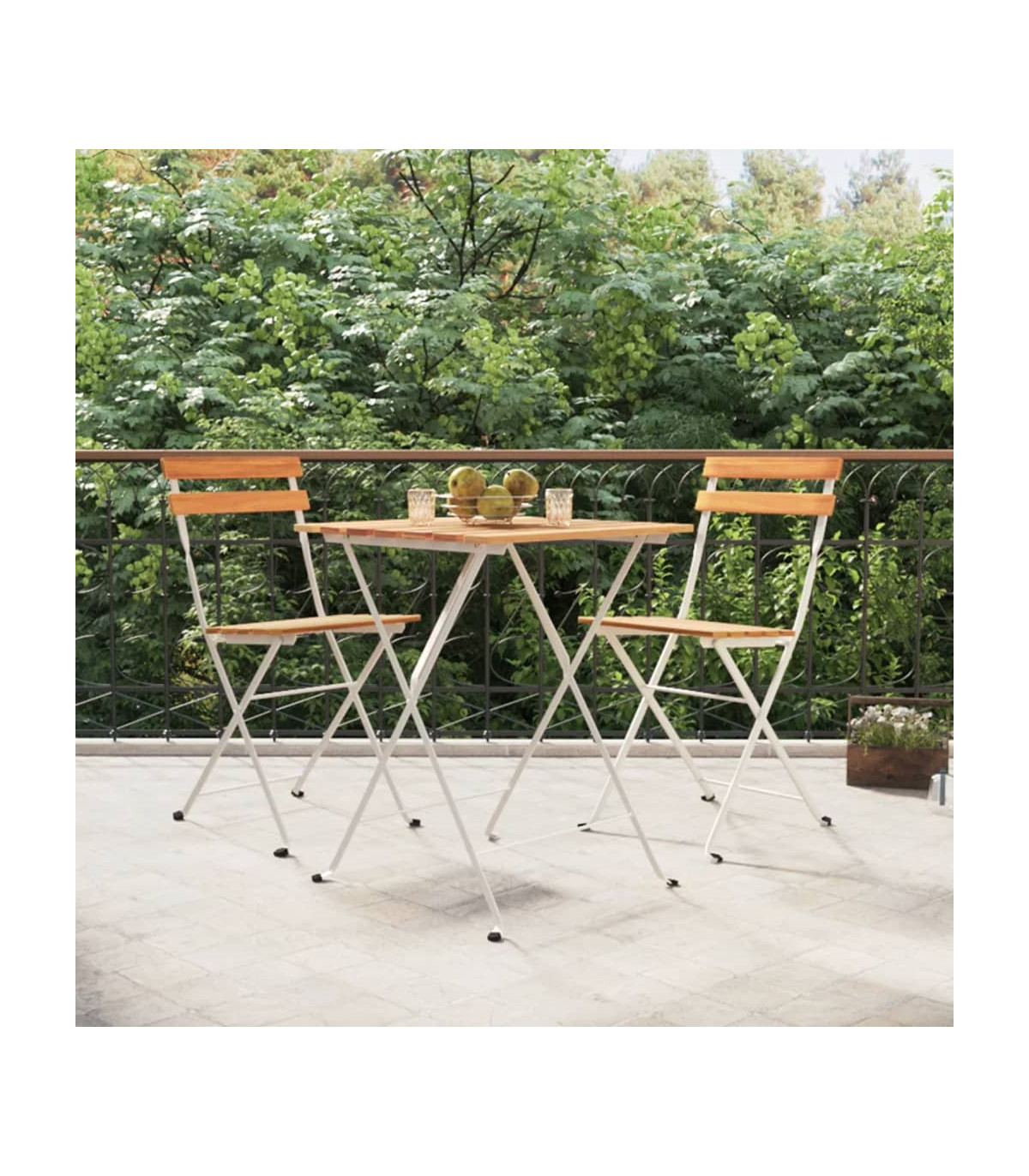 This 3 piece folding bistro set is an excellent choice for dining or relaxing in your garden, balcony or patio. Durable material: Solid acacia wood is a beautiful natural material. Acacia wood is a tropical hardwood, which is dense, sturdy, and durable.Stable frame: The steel frame ensures sturdiness and stability.Foldable design: The table and chairs can be easily folded away when not in use, for easy storage and transportation. Good to know:To make assembly as easy as possible, each product is delivered with a manual. Note:To make sure your outdoor furniture stays beautiful, we recommend protecting it with a waterproof cover.