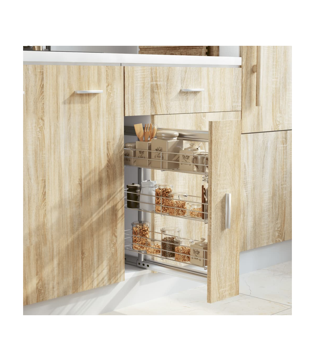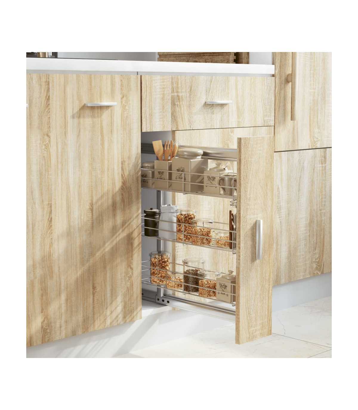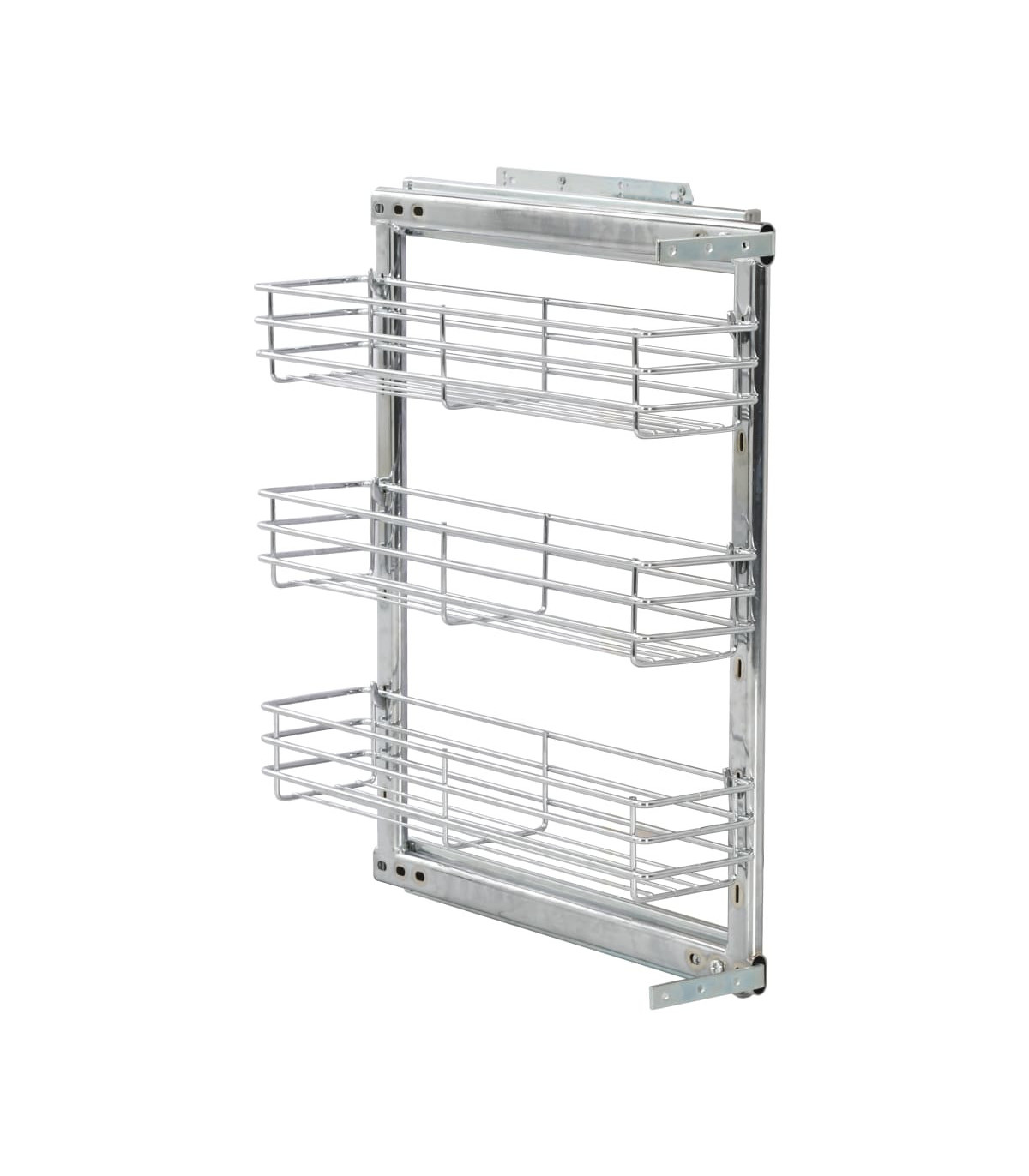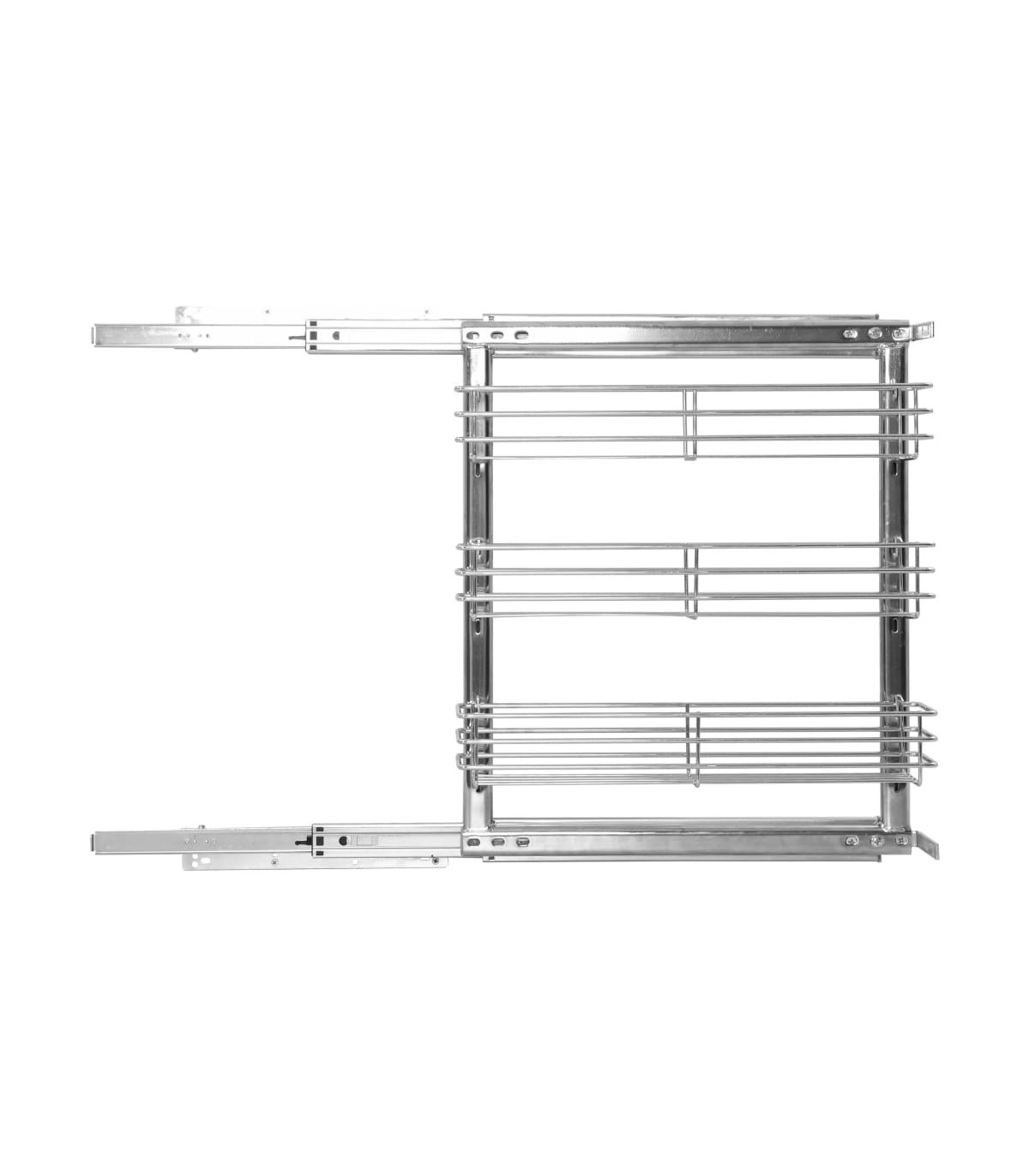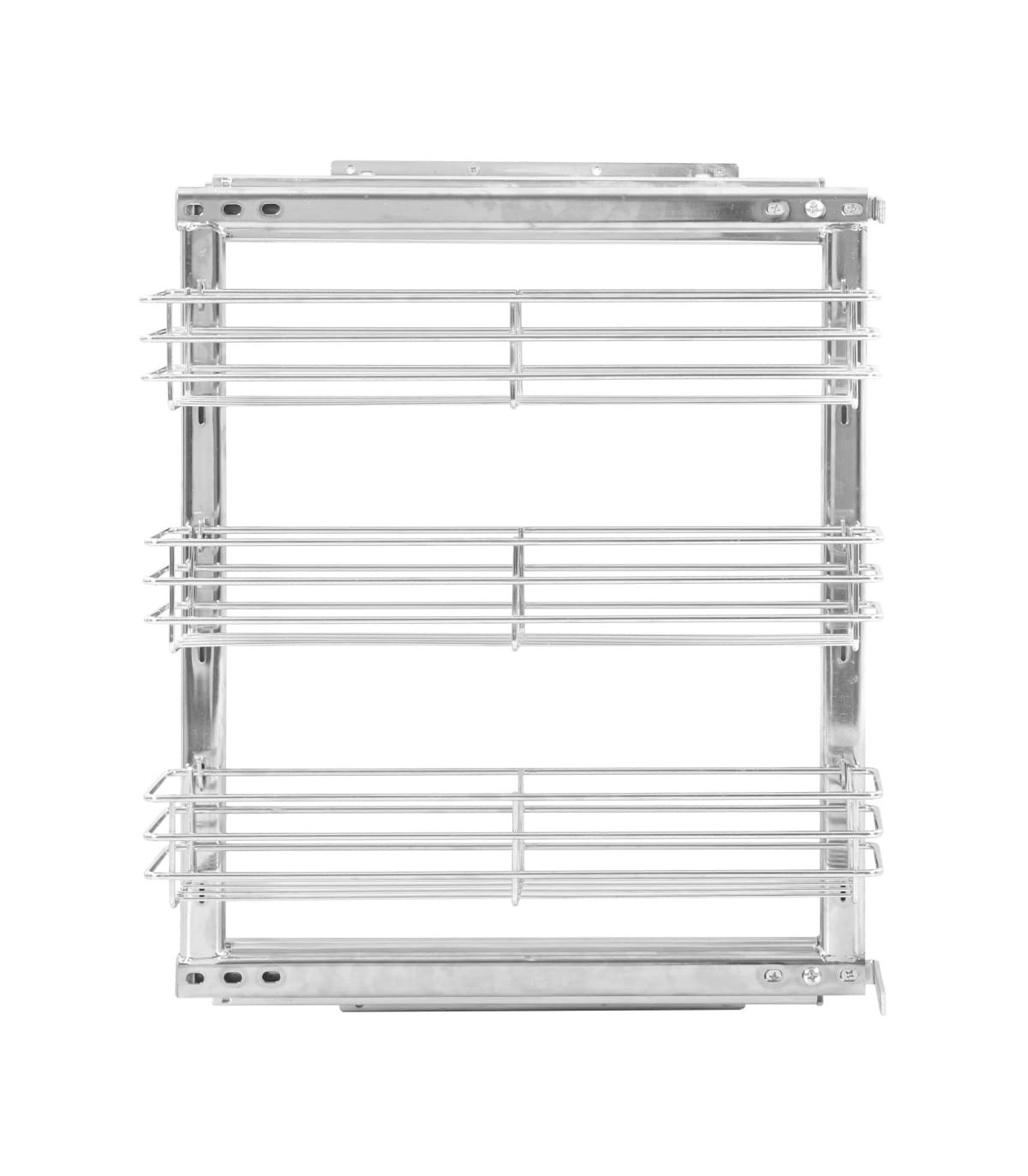 Our pull-out wire basket is easy to install into your kitchen cupboard with the included mounting accessories. Equipped with 3 shelves, this wire basket presents a simple yet practical solution to optimise the storage space of your kitchen cupboard. Made of silver electroplated wire, this kitchen storage basket exudes a clean and modern look and is exceedingly durable. Additionally, the included sliding runners allow you to pull out or push in the wire basket smoothly and quietly.