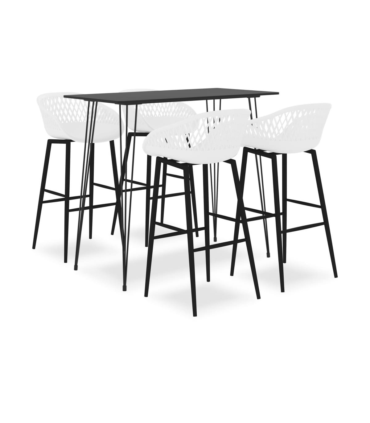 Featuring a modern and contemporary design, our bar set is perfect to go with any modern homes, gardens, bars, pubs or restaurants. Its clean and contemporary design will complement any interior decor. The tabletop is made of MDF which is easy to clean. The powder-coated metal frame adds to bar table's stability and sturdiness. The bar stools have an ergonomically designed seat with integrated low backrest in a mesh look. Made of robust PP and supported by strong powder-coated metal legs, these counter chairs are sturdy and durable.