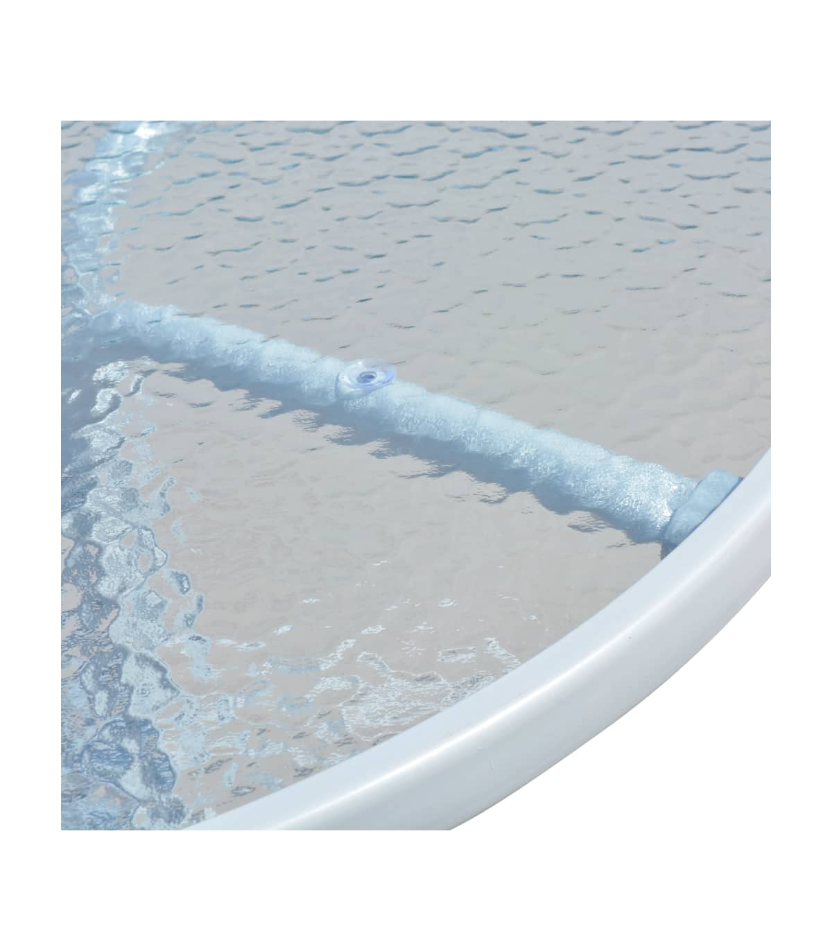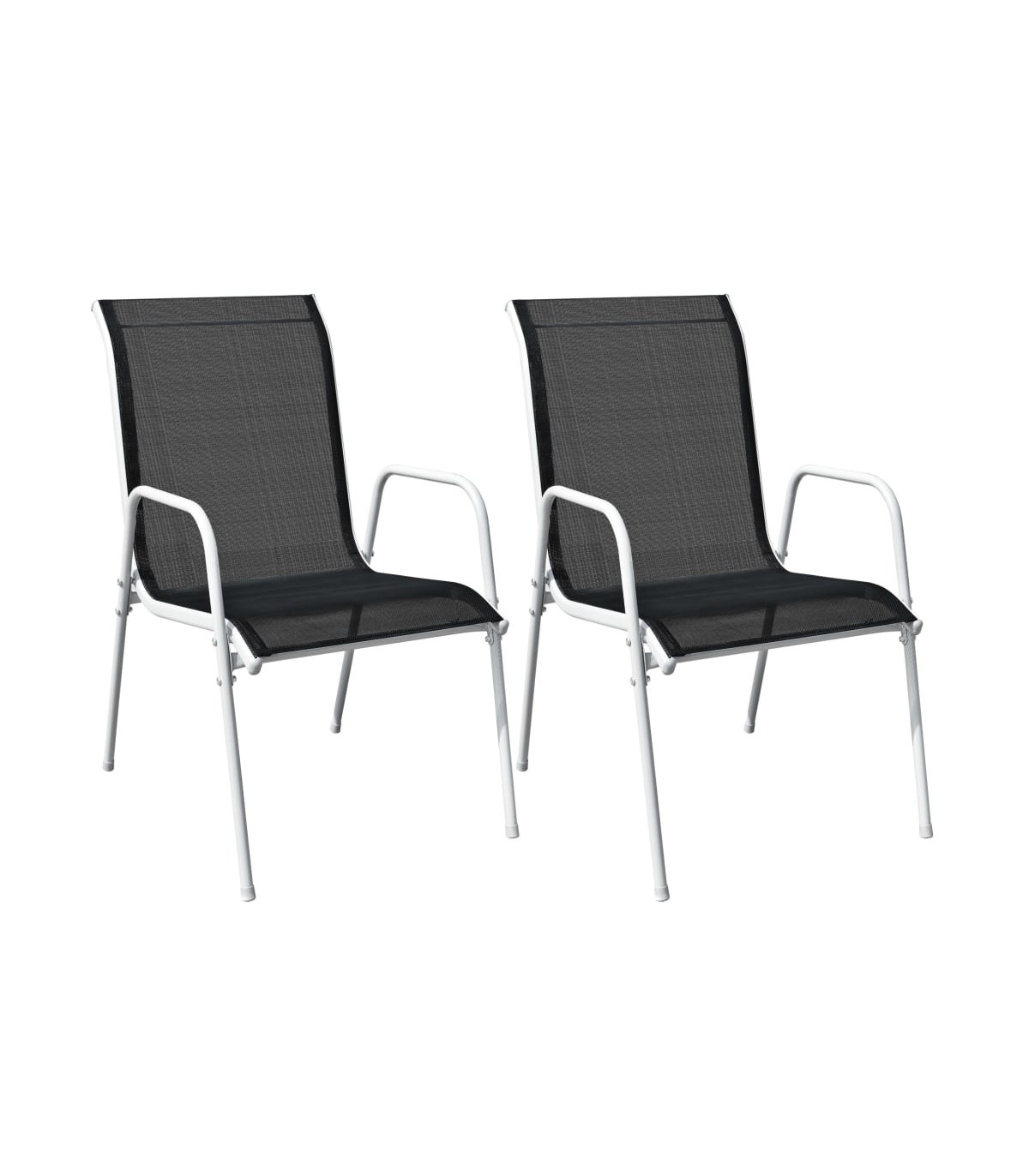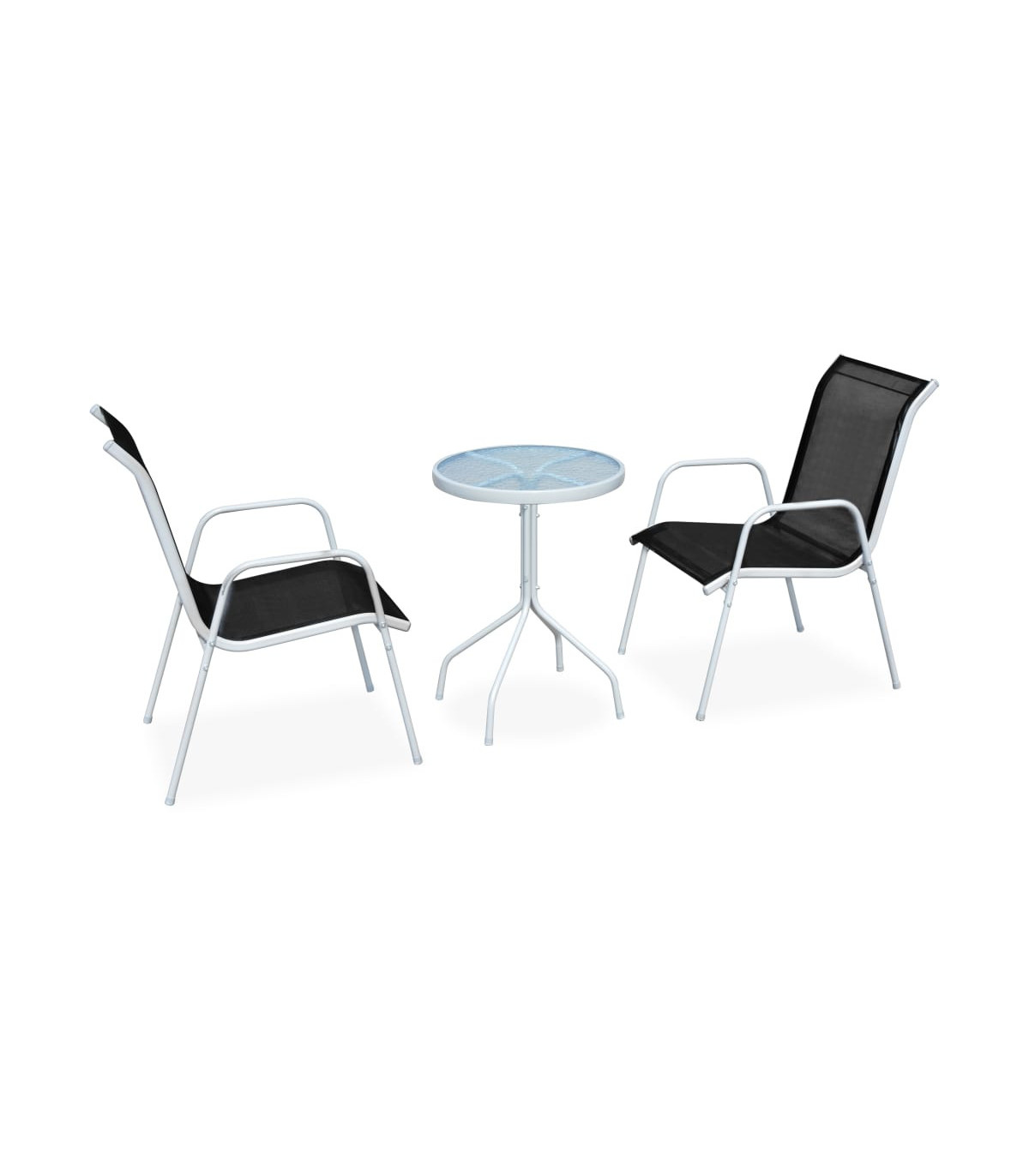 This sophisticated garden furniture set will become the focal point of your garden, patio, or dining room. The comfortable chairs are constructed from high-quality powder-coated steel. Thanks to the strong textilene fabric, our chairs are weather-resistant and easy to clean. The chairs are stackable to save space. The table has a 5 mm thick tabletop made of tempered ripple glass, on which you can place drinks, snacks or decorative items. It also has a sturdy powder-coated steel frame that is durable and easy to maintain. Assembly is easy. Delivery includes 1 table and 2 textilene chairs. Note: We recommend covering the set in the rain, snow and frost.