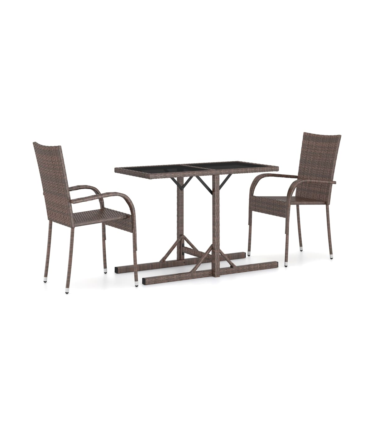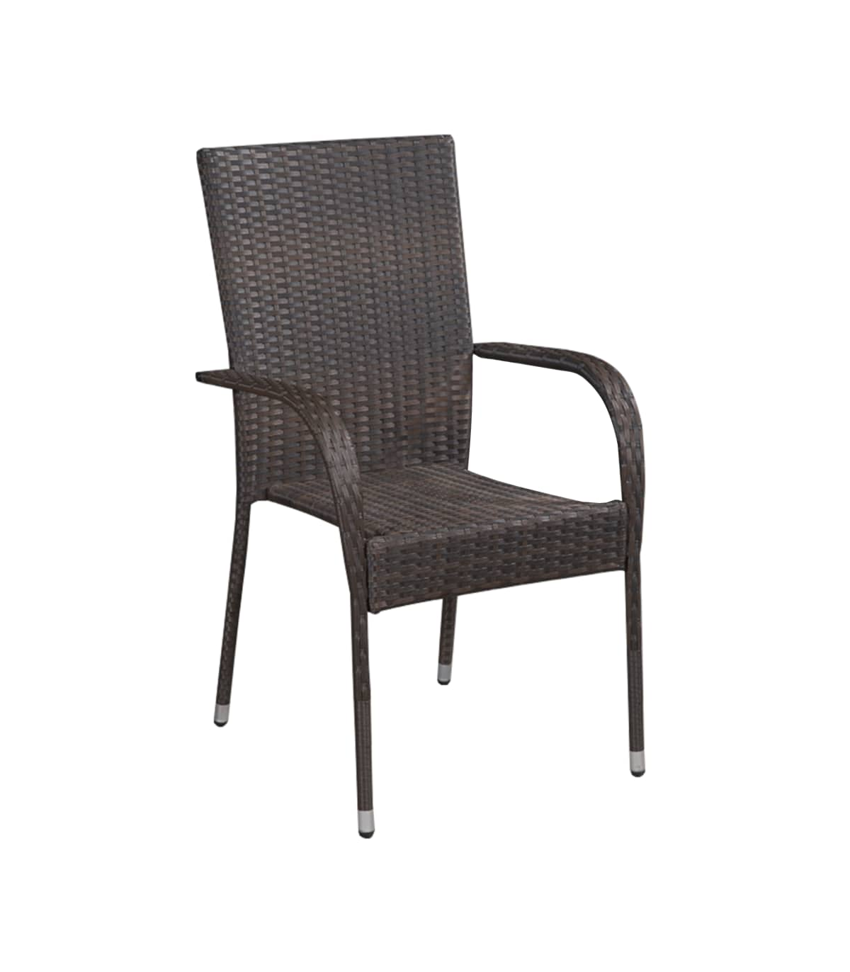 Create a compelling and cohesive aesthetic in your outdoor space with this garden dining set! Featuring a powder-coated steel frame covered with weather-resistant PE rattan, this dining set is sturdy and easy to clean. The glass tabletop adds a sumptuous touch to your outdoor space. The outdoor chairs are lightweight and can be stacked to save space when not in use. Note: In order to extend the life of your outdoor furniture, we recommend you to clean it regularly and do not leave it outdoors without protection unnecessarily.Clean: Use a mild soap solutionStoring: If possible, store in a cool, dry place indoors. If the product is stored outdoors, protect it with a waterproof cover. Wipe and dry the excess water or snow from flat surfaces after a rain or snowfall. Allow sufficient air circulation to avoid moisture-related damage.