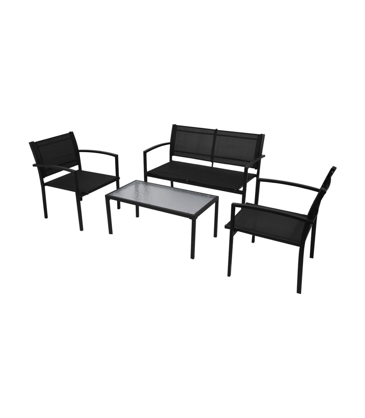 - Chair & bench material: Powder-coated steel frame + texilene fabric