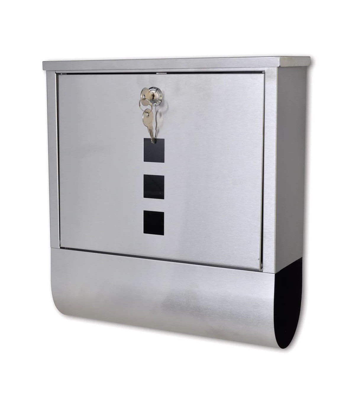 This mailbox with a sleek, modern design is made of durable stainless steel. This mailbox features a mail slot, a convenient lock with two keys, a newspaper holder, and three little windows that make it easier to see if you have mails. Our high-quality mailbox will be your great choice! Delivery includes a mailbox, 2 keys and mounting accessories.
