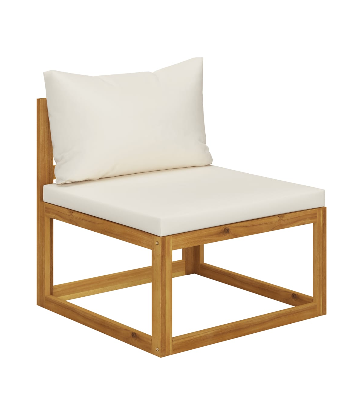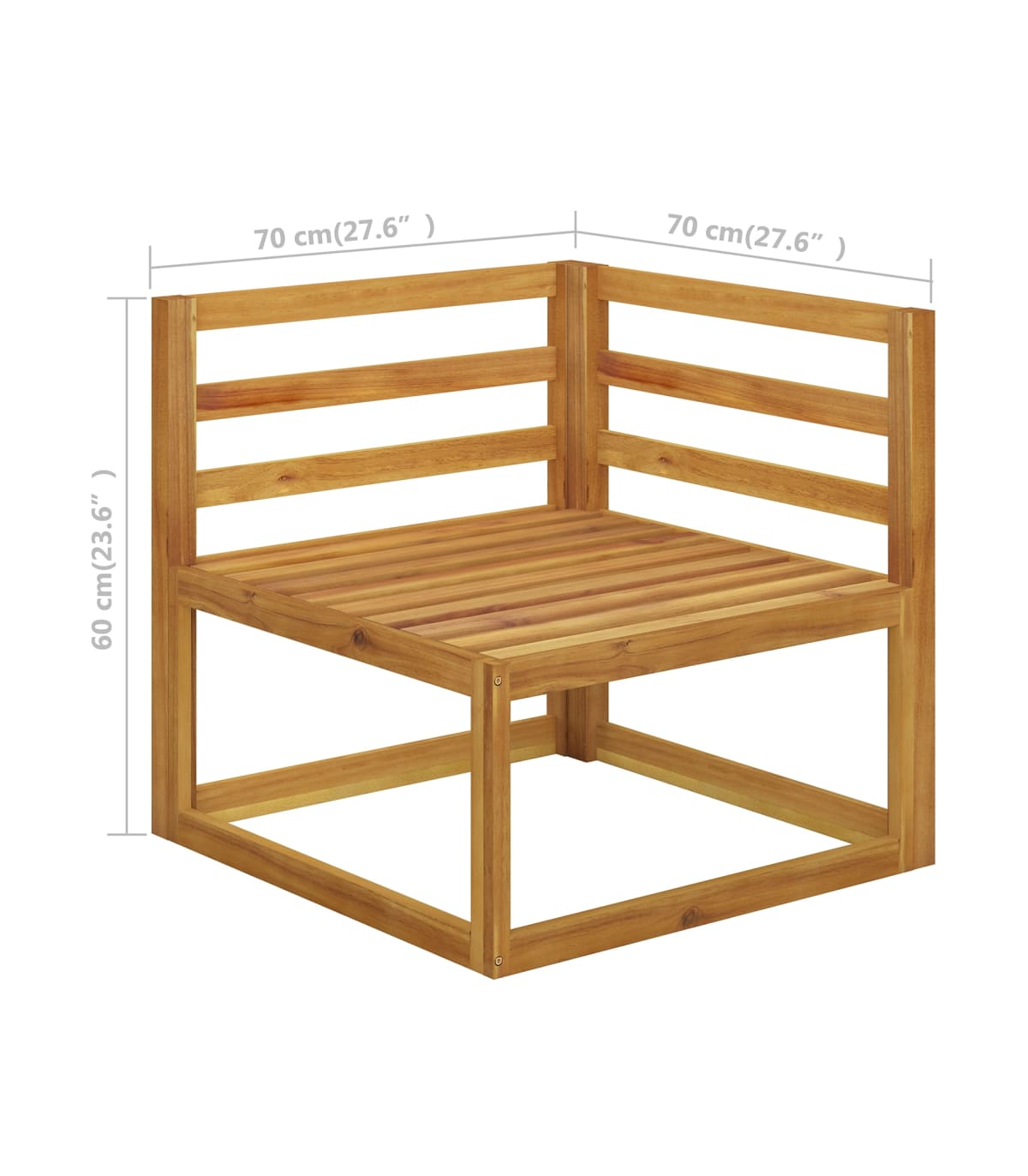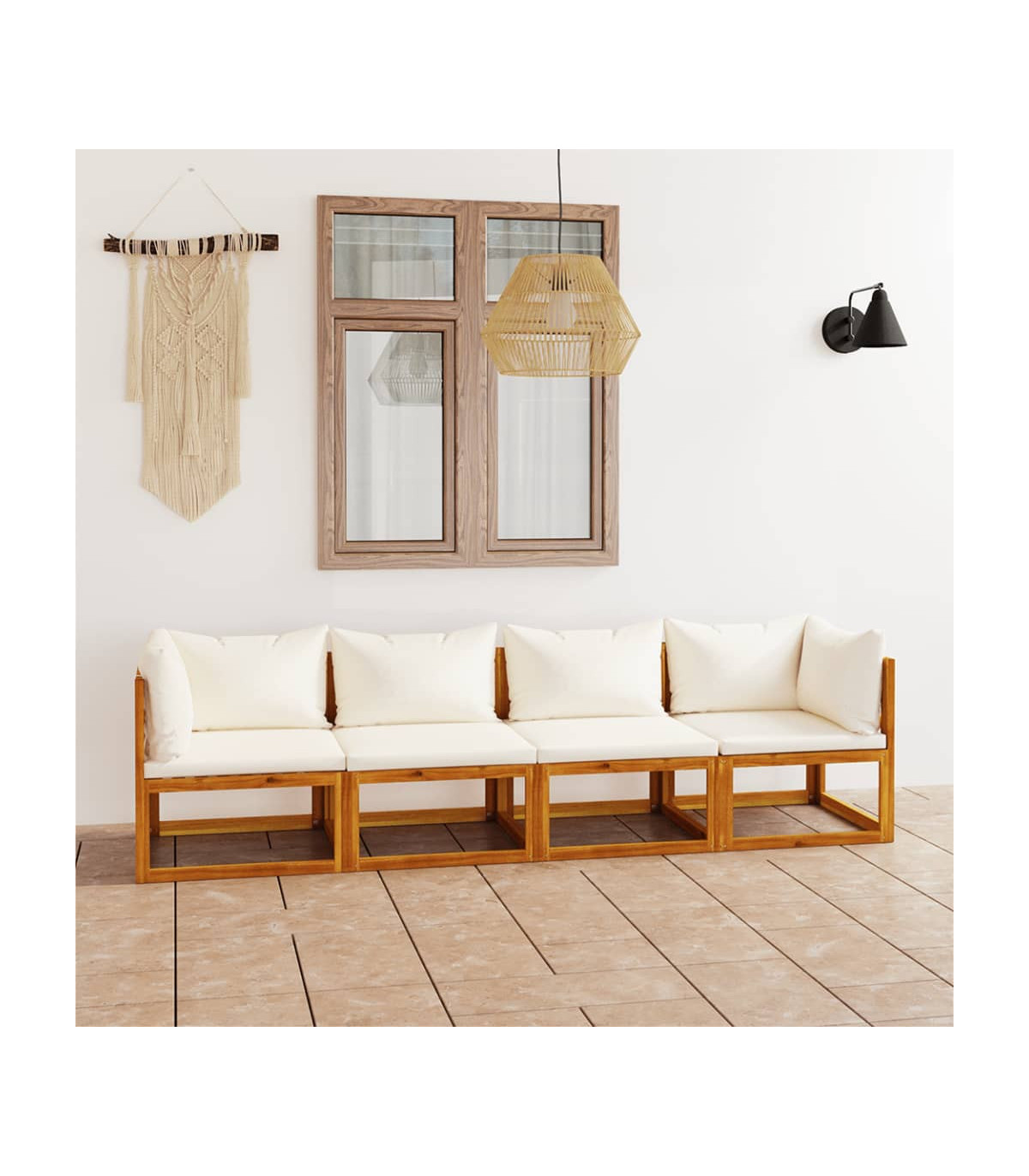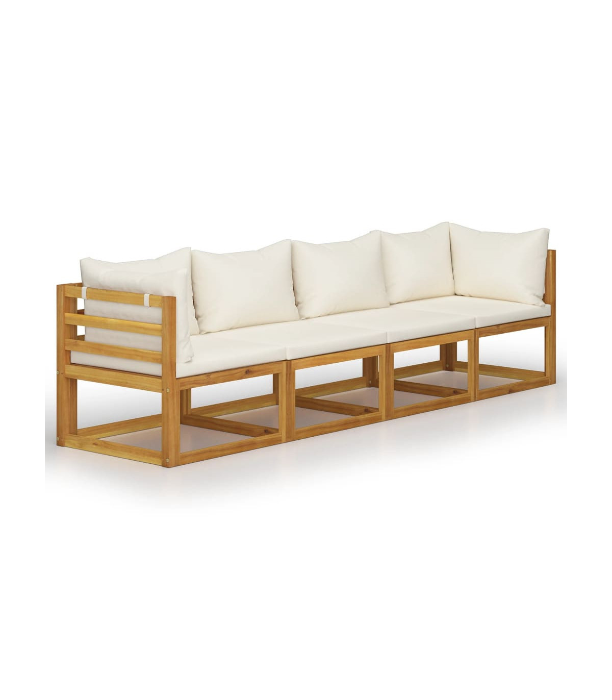 Enjoy your outdoor or indoor living space with this wooden 4-seater garden sofa! It will definitely be the focal point of your terrace, garden or patio. Solid acacia wood: Solid acacia wood is a beautiful natural material. Acacia wood is a tropical hardwood, which is dense, sturdy, and durable.Comfortable seat experience: The backrest and armrest add extra seating comfort for the bench. The removable seat and back cushions also provide comfort for your sitting time.Modular design: Standing out with its modular design, all parts can be arranged and customised as you need. Note:To make sure your outdoor furniture stays beautiful, we recommend protecting it with a waterproof cover. Good to know:Each product comes with an assembly manual in the box for easy assembly.