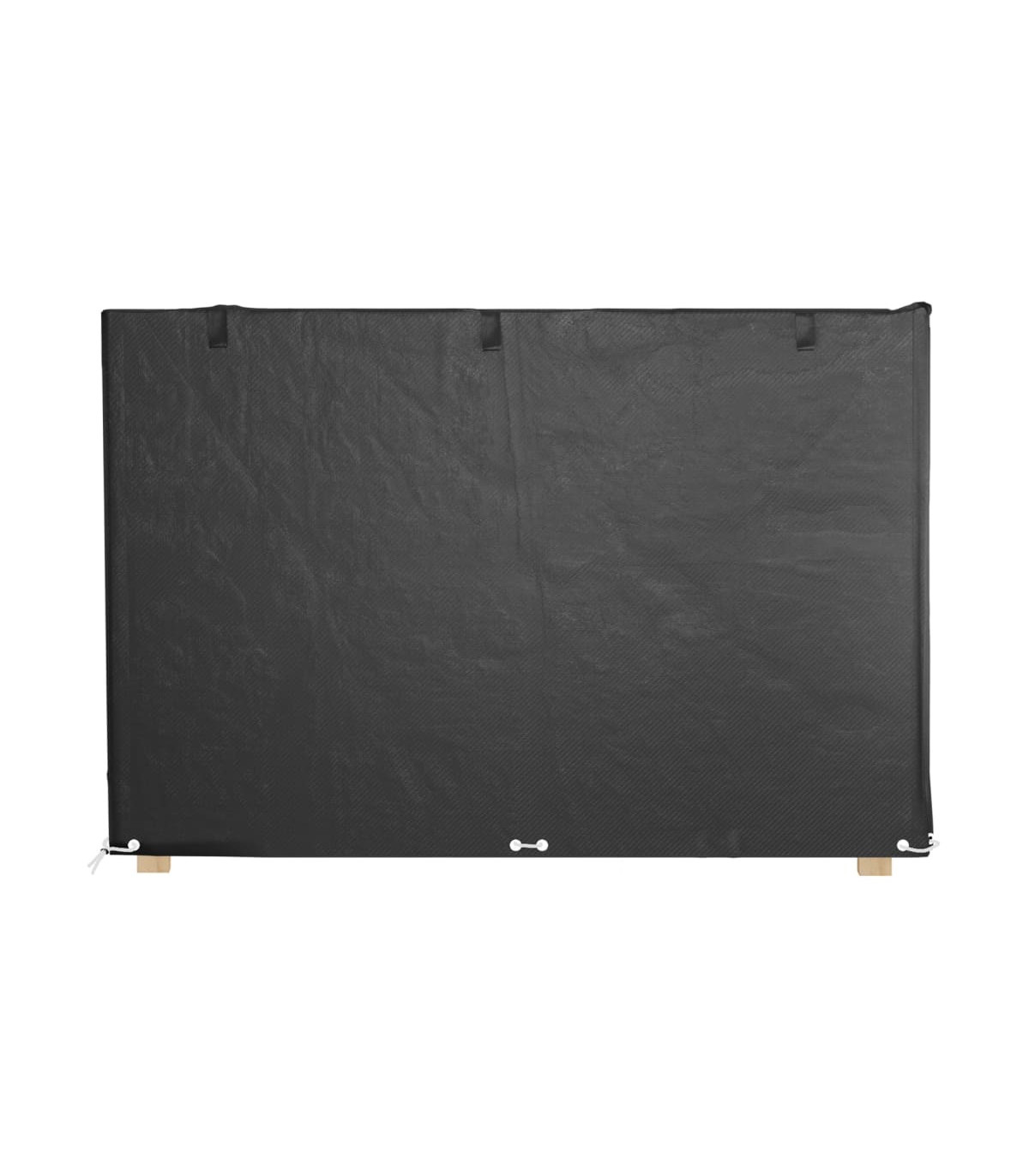 This solid swing bench cover is suitable for protecting your swing bench and other suitable outdoor furniture from dirt, wind, rain and UV light year round. The cover is made of durable polyethylene, which is water-resistant, UV-resistant, tear-proof and thus suitable for daily use. It has 10 aluminium eyelets and a fastening rope, so it will fit your set better. The front cover can be opened and rolled up and fastened with ropes. The 2 zippers makes it easy to fit and tighten, so as to prevent the cover from being blown off. Note: This product is not 100% waterproof. So, we recommend you to treat it with a waterproof spray for a better waterproof function.