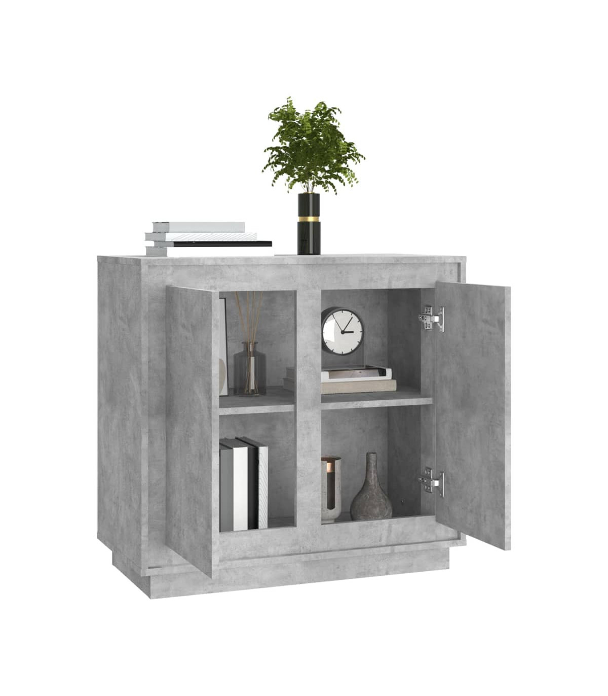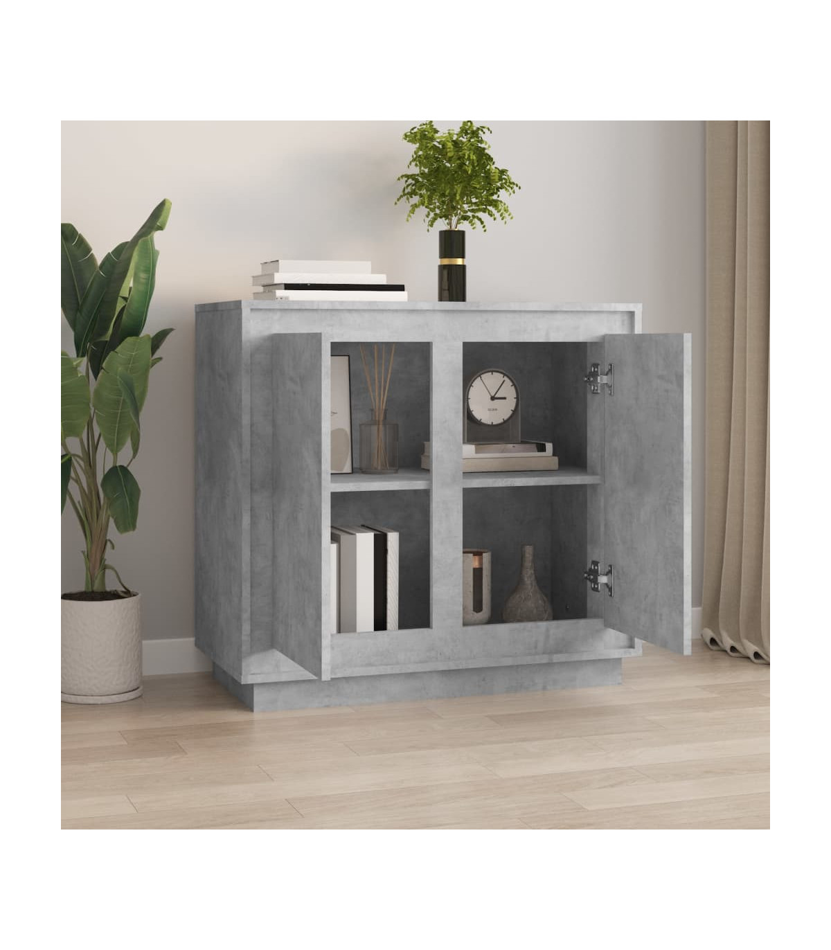 This classic sideboard, featuring a timeless look, is meant to be an excellent addition to your home. Durable material: The engineered wood is of exceptional quality with smooth surface and also features strength, stability and resistance to moisture. Made of engineered wood, the cabinet is easy to clean with a damp cloth.Ample storage space: Equipped with 4 compartments, the sideboard cabinet offers ample storage space for keeping your various daily essentials well organised and within easy reach.Displaying function: The top of the cupboard is great for displaying your decorative items, photo albums or small plants.Practical doors: Keep your essentials free from dust by hiding them behind the doors of this storage cabinet. Warning:To prevent it being overturned, this product must be used with the provided wall attachment device.