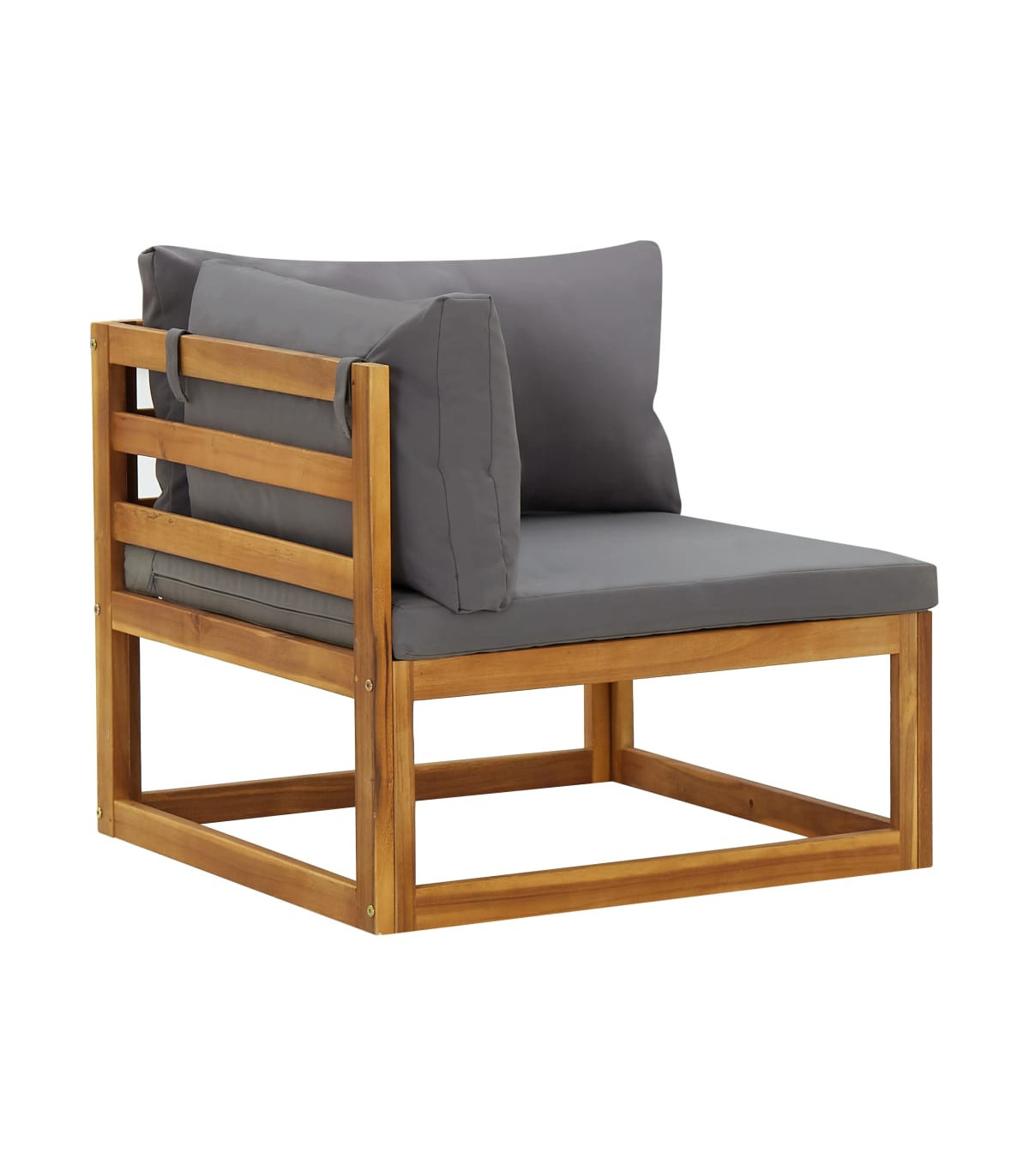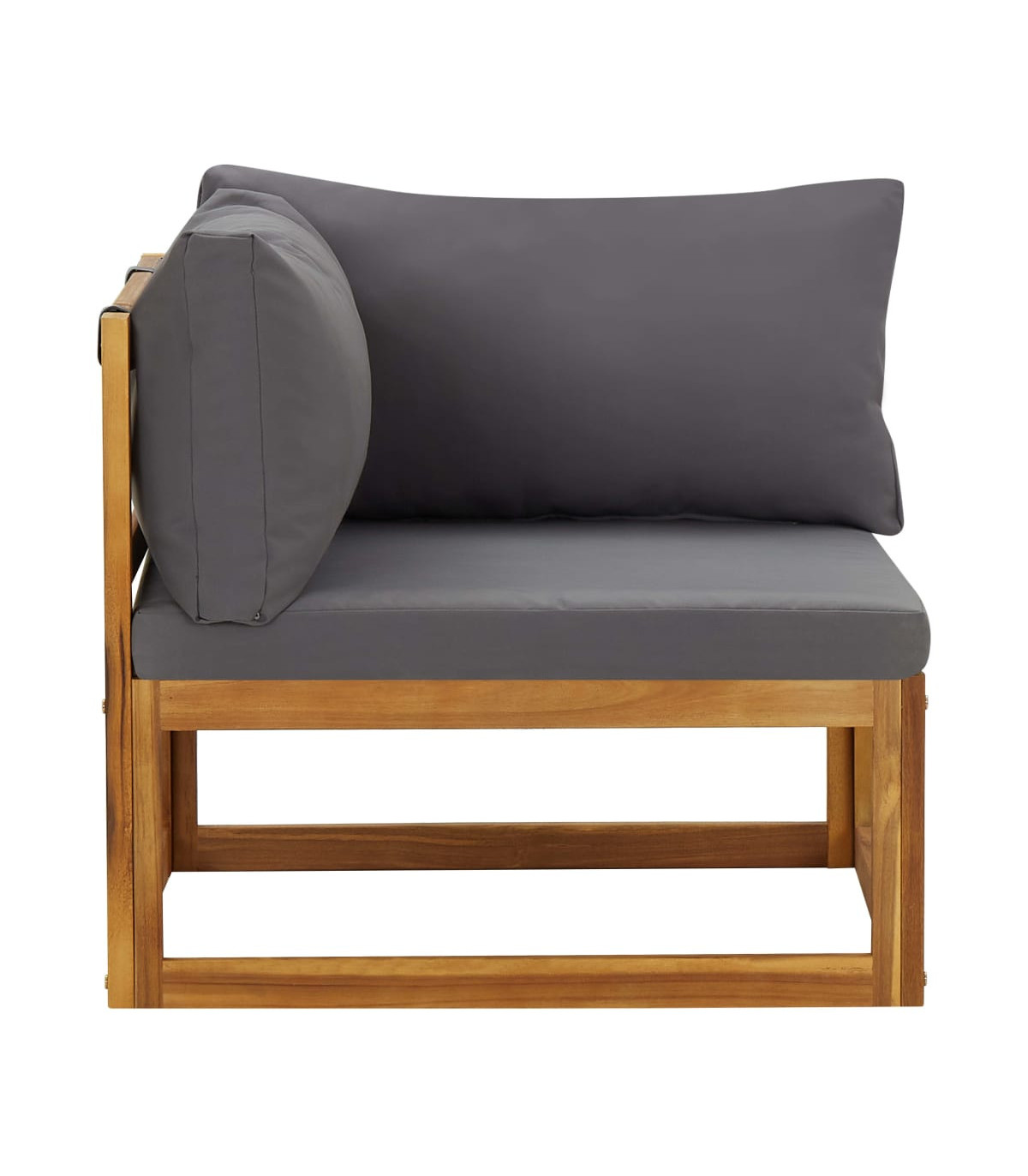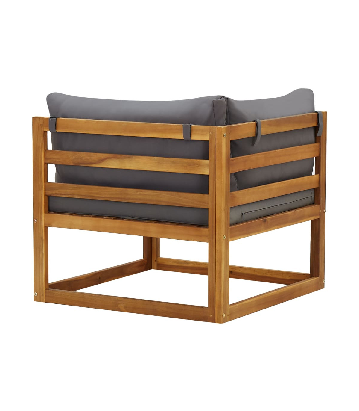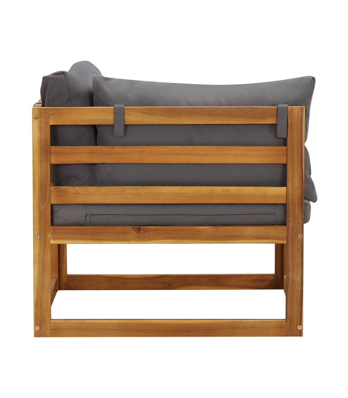 Enjoy your leisure time with these elegant wooden corner sofas. This lounge sofa set can fit in inside and outside space perfectly. Practical design: This wooden sectional corner sofas combine style and functionality, and is designed to be used outdoors year-round. Solid acacia wood: This corner sofa is made of solid acacia wood. Solid acacia wood is a beautiful natural material. Acacia wood is a tropical hardwood, which is dense, sturdy, and durable. Its oil finish makes the sofa suitable for outdoor use.Comfortable seat experience: The padded seat and back cushions provide the ultimate comfort in your seating experience. Also, you can combine it with other modular segments available to create your own personal garden lounge set configurations! Note:To make sure your outdoor furniture stays beautiful, we recommend protecting it with a waterproof cover.