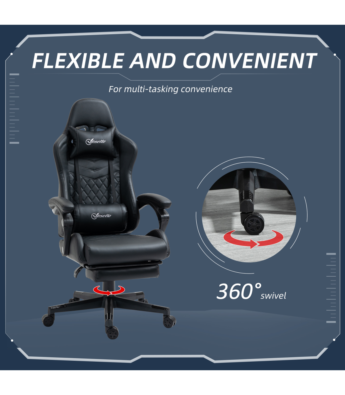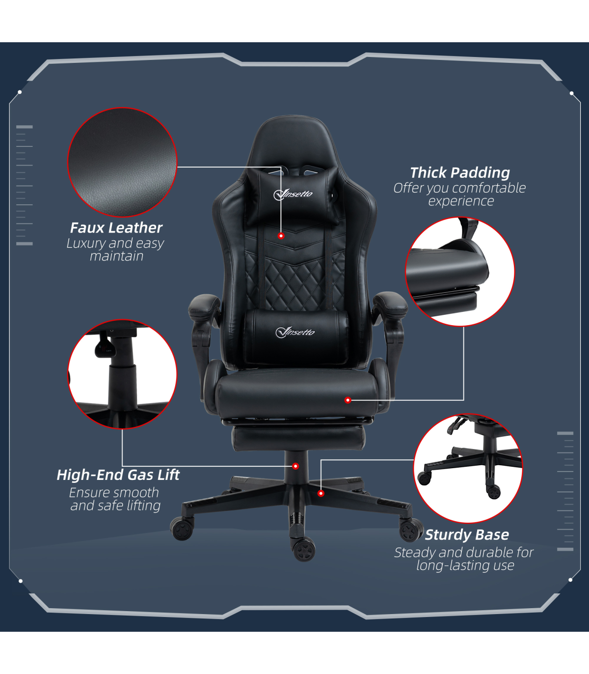 Racing Gaming Chair PU Leather Gamer Recliner Home Office, Black