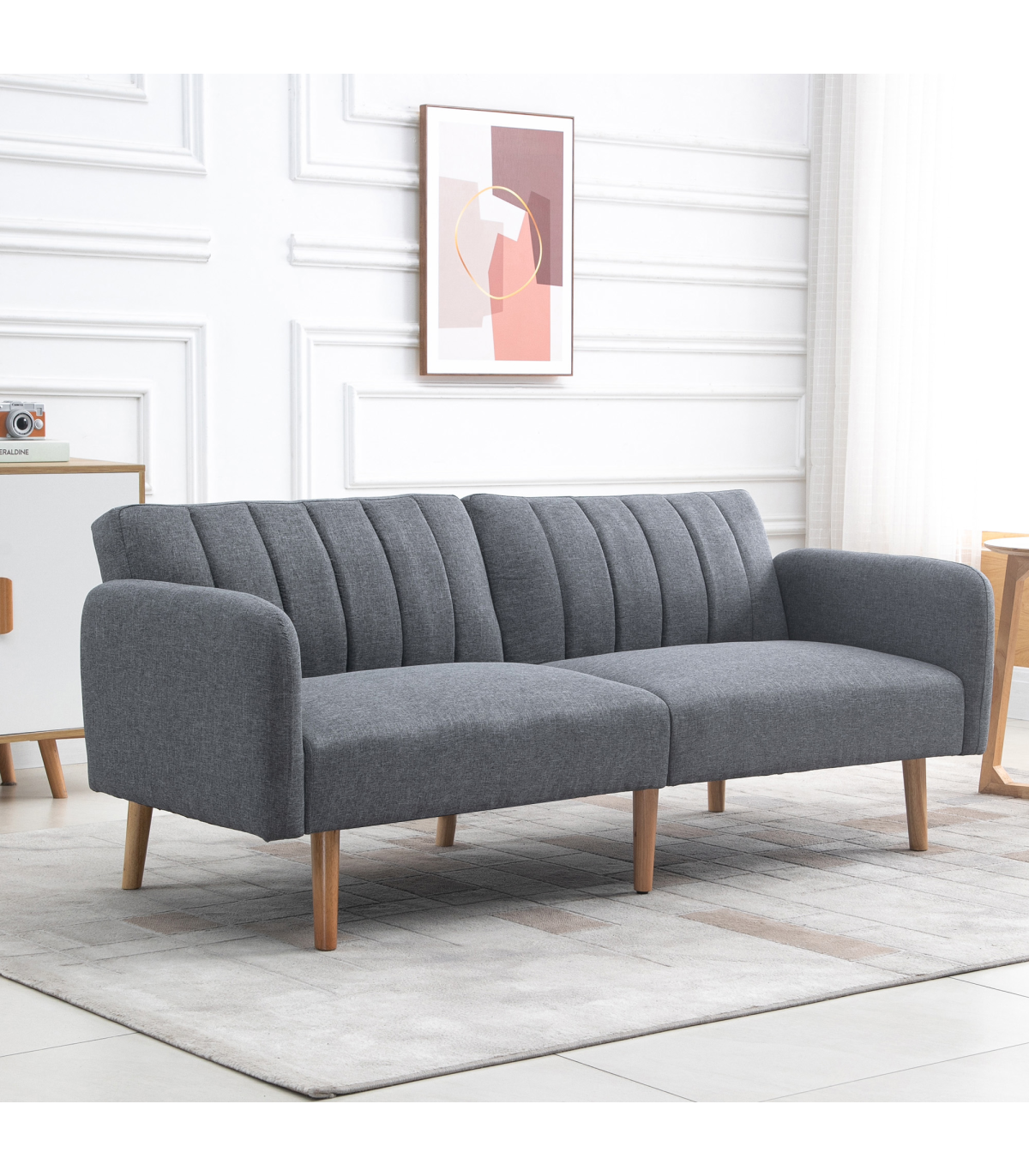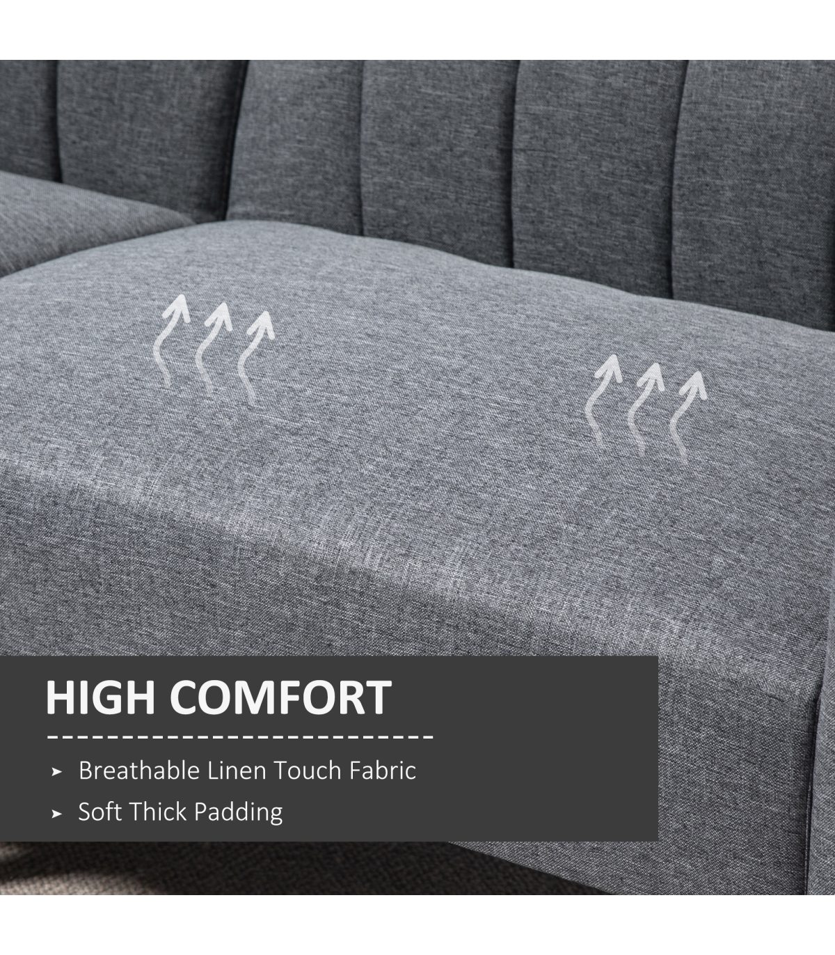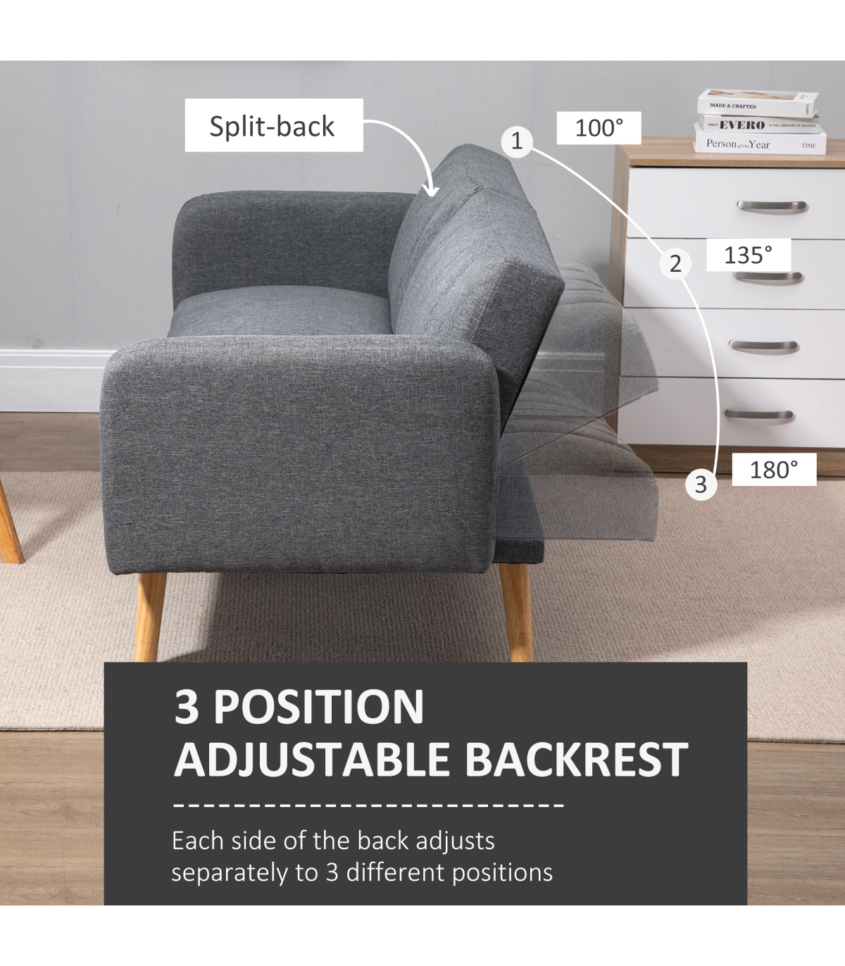 Cuddle up in comfort, on a place you can also rest easy at night - look to this HOMCOM sofa bed. Thick sponge padding keeps you comfortable when both sitting and sleeping. The back, which is split into two individual sections, can be set to three different positions - allows each person to relax back to a position they want. Comes complete with six wooden legs which offer strong support.