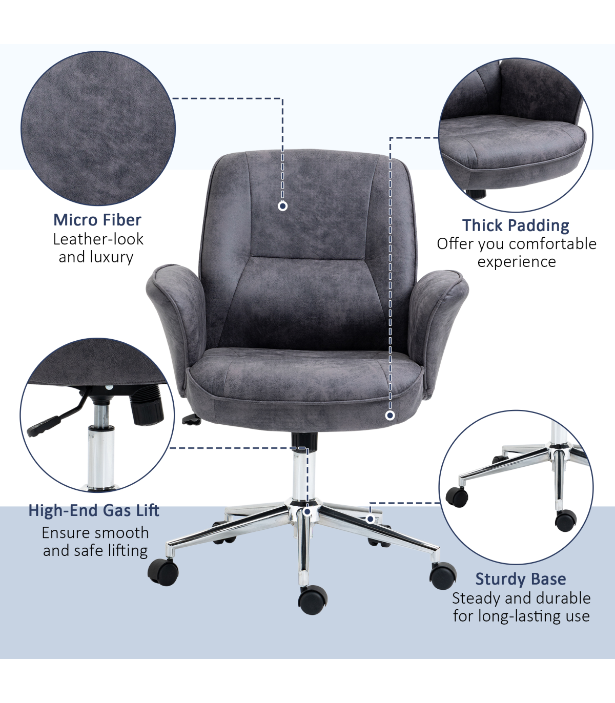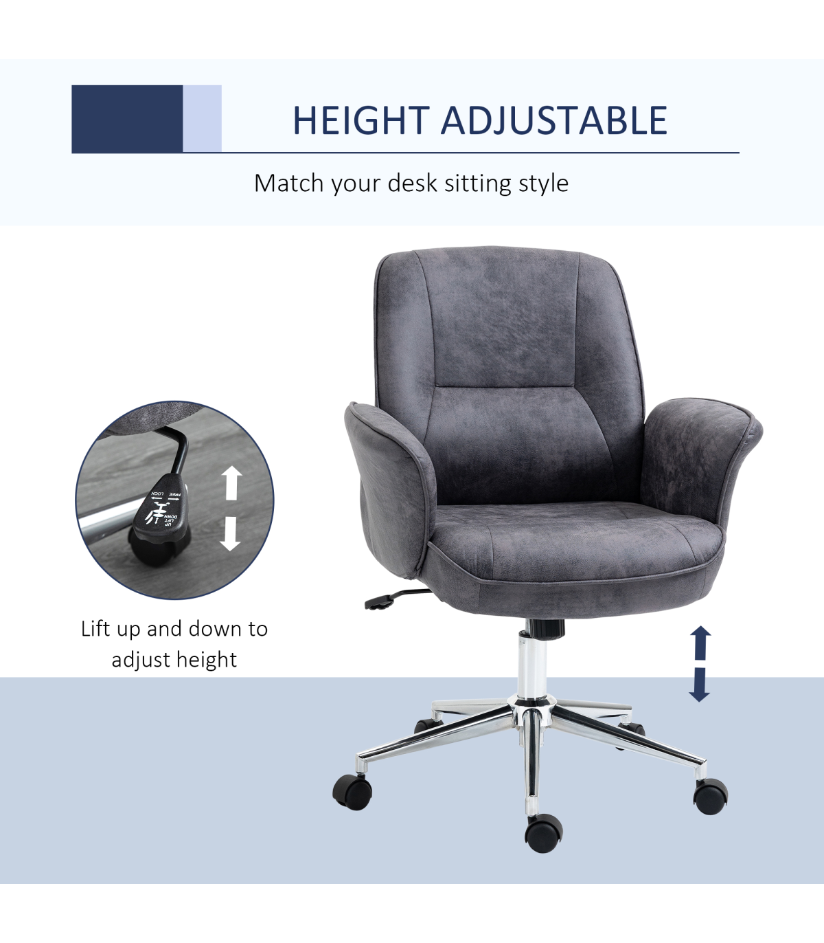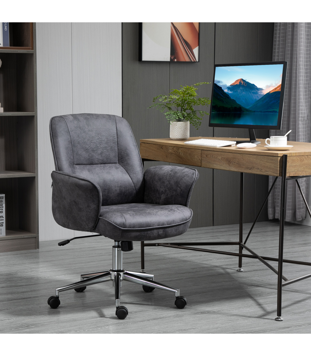 Swivel Computer Office Chair Mid Back Desk Chair for Home, Deep Grey