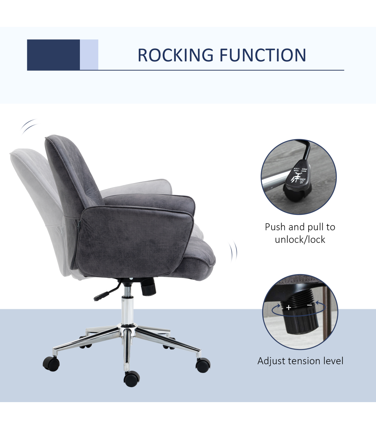 Big comfort, superb style starts here. Welcome this executive office chair, from Vinsetto, into the home for something you'll love using from day to night. The desk chair is wrapped in microfibre upholstery, which gives a look of worn leather but is beautifully soft to the touch. Ergonomic design formed of a large seat which swivels side-to-side, a high back and curved armrests. It's padded all over for comfort, finished with five wheels on the base to move around easy.