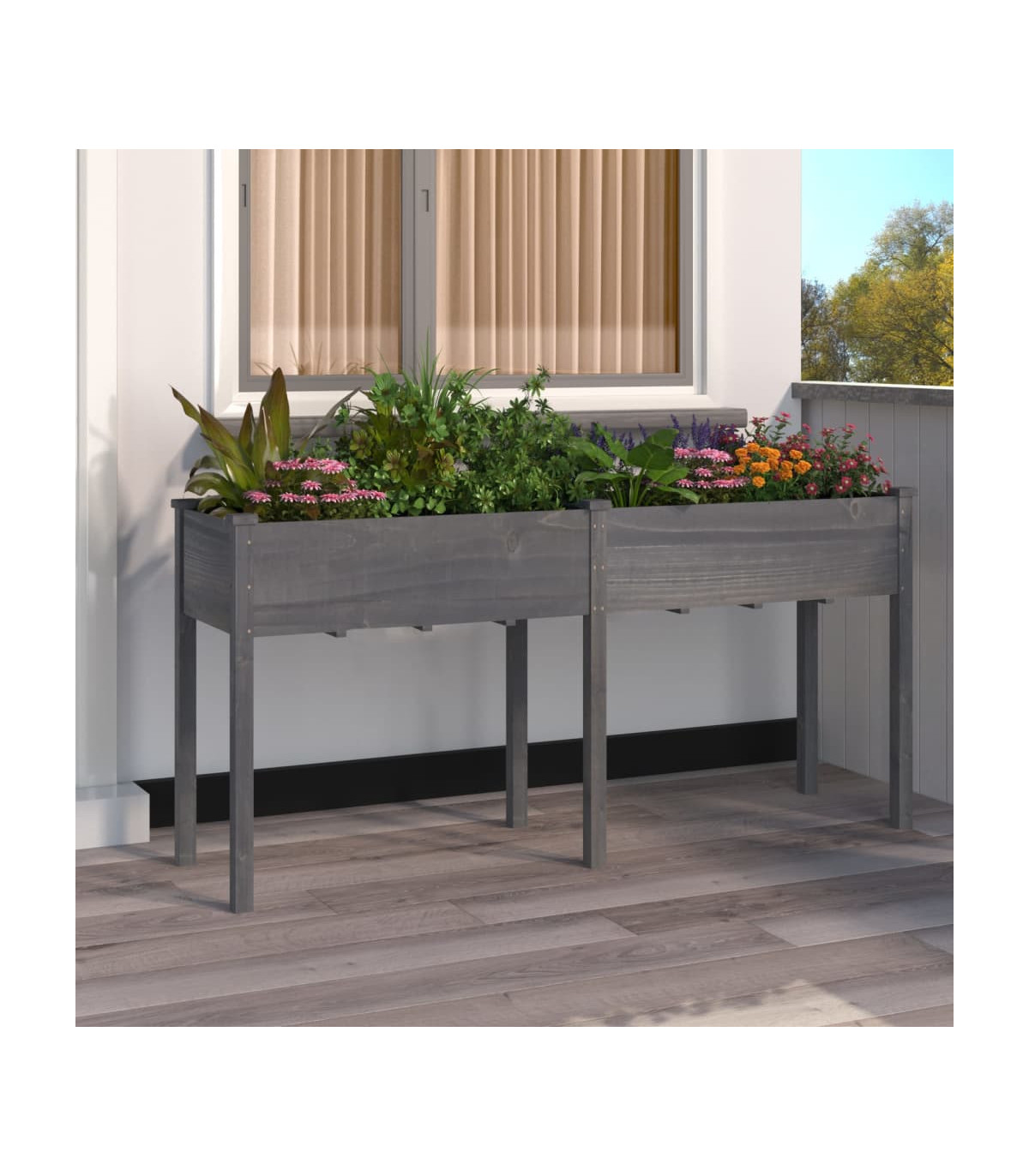 This handy planter with liner is a great choice for DIY enthusiasts to decorate your gardens, balconies, or patios. Solid fir wood: Solid fir wood is a beautiful natural material. Fir wood doesn't dry out or warp when exposed to moisture.Ample space: The wooden planter provides ample space to accommodate a considerable number of plants, vegetables, herbs, and flowers.Practical liner: The included liner separates wood from the soil, keeping the flowerpot in excellent condition and discouraging weeds or animals from interfering with plant growth.Convenient drainage hole: The drainage holes of the flower box allow excess water to drain out, keeping soil fresh and preventing plants from waterlogging or mineral buildup.Decorative function: You can plant any favourite flowers and plants on the planter stand, which will bring a pleasant atmosphere to your living space.