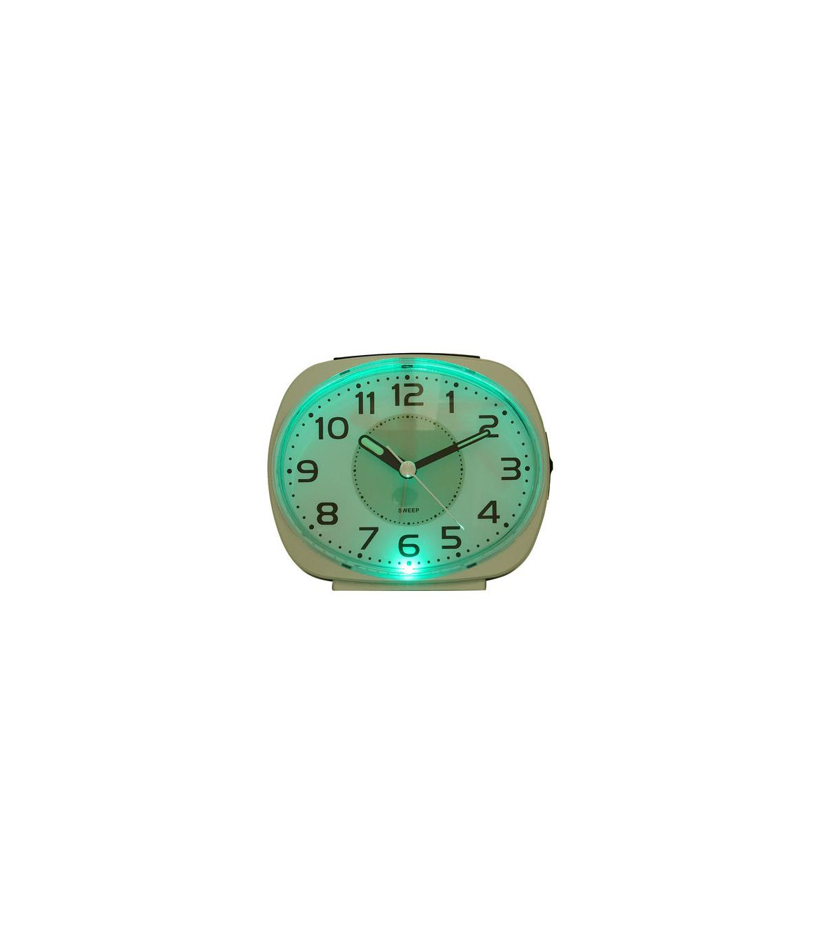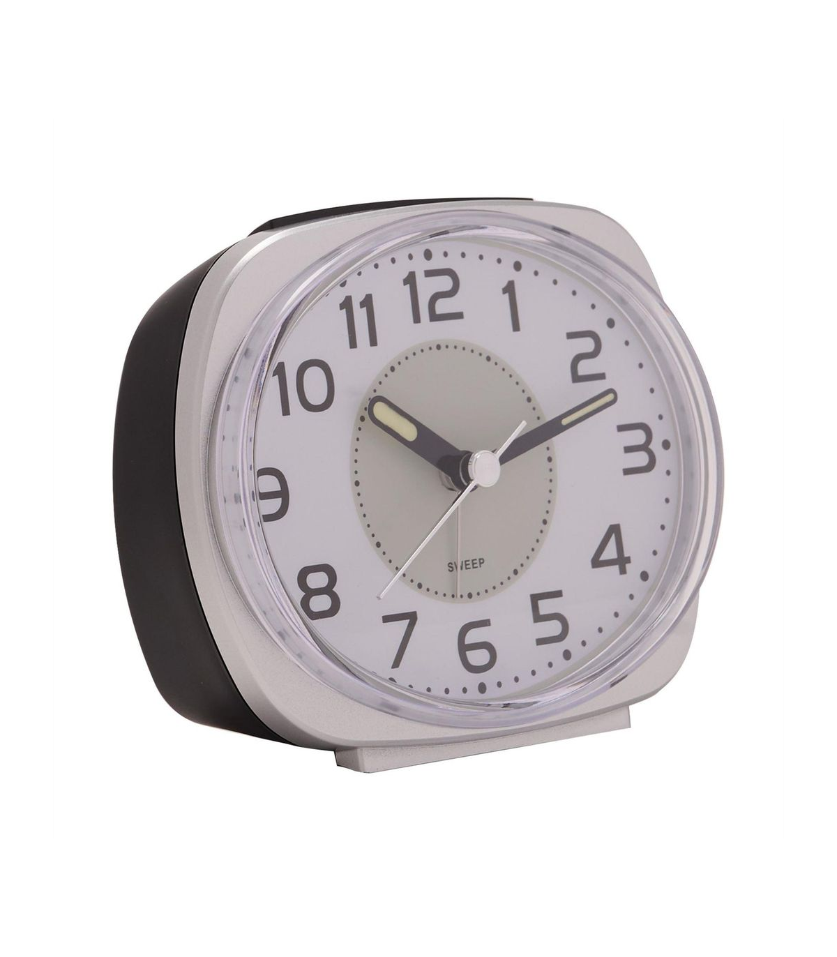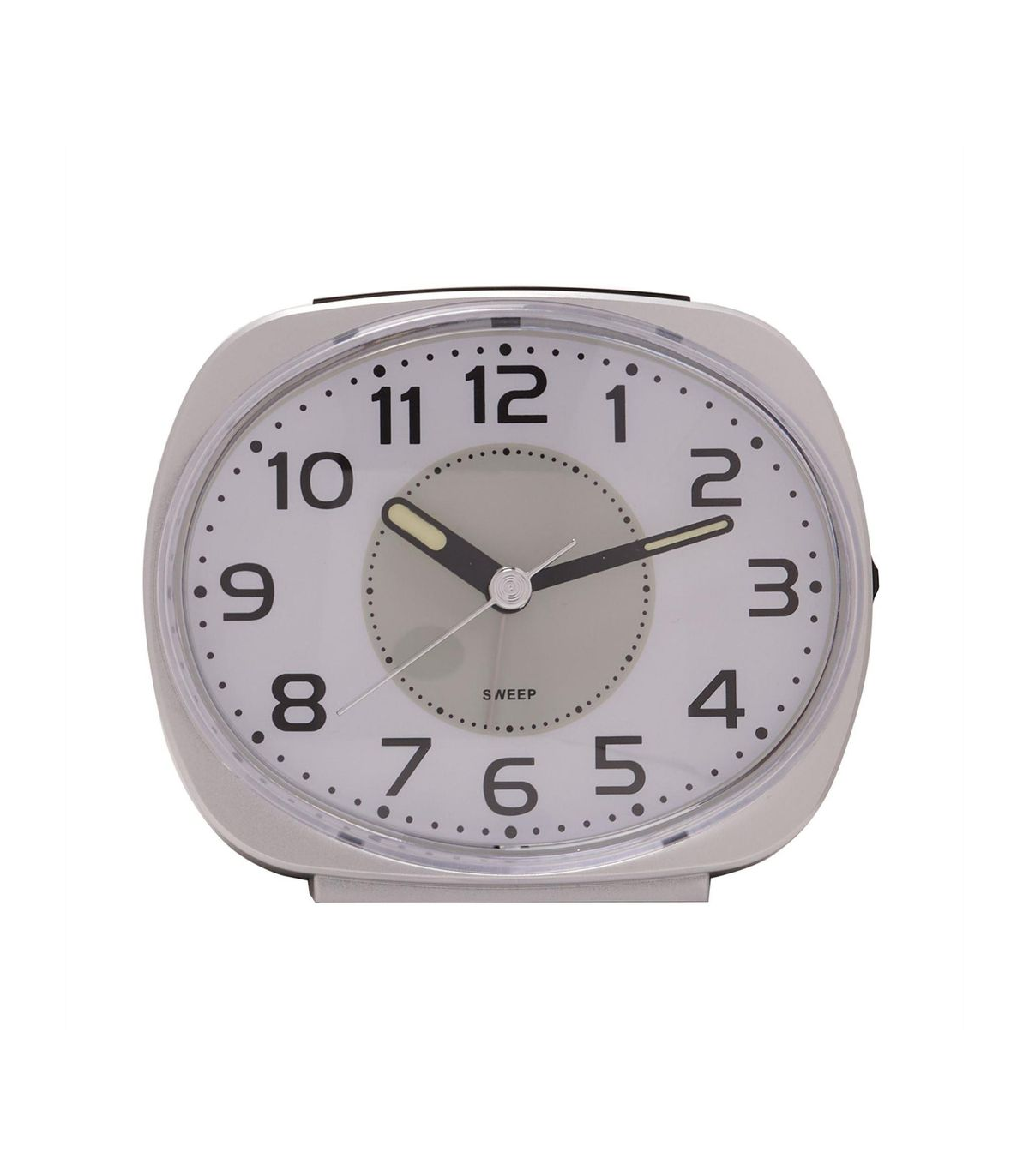 A silver oval face alarm clock by WILLIAM WIDDOP®. This attractive alarm clock adds instant modernity and style to any bedroom. The silver, oval alarm clock showcases a metallic effect finish, complete with white dual light clock face and black Arabic numbering. It is completed by black clock hands, sweep movement and snooze function. The clock is packaged in a brown box