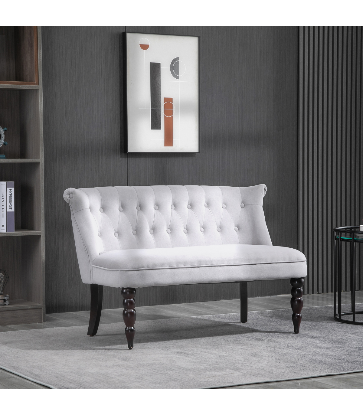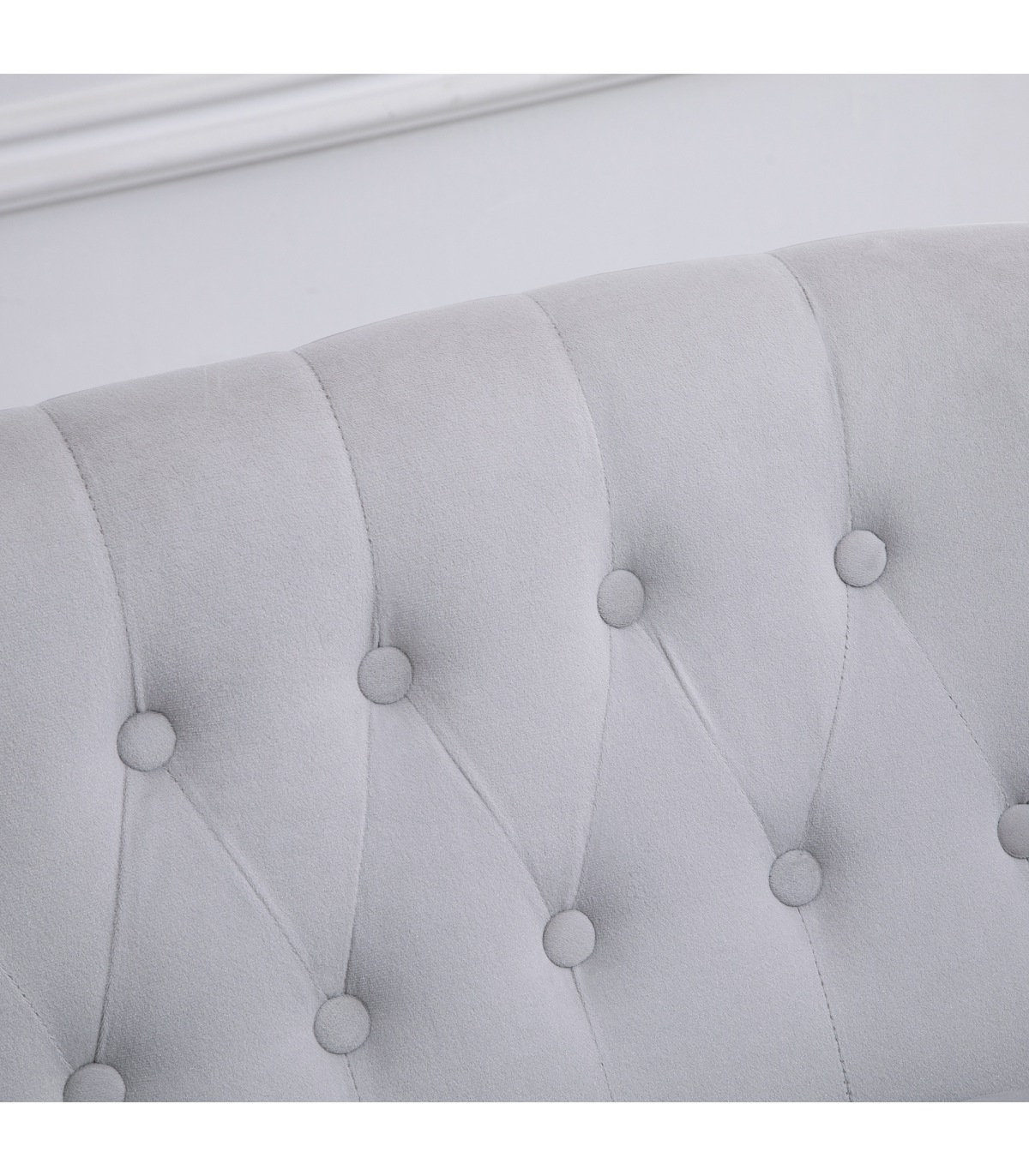 the armless design gives it an open and welcoming feel. Padded all over for comfort, finished with luxe velvet-feel upholstery and back button tufting.