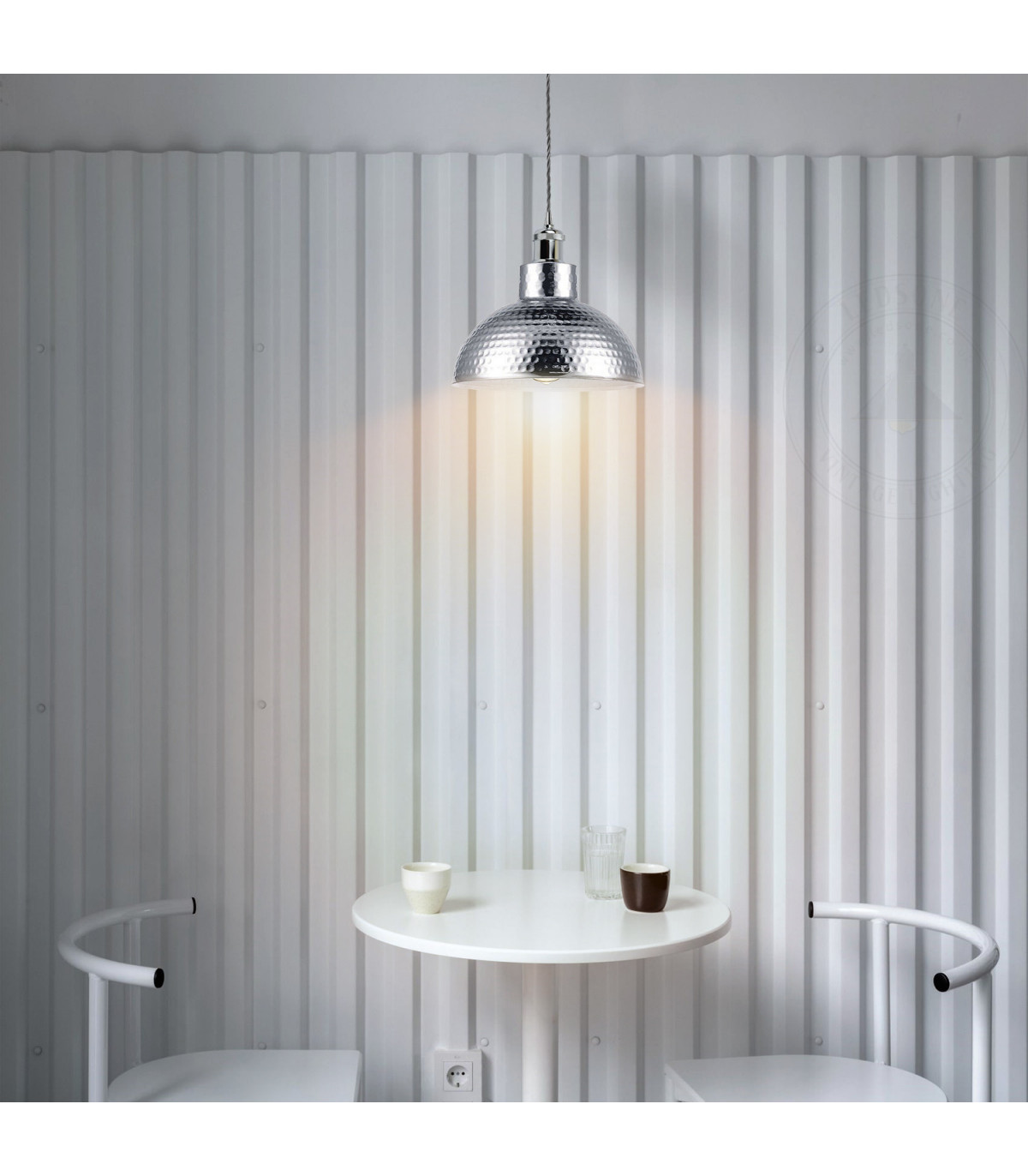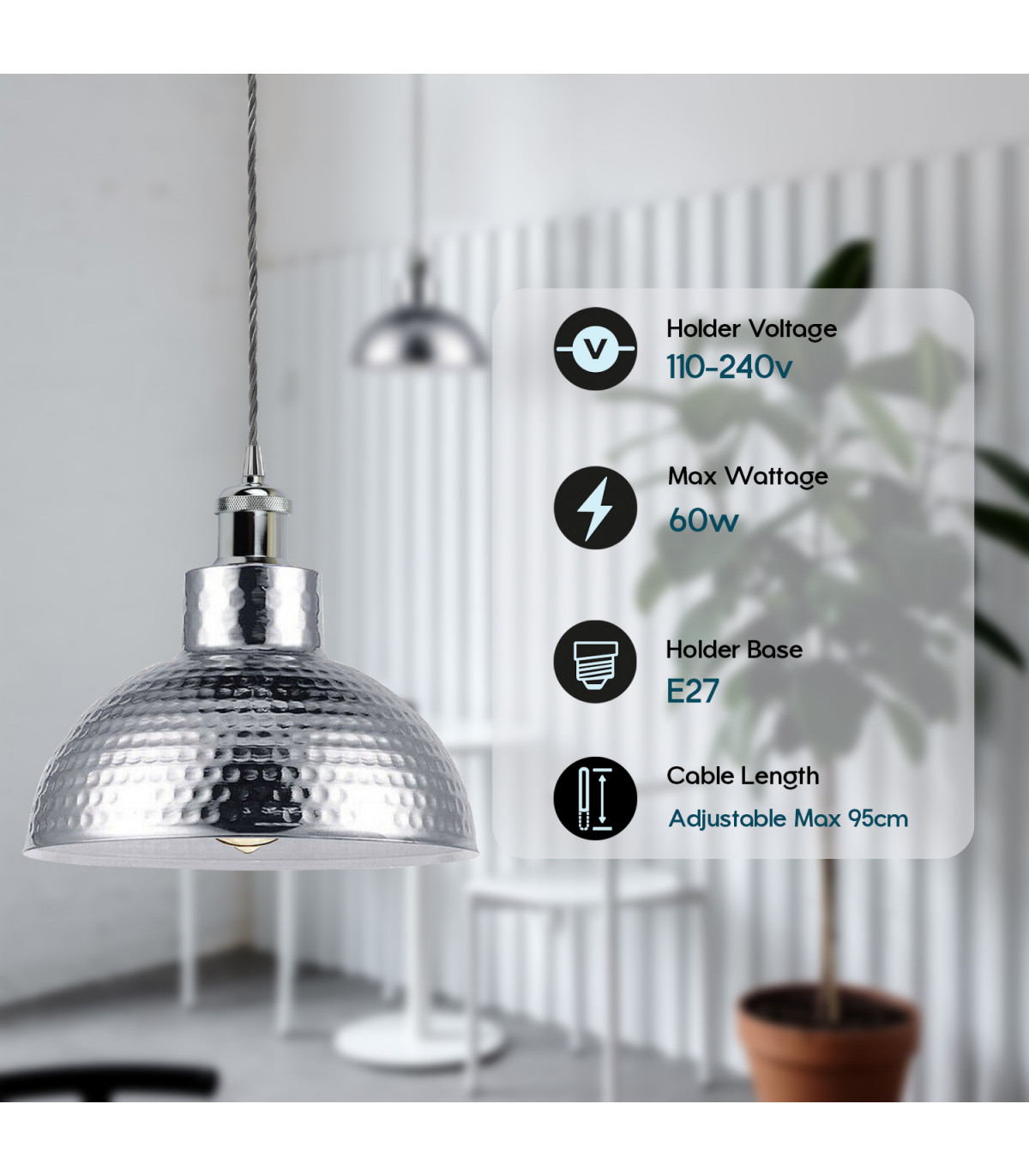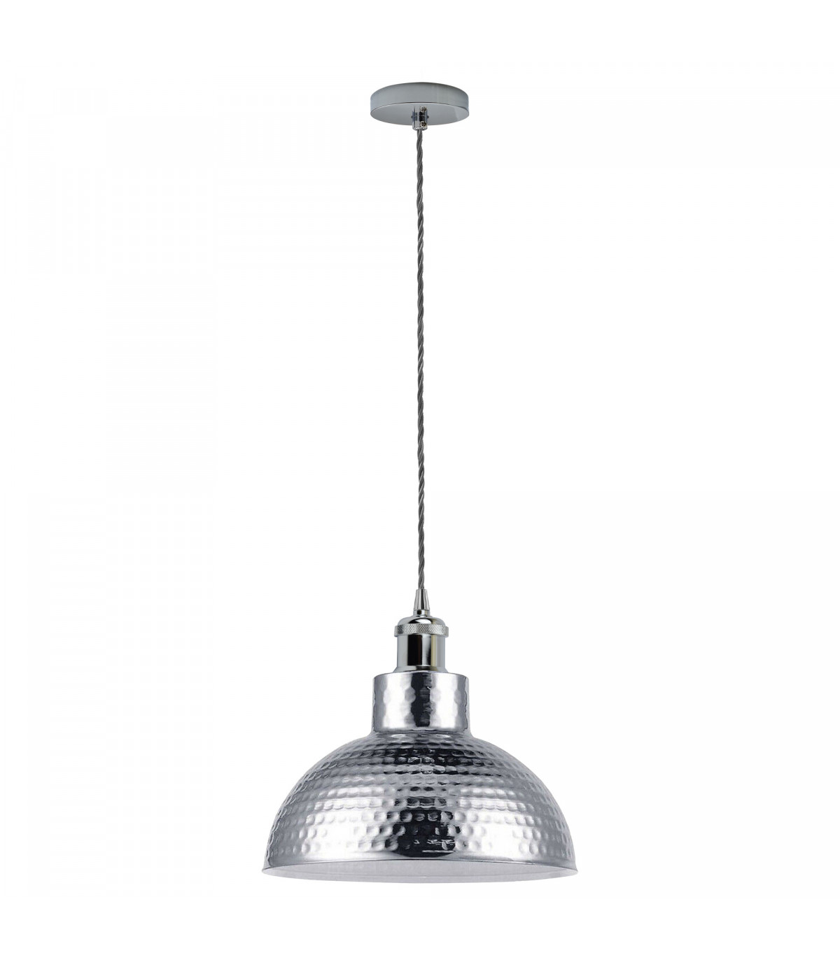 Vintage Industrial Chrome Ceiling Pendant Light Metal Shade Hanging Lamp
