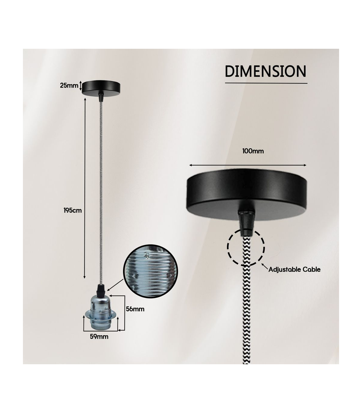 Features: The pendant light kits are designed with contemporary style. Ideally, the filament retro bulbs will be a good choice to bring out the character of this fitting. All the parts comply with the british standard. Perfect for adding lampshades. It can be dimmable when used with a matching dimmer switch and dimmable bulb. Item Specifications / Technical Details: Item Type: Pendant light holder Style: Vintage/Retro Voltage: AC110V-240V Material: Metal/PVC Bulb Requirements: Requires E27 max 60W Bulb Type: Compatible with all kinds of E27 bulbs Installation Area: Indoor Power Source: Hardwired Cable length: 195cm adjustable cable Dimmable: Yes(required a dimmable bulb and dimmer switch) Energy consumption: A+ with LED bulb.