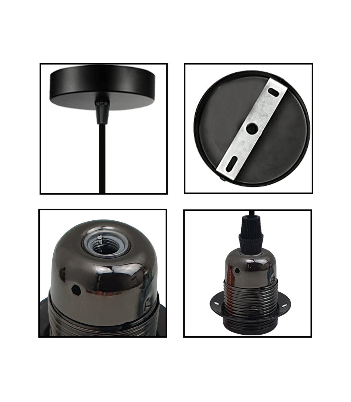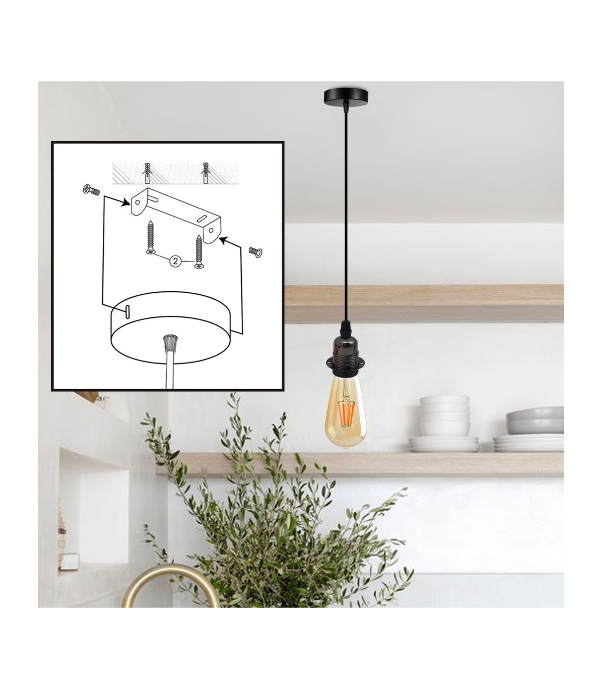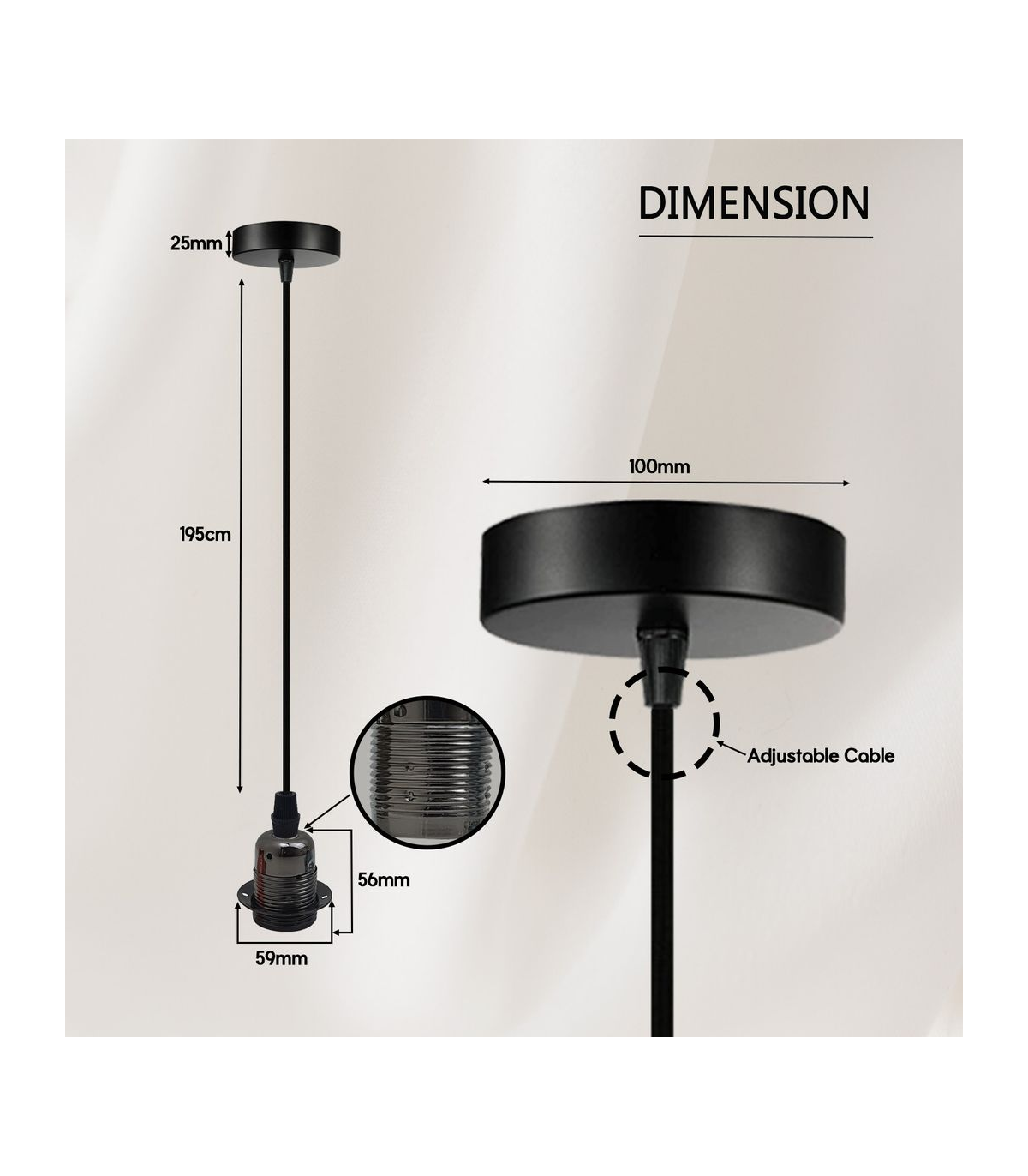 Features: The pendant light kits are designed with contemporary style. Ideally, the filament retro bulbs will be a good choice to bring out the character of this fitting. All the parts comply with the british standard. Perfect for adding lampshades. It can be dimmable when used with a matching dimmer switch and dimmable bulb. Item Specifications / Technical Details: Item Type: Pendant light holder Style: Vintage/Retro Voltage: AC110V-240V Material: Metal/PVC Bulb Requirements: Requires E27 max 60W Bulb Type: Compatible with all kinds of E27 bulbs Installation Area: Indoor Power Source: Hardwired Cable length: 195cm adjustable cable Dimmable: Yes(required a dimmable bulb and dimmer switch) Energy consumption: A+ with LED bulb.