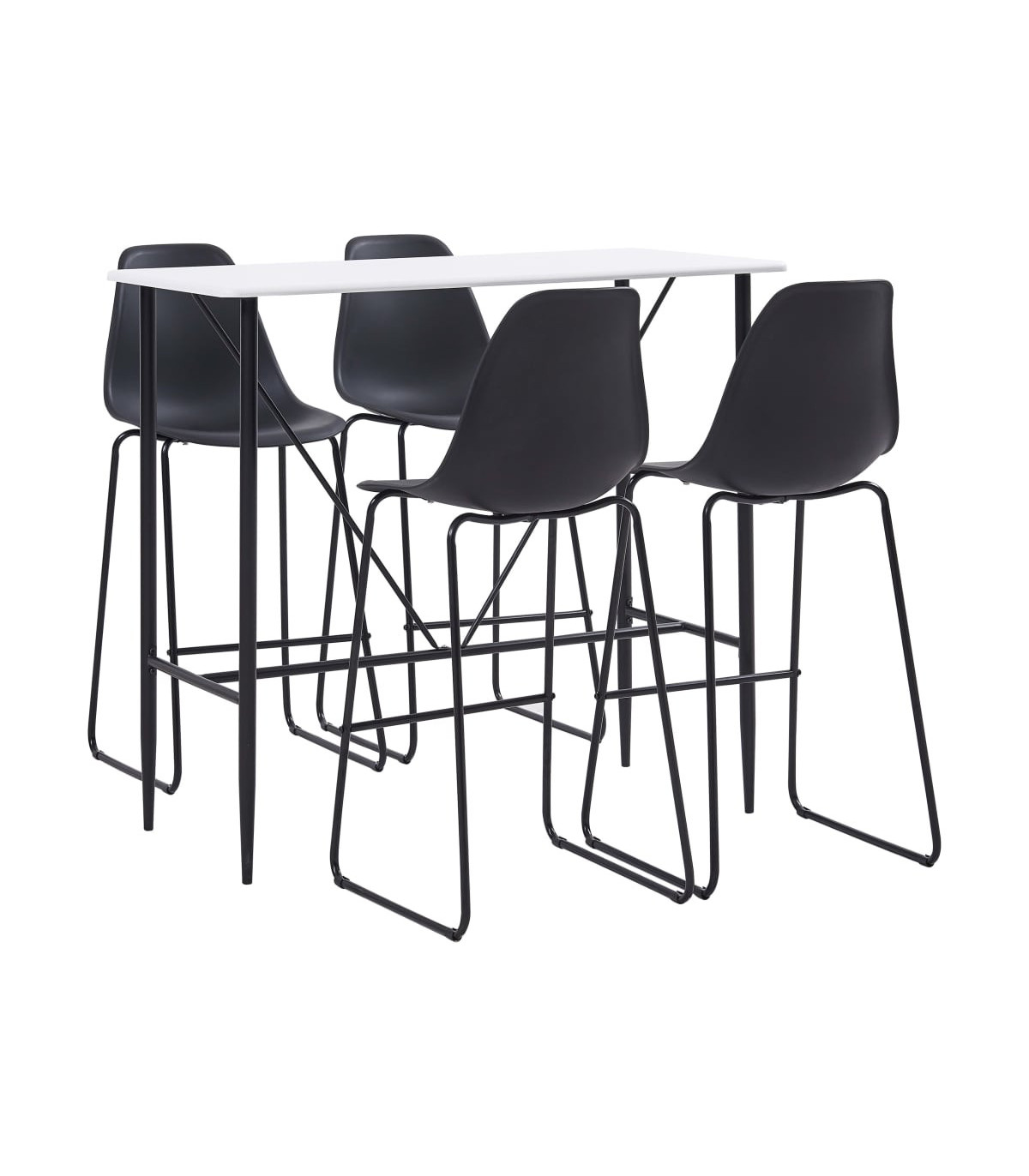 Featuring a modern and contemporary design, our bar set is perfect to go with any modern homes, gardens, bars, pubs, or restaurants. Its clean and contemporary design will complement any interior decor. The tabletop is made of MDF which is easy to clean. The powder-coated steel frame adds to the bar table's stability and sturdiness. The pub chairs have an ergonomically designed seat with integrated backrest in a modern, curved look. Additionally, they are easy to assemble. Our bar set is ideal for enjoying a few sips of wine in the bar, grabbing a bite at the counter, or for use as extra seats when you invite guests over. Delivery includes a bar table and 4 bar chairs.