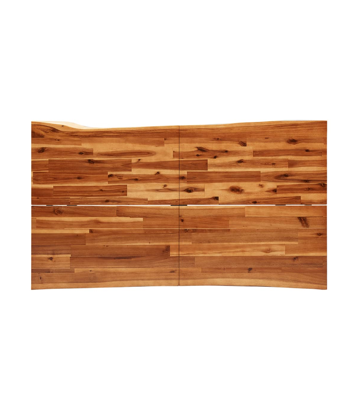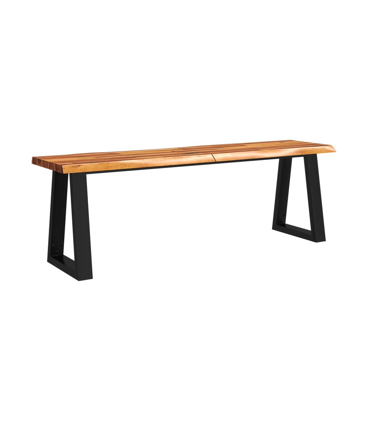 Featuring an elegant design, this dining set will become the focal point of your dining room or kitchen. Solid acacia wood: The bench seat and dining table are made of solid acacia wood. Solid acacia wood is a beautiful natural material. Acacia wood is a tropical hardwood, which is dense, sturdy, and durable.Live edge: The wood's live edge that follows the natural shape of the tree increases the beauty of the furniture set.Stable frame: The U-shaped powder-coated steel legs add an industrial style to your interior while ensuring the stability of the dinner set.Practical tabletop: The sturdy tabletop of the kitchen table is perfect for placing meals, drinks, and other decorative items.