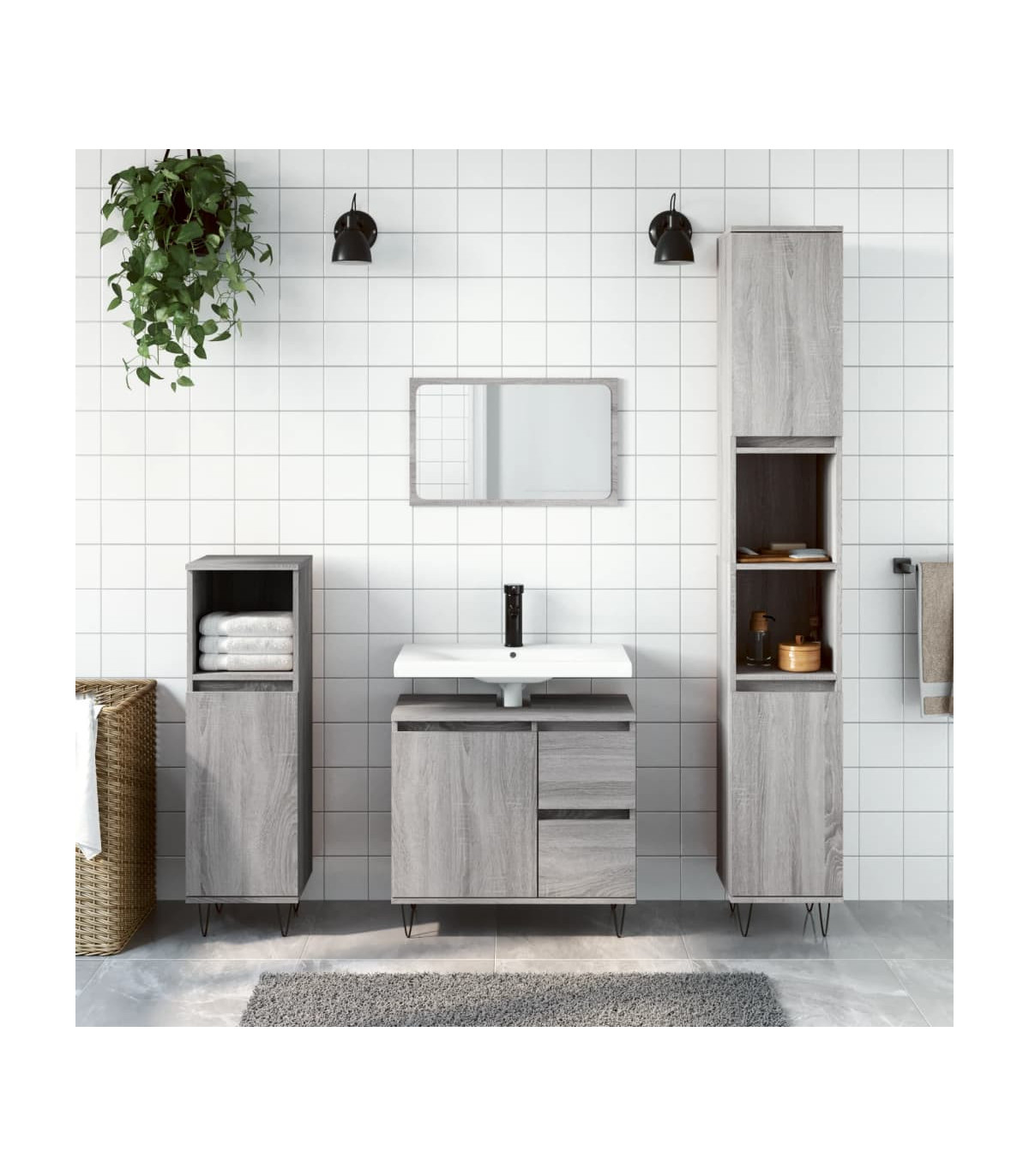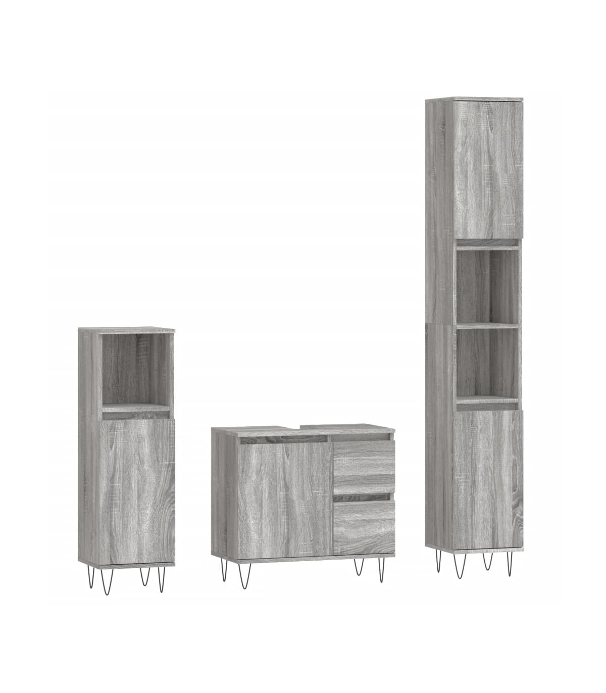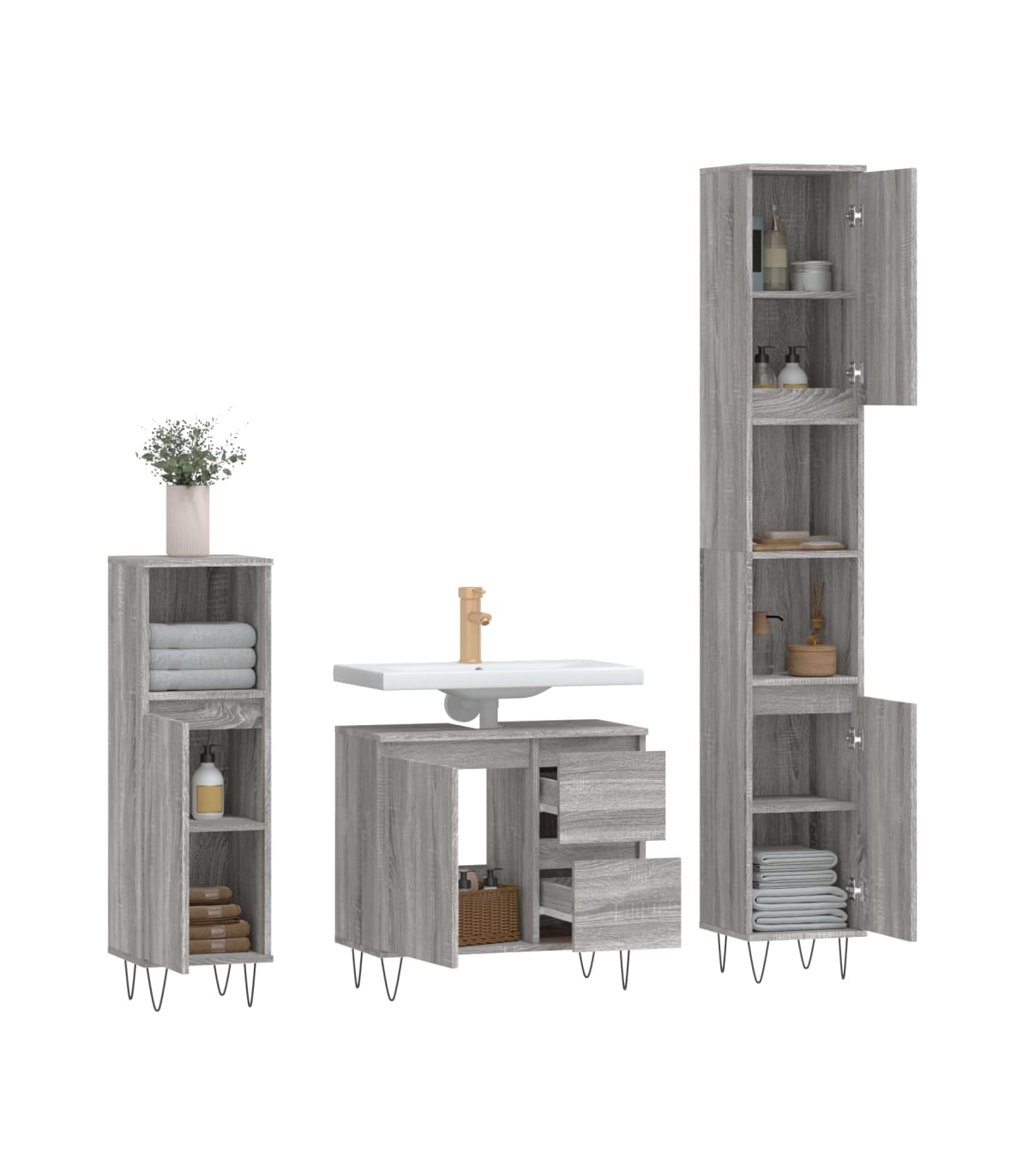 vidaXL 3 Piece Bathroom Furniture Set Grey Sonoma Engineered Wood