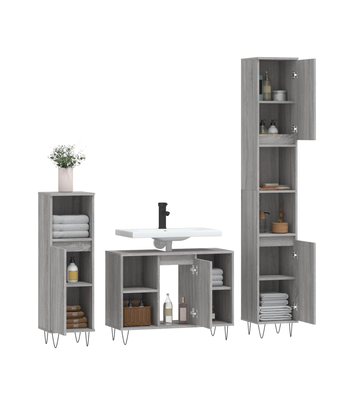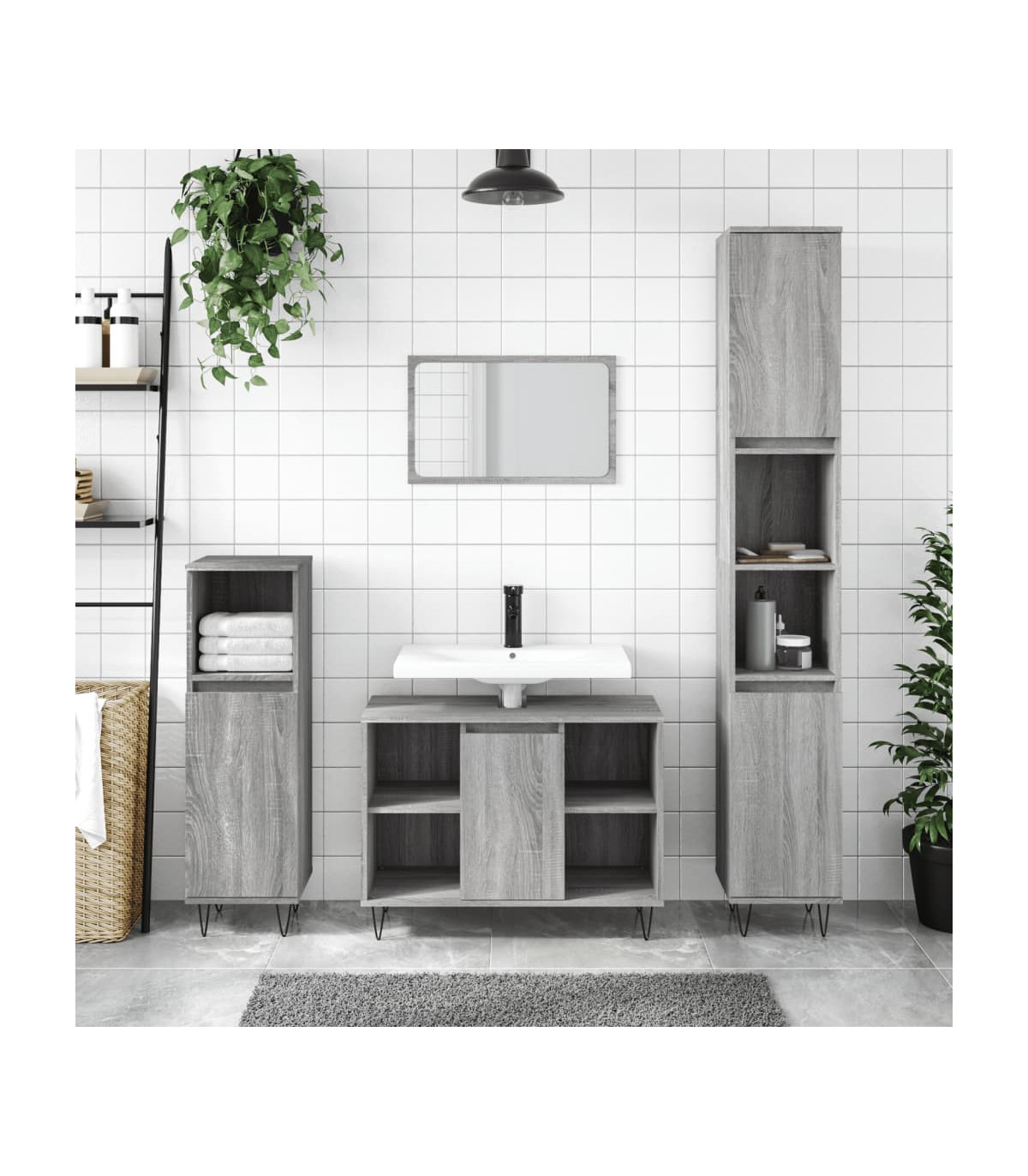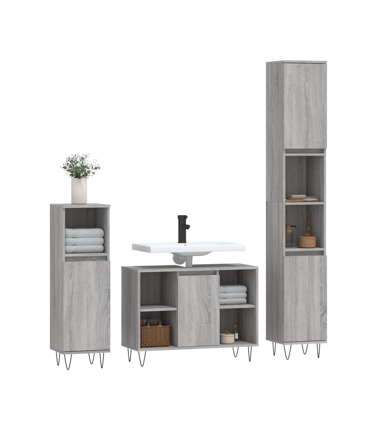 vidaXL 3 Piece Bathroom Furniture Set Grey Sonoma Engineered Wood
