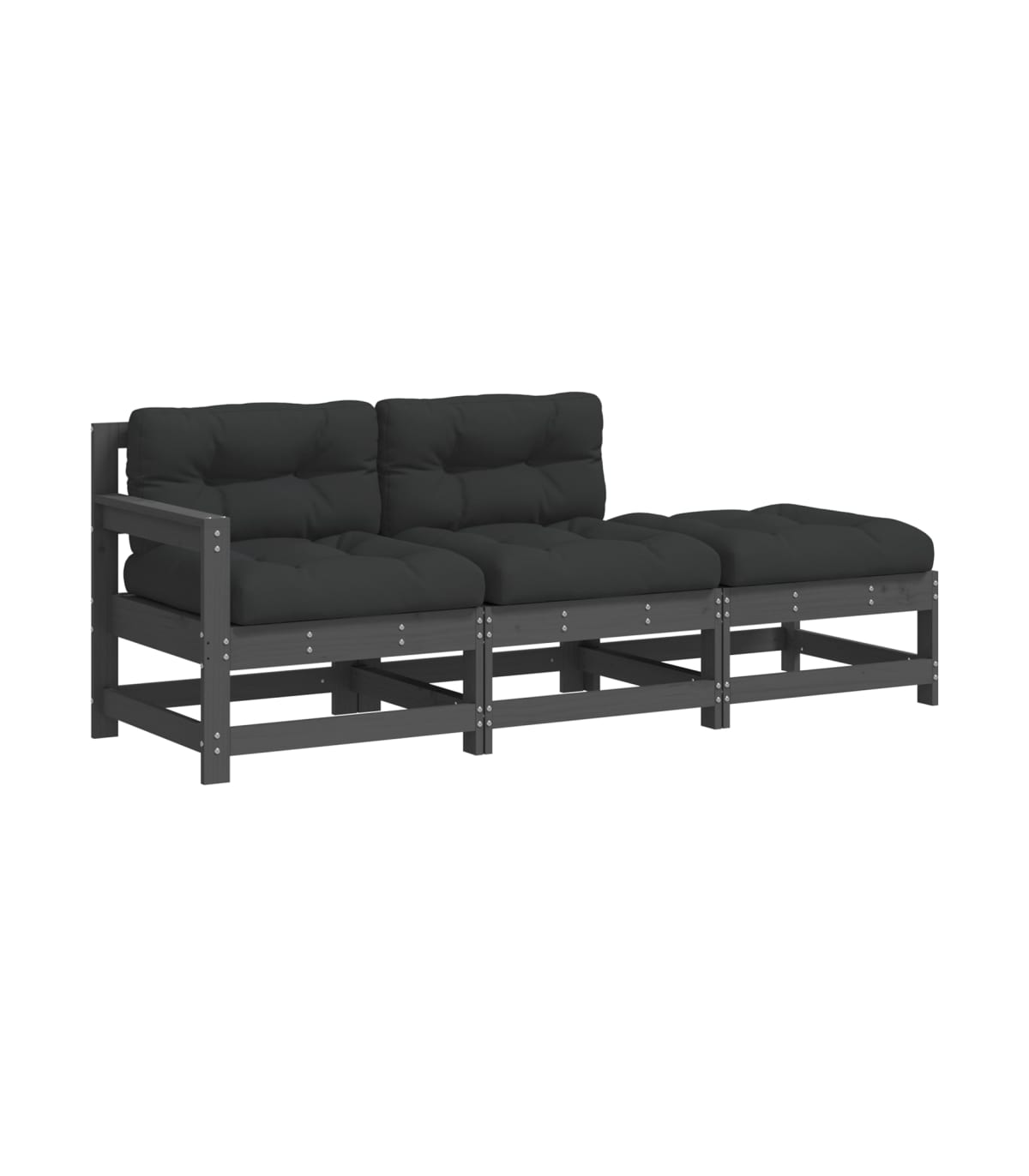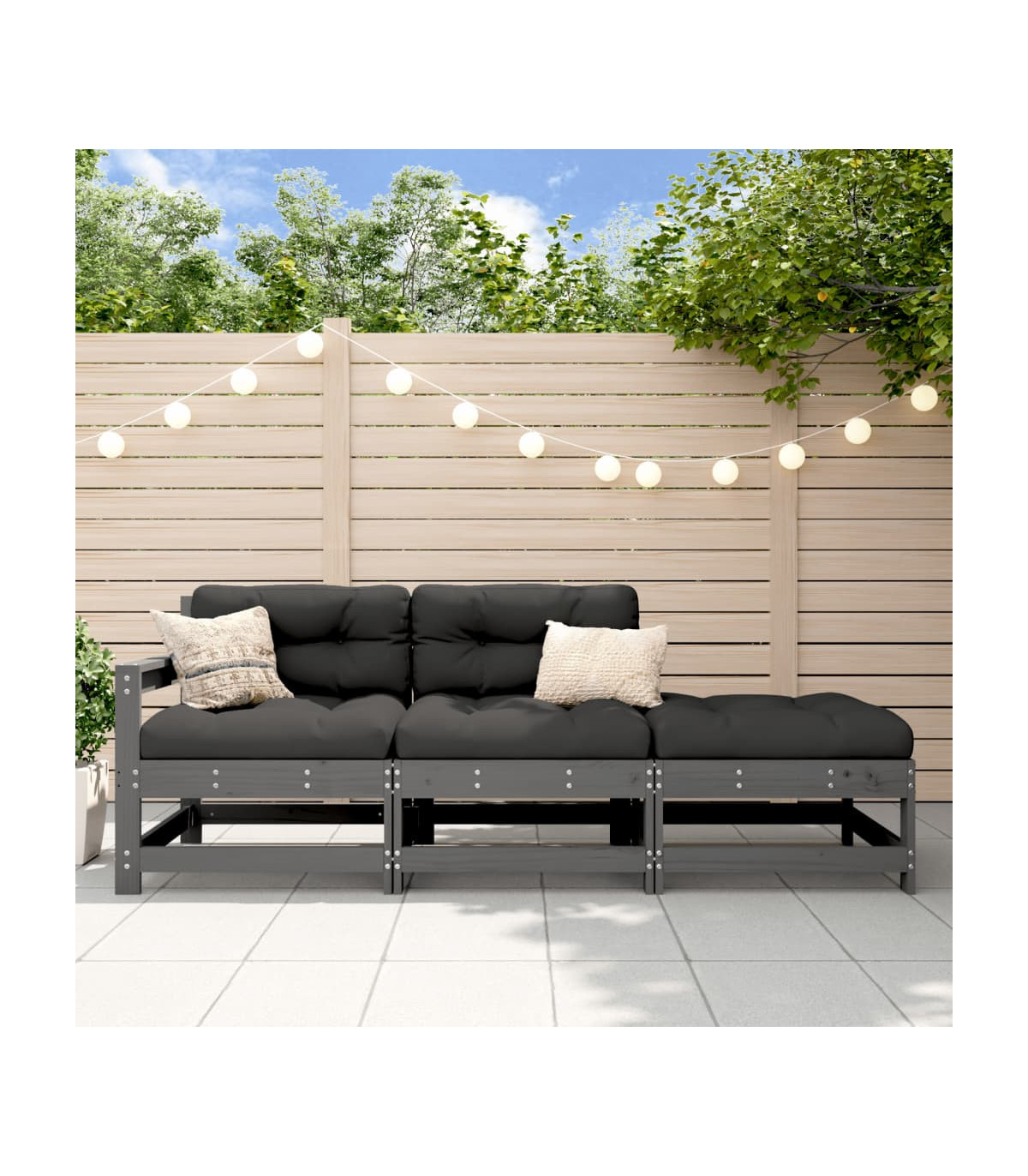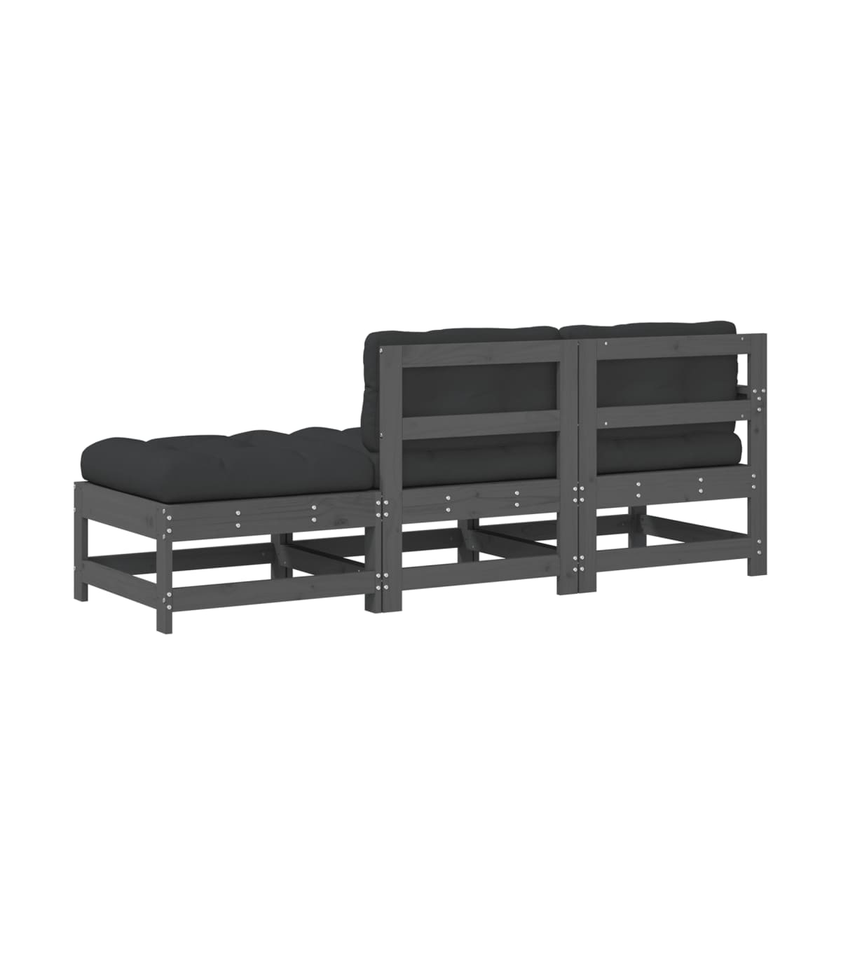 vidaXL 3 Piece Garden Lounge Set with Cushions Grey Solid Wood