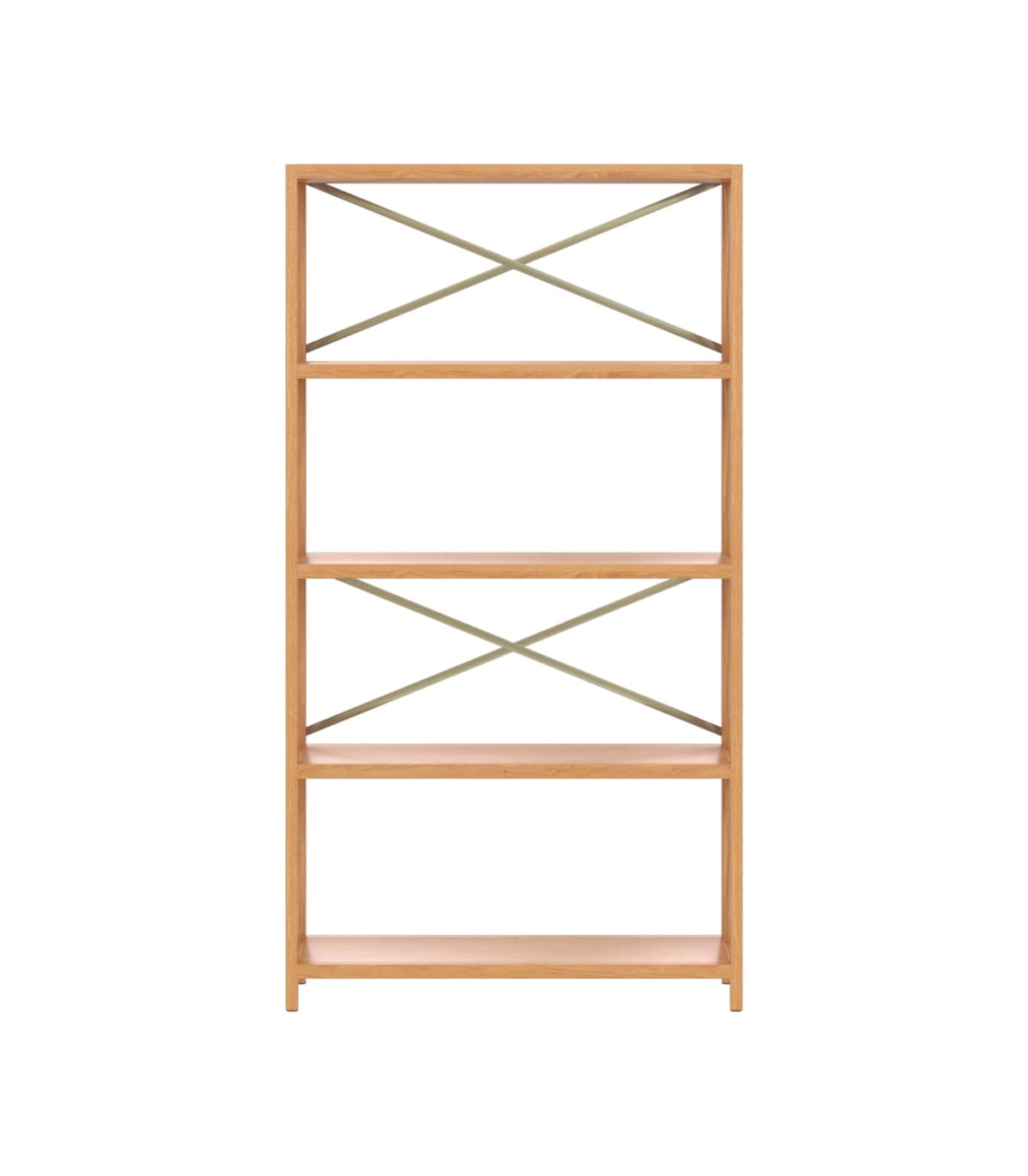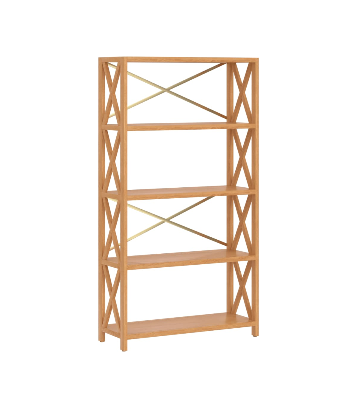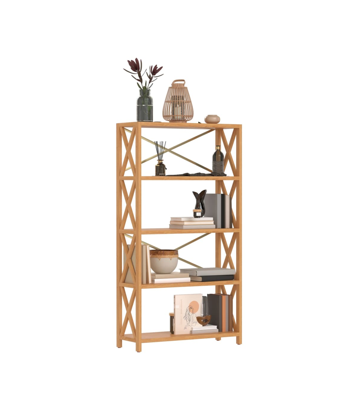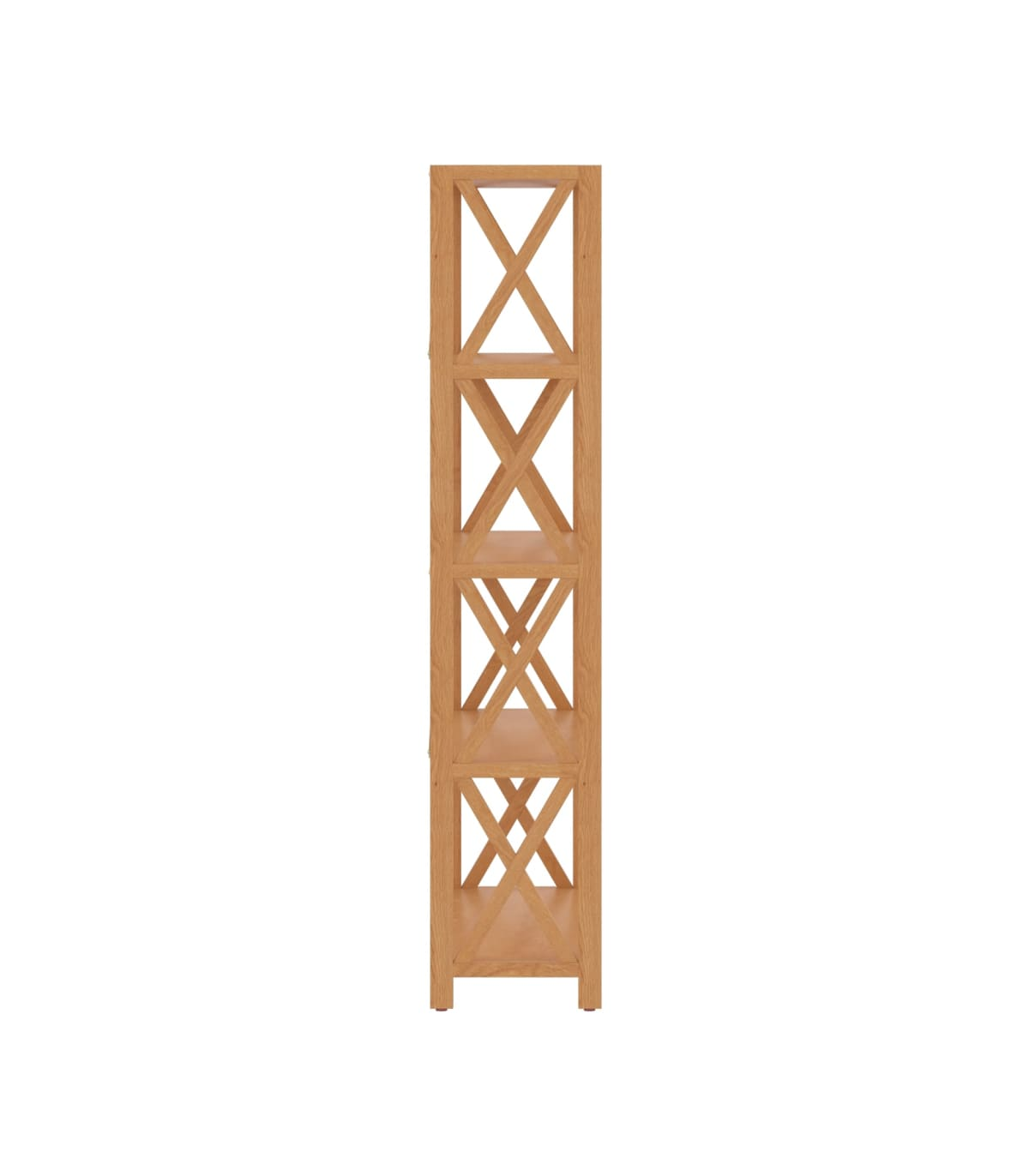 With this wooden shelf, you can keep your things clean and tidy without scattering them in your living space! Solid oak wood: The storage shelf is made of solid oak wood. Solid oak wood is a beautiful natural material. Oak wood has a medium brown colour and a dense grain, contributing to its unique look.Ample storage space: The display shelf, featuring 3 tiers, provides ample space to keep your books, magazines, collectables, photo frames, or other essentials well-organised and within reach.Stable frame: The X-shaped bars make the whole frame of the storage rack more sturdy and stable.Wide applications: The wooden shelf can be used as a bookshelf, plant shelf, bathroom shelf or even a kitchen organiser. Featuring a minimalistic design, it is perfectly suitable for your home and office. Warning:To prevent it being overturned, this product must be used with the provided wall attachment device.