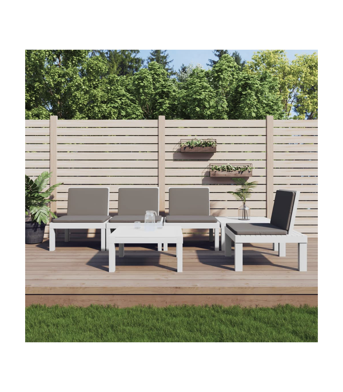 This garden lounge set combines style and functionality and becomes the focal point of your garden or patio. Durable material: Polypropylene (PP) is a popular plastic that is also one of the most used materials in outdoor furniture. It's lightweight, tough, and resistant to impact.Flexible combinations: Thanks to their flexible function, these garden chairs can be quickly and easily converted into a sun lounger, bench or big coffee table. You can create your own personal garden lounge set as per your preference.Comfortable experience: The soft cushions make the lounge set more comfortable.Adjustable backrest: The backrest of the garden seating reclines in 5 positions and you can enjoy maximum comfort by choosing the optimal position and angle. Good to know:To make sure your outdoor furniture stays beautiful, we recommend protecting it with a waterproof cover.