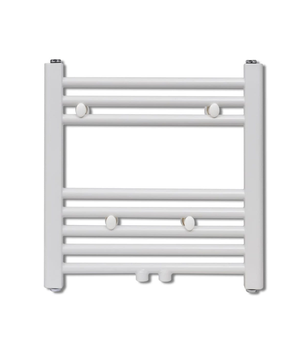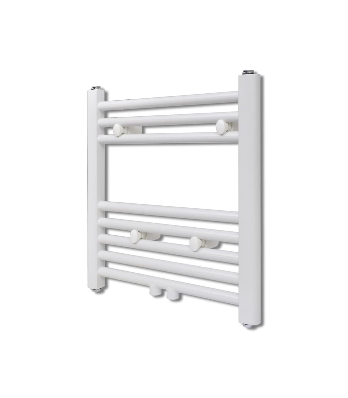 This towel radiator is designed for dual-purpose both as towel warmer and space heater. It helps bathrooms stay warm, mold, and mildew free and is suitable for drying large towels and long bathrobes in the meantime. Thanks to the help of hot water circulation system, your towels will be dried in no time, which costs not electric bills. The towel warmer has 8 steel cross-bars of 22 mm in diameter and is painted in white. The cross-bars are extra-thick and subsequently produce a high heat output. The top and the bottom are both equipped with water inlets for an optimal water flow. It is easy to assemble and maintain. Scope of delivery includes wall brackets and screws.