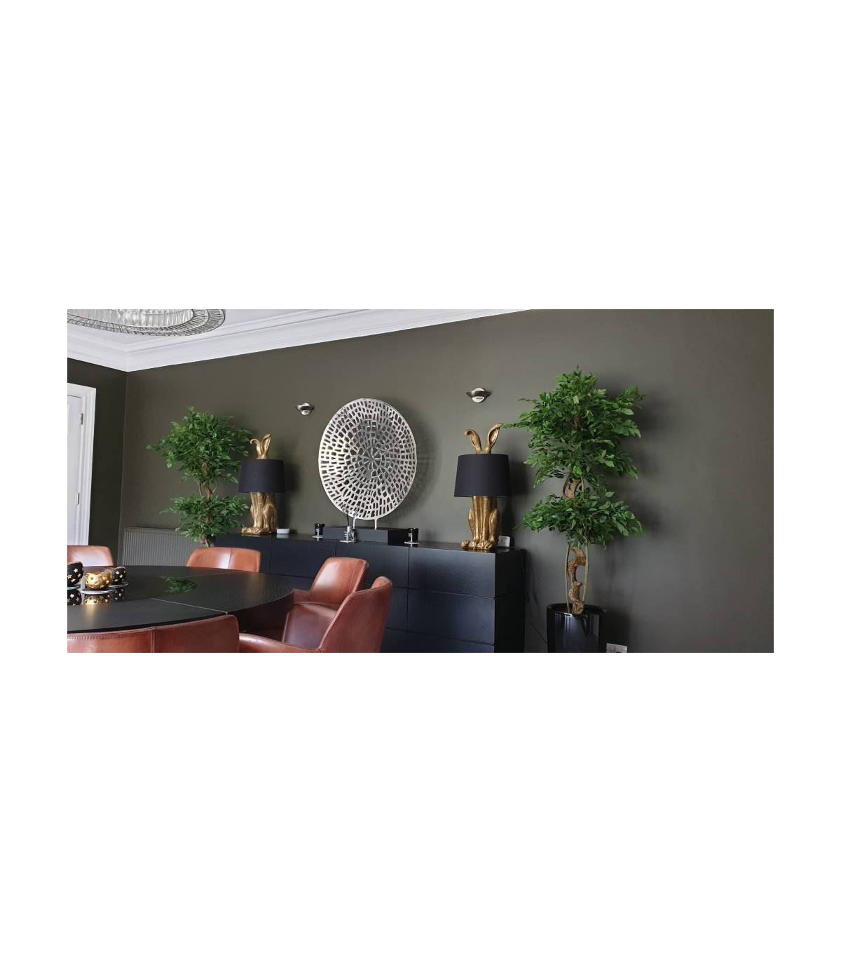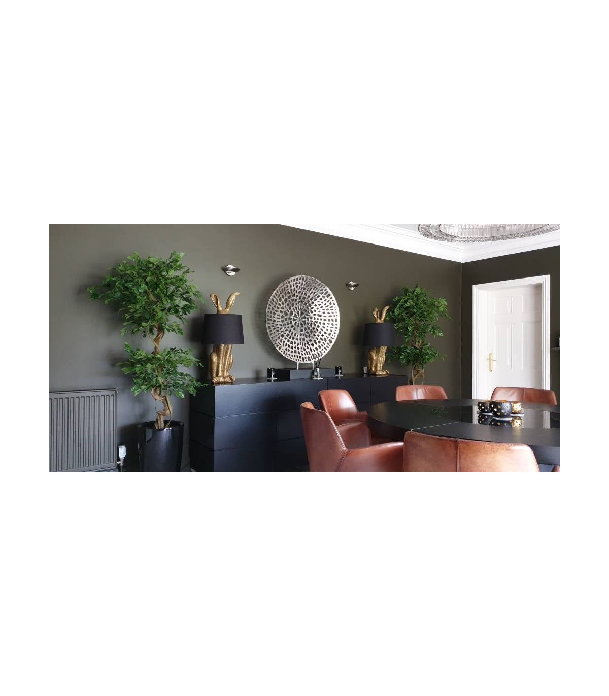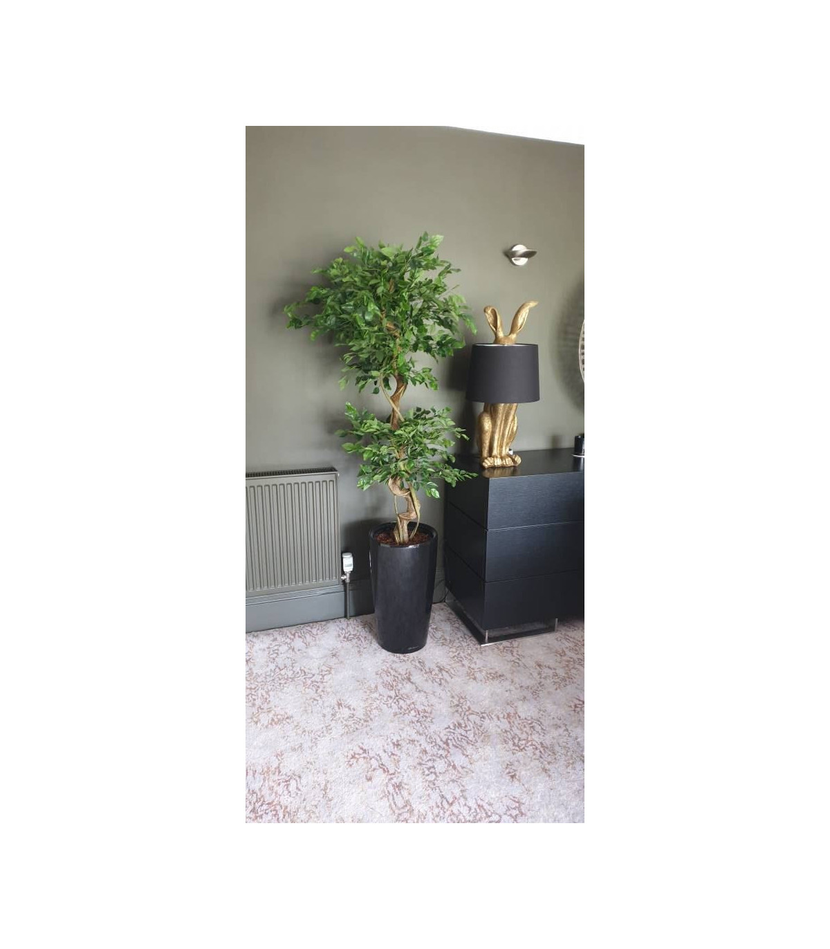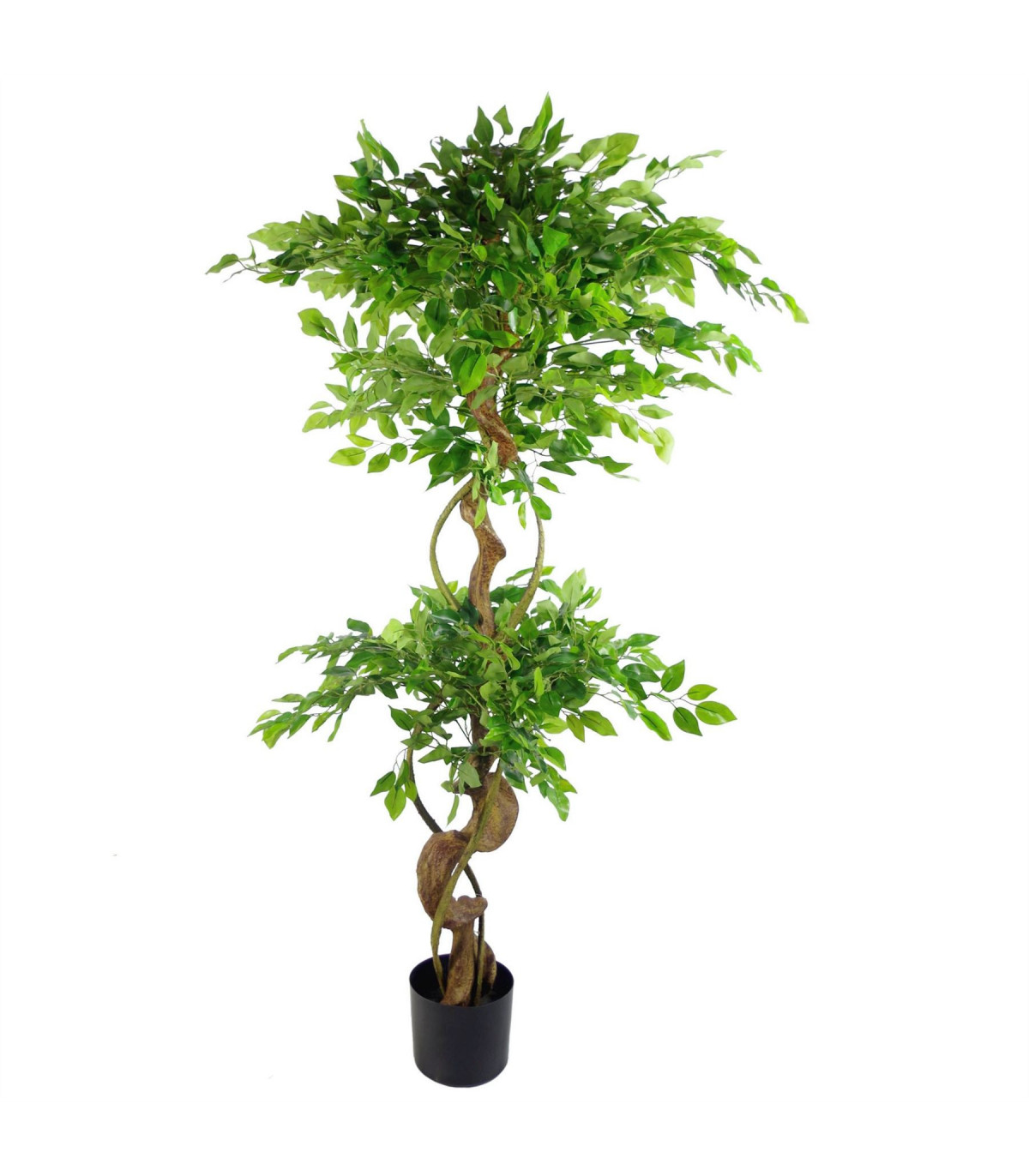 Leaf Design UK Artificial Evergreen Large Trees - 150cm Large Twisted Ficus. Overall size as arranged in our photos: 150cm tall. Comes fully assembled requiring only minor arrangement to suit your space.. Comes in a Plastic weighted pot. Pot Measurements: 17cm (d) x 15cm (h) approx.Stems are wired and can be shaped to your requirements.High quality plant from Leaf Design UK.