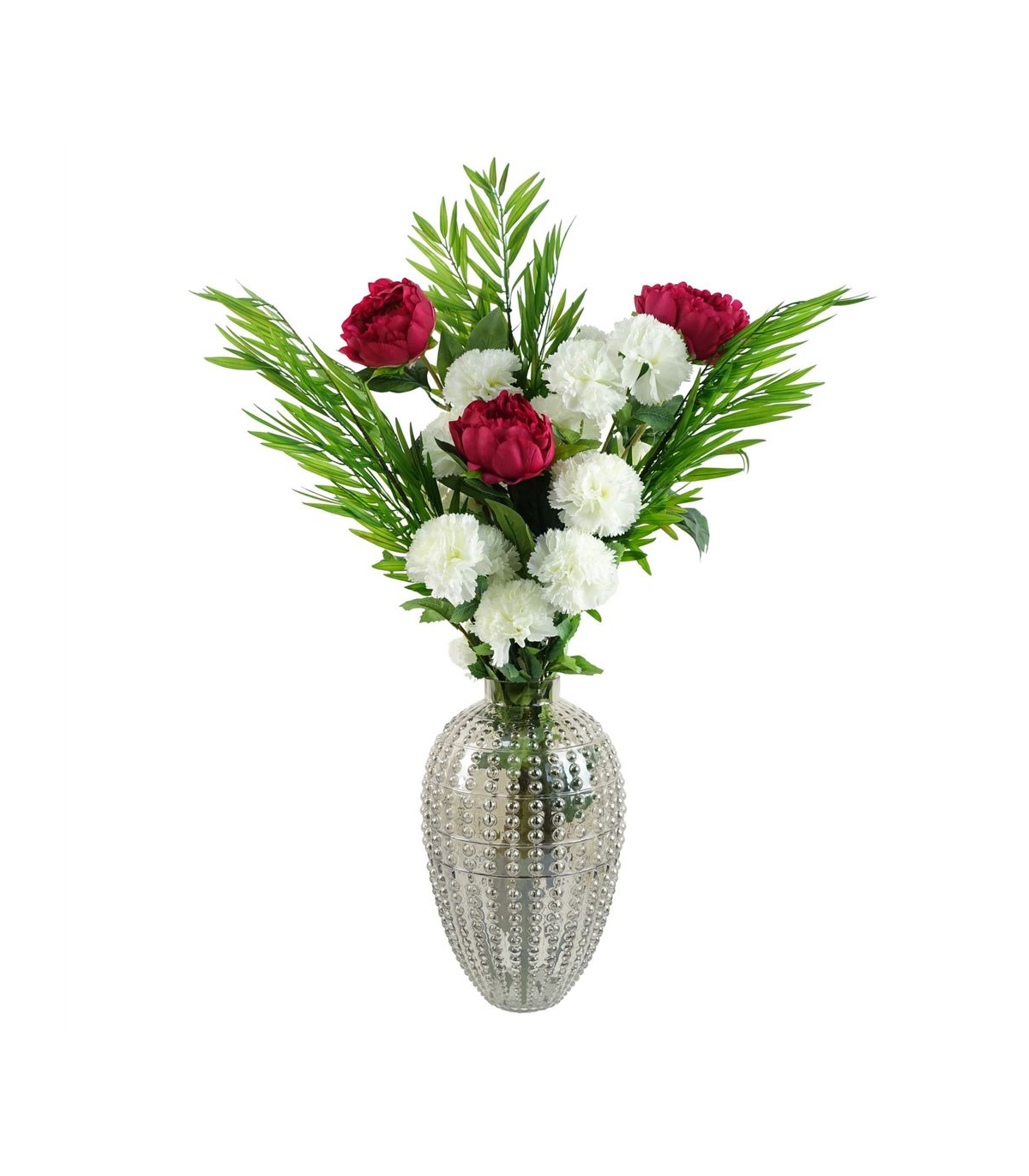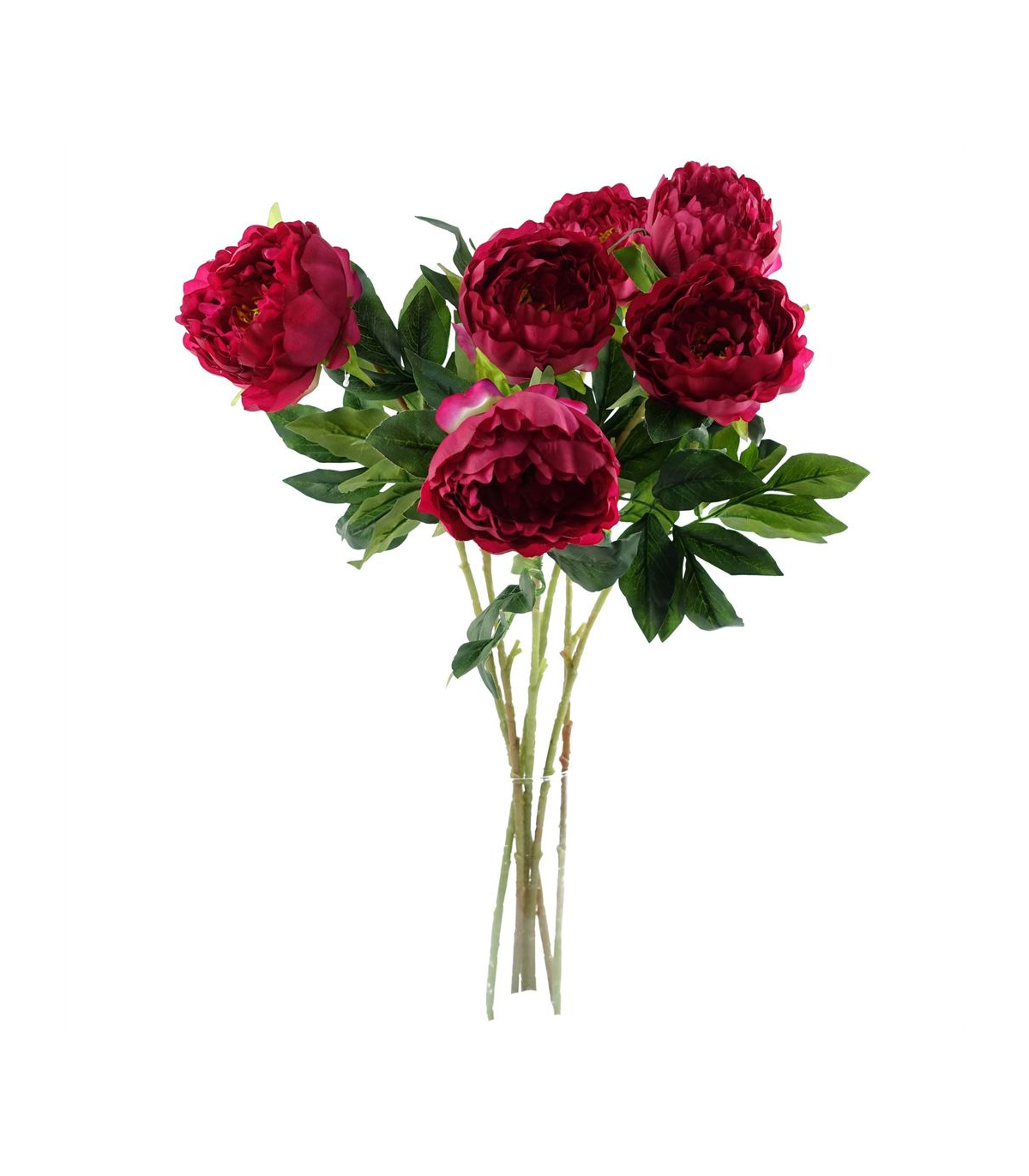 Pack of 6 x Dark pink artificial peony stem. Can be used to make arrangements with our other artificial flowers or as decorations on their own. Each stem measures 80cm overall height x 20cm wide and has a single large flower. Flowers are silk. These are easy to cut down shorter using a pair of wire cutters if required. Some of our photos show vases to give an idea of size and possibilities for arrangement but no vases or planters are included with these flowers.