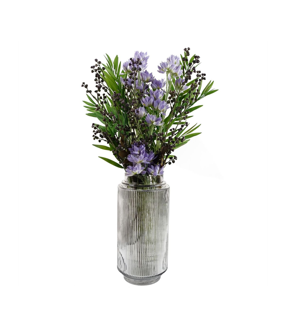Pack of 6 x Dark purple berry stem with silk leaves. Can be used to make arrangements with our other artificial flowers or as decorations on their own. Each stem measures 85cm overall height x 10cm wide. These are easy to cut down shorter using a pair of wire cutters if required. Some of our photos show vases to give an idea of size and possibilities for arrangement but no vases or planters are included with these berries.