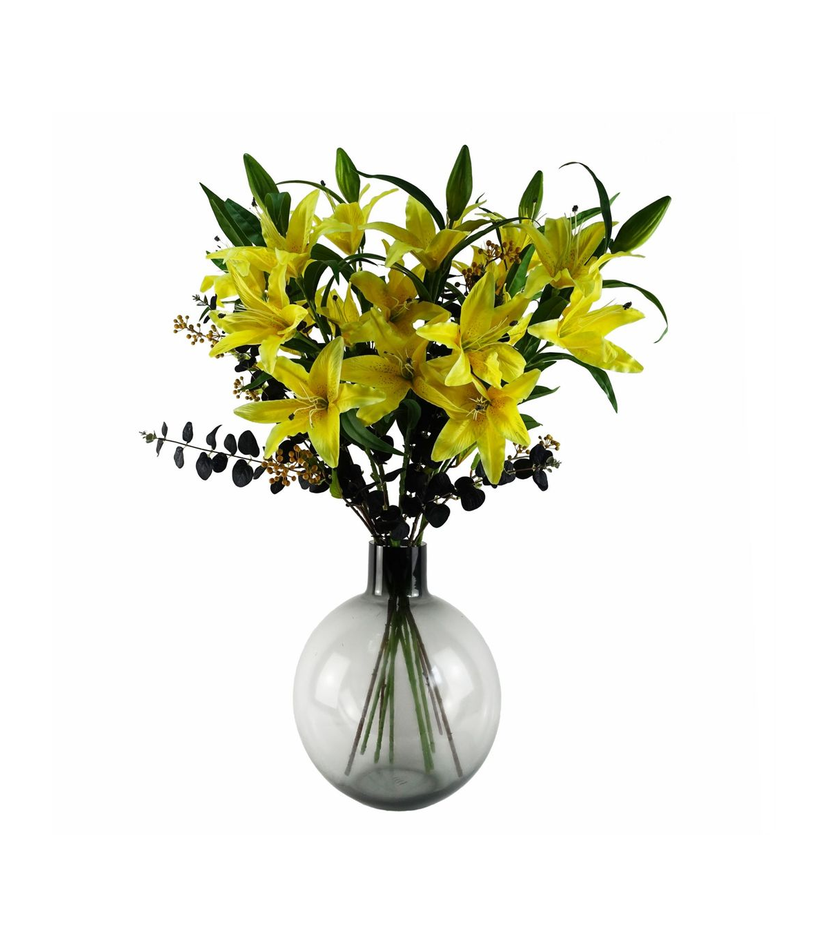 Pack of 6 x 100cm Large Yellow Lily Stem - 18 Flowers