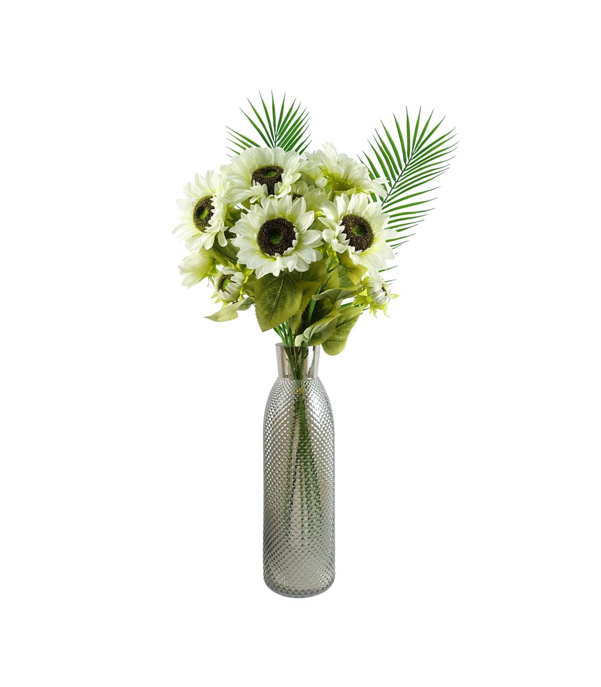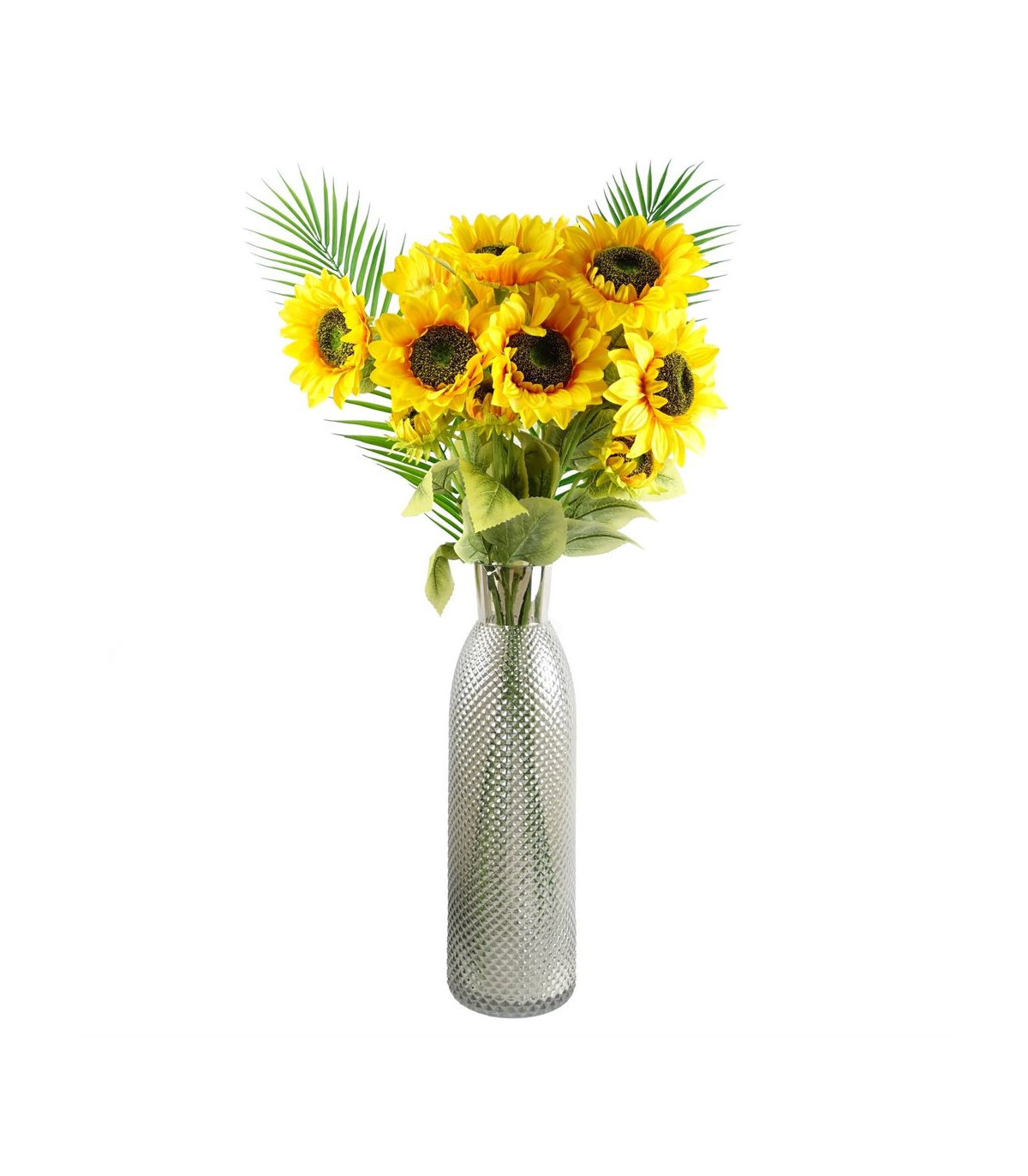 Pack of 6 x Realistic Palm leaf with wired shapable stem. Can be used to make arrangements with our other artificial flowers or as decorations on their own. Each stem measures 100cm overall height x 15cm. These are easy to cut down shorter using a pair of wire cutters if required. Some of our photos show vases to give an idea of size and possibilities for arrangement but no vases or planters are included with these leaves.