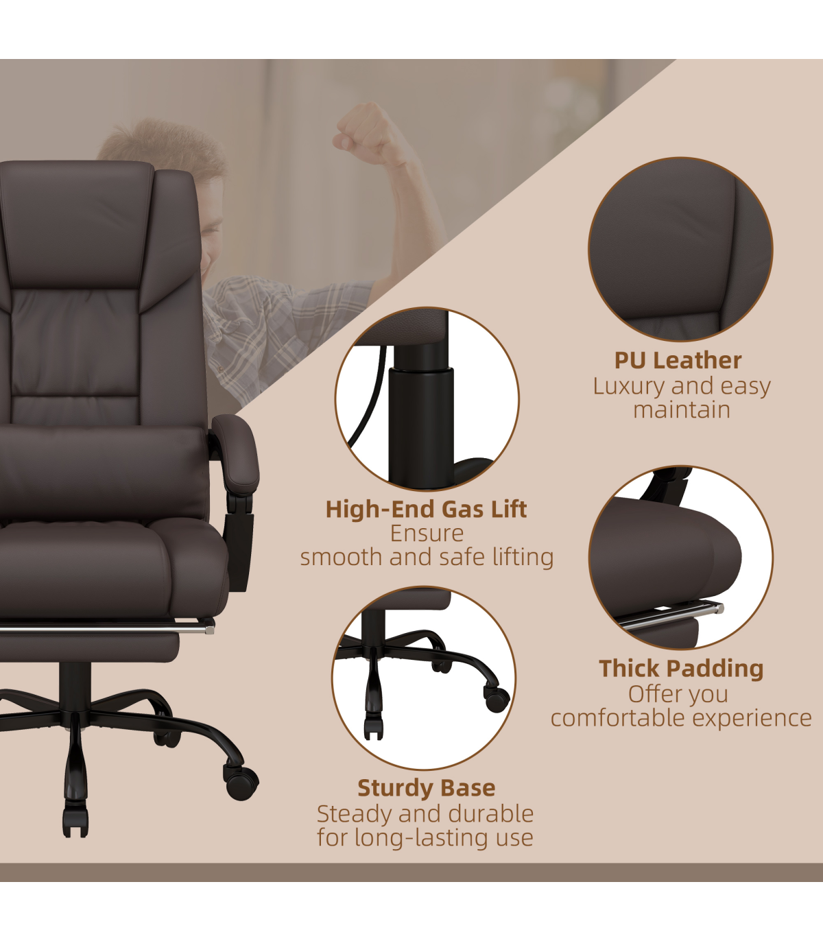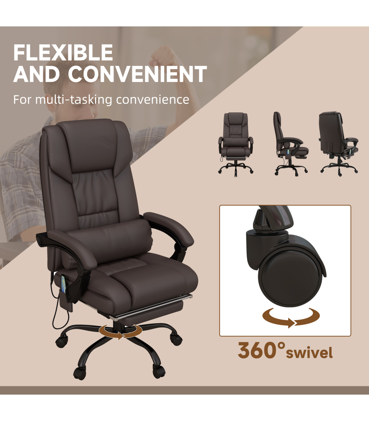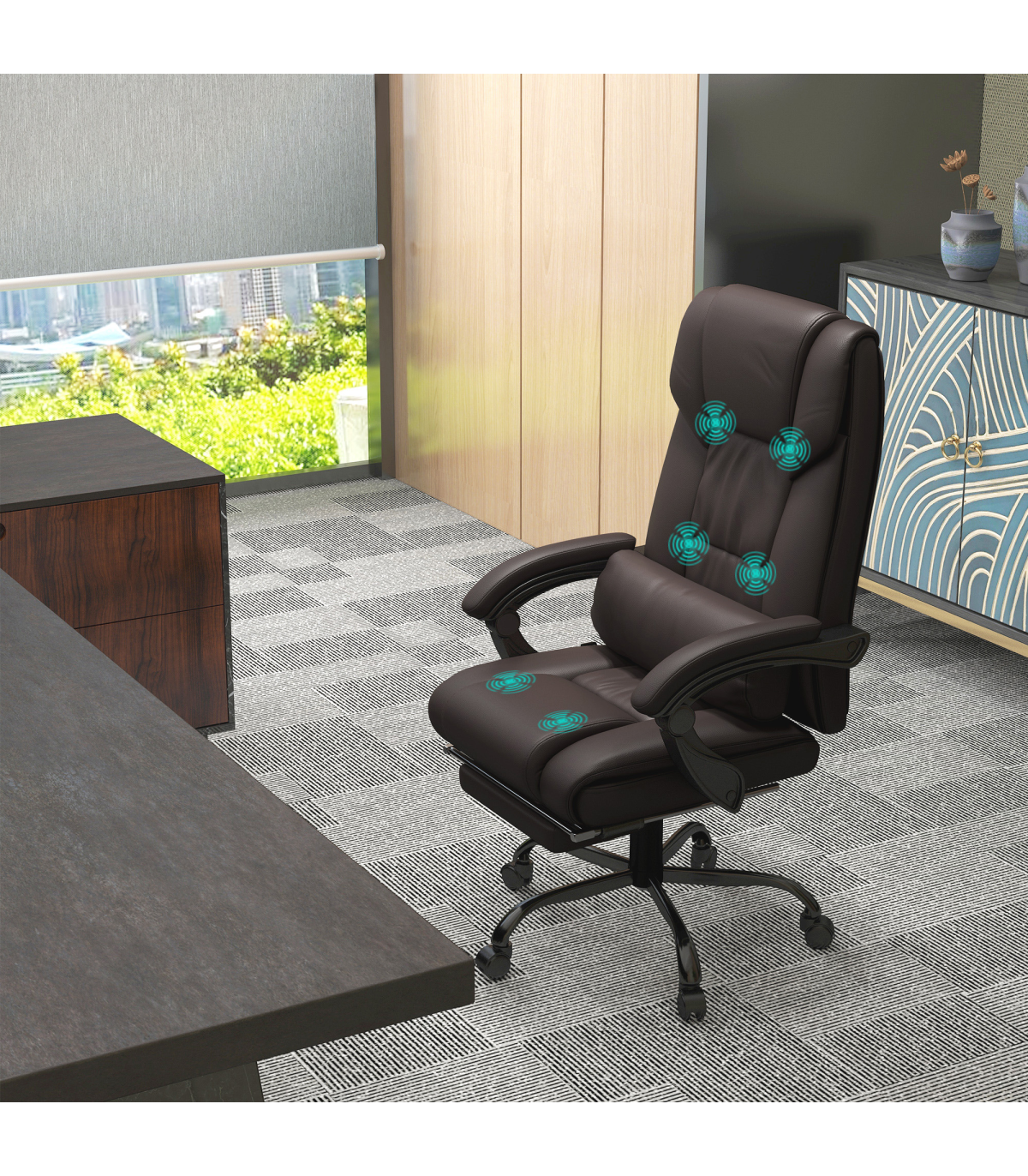 PU Leather Massage Office Chair with 6 Vibration Points Adjustable Height Brown