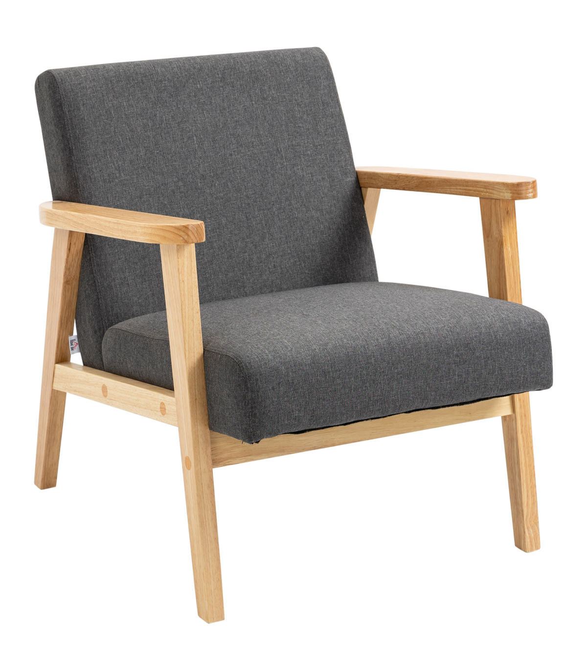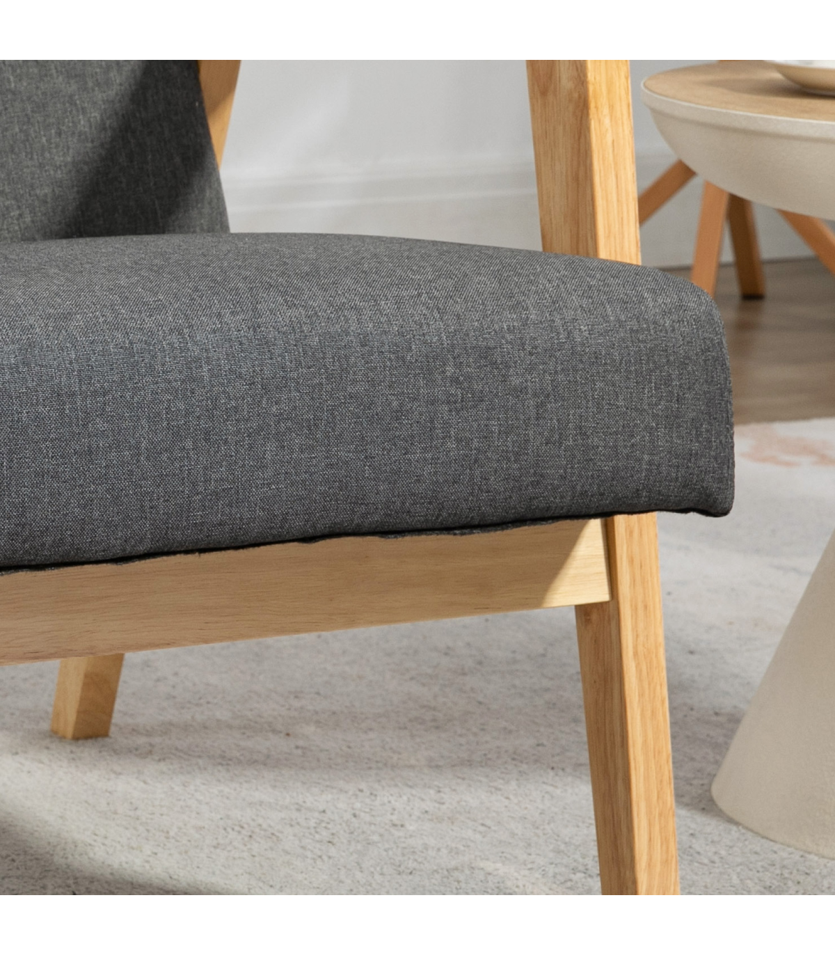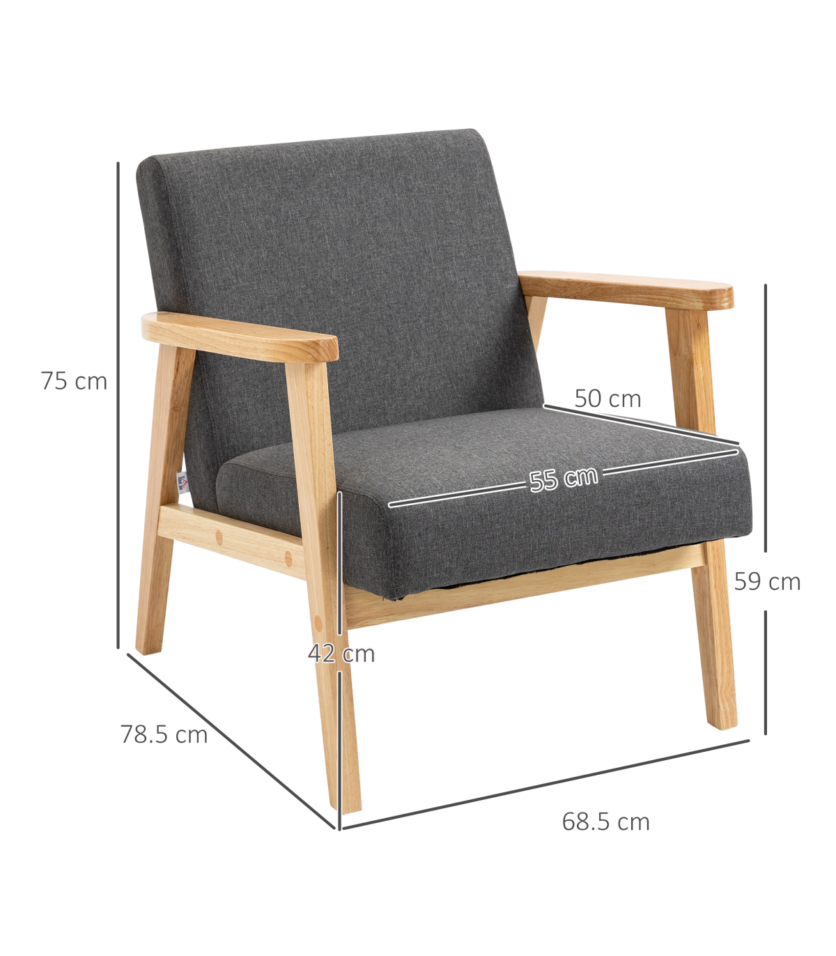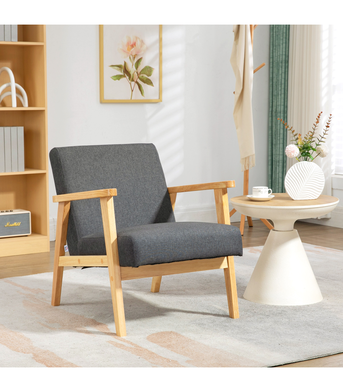 Upholstered Armchair Accent Chair w/ Rubber Wood Legs for Living Room Dark Grey