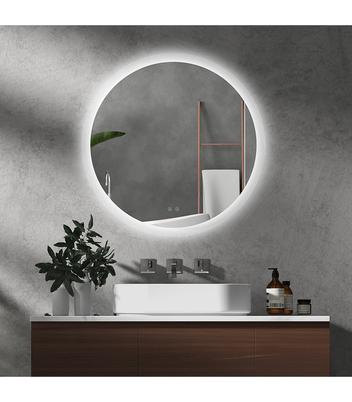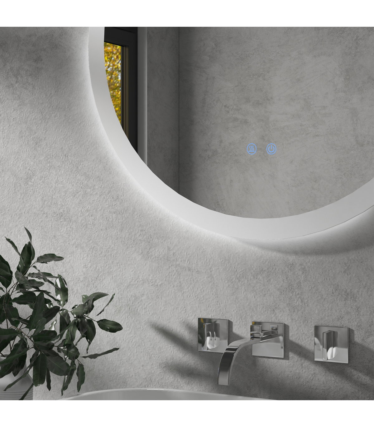 - Outer LED light: adjustable brightness, with three different colours (warm white, white and cool white) - 50,000 hours long lifespan: plenty of use - Memory function to save your previous settings: super helpful! - Smart touch operation: controls on/off, brightness and LED colour - Defog function makes it easy to see your reflection after showing - On-wall-design is space-saving - IP44 rated: safe in moisture and water environments - Wire-connected design: requires professional installation