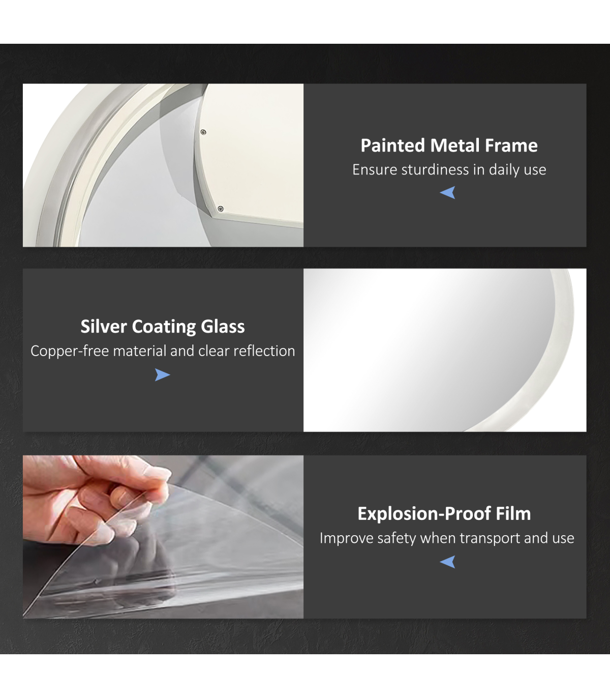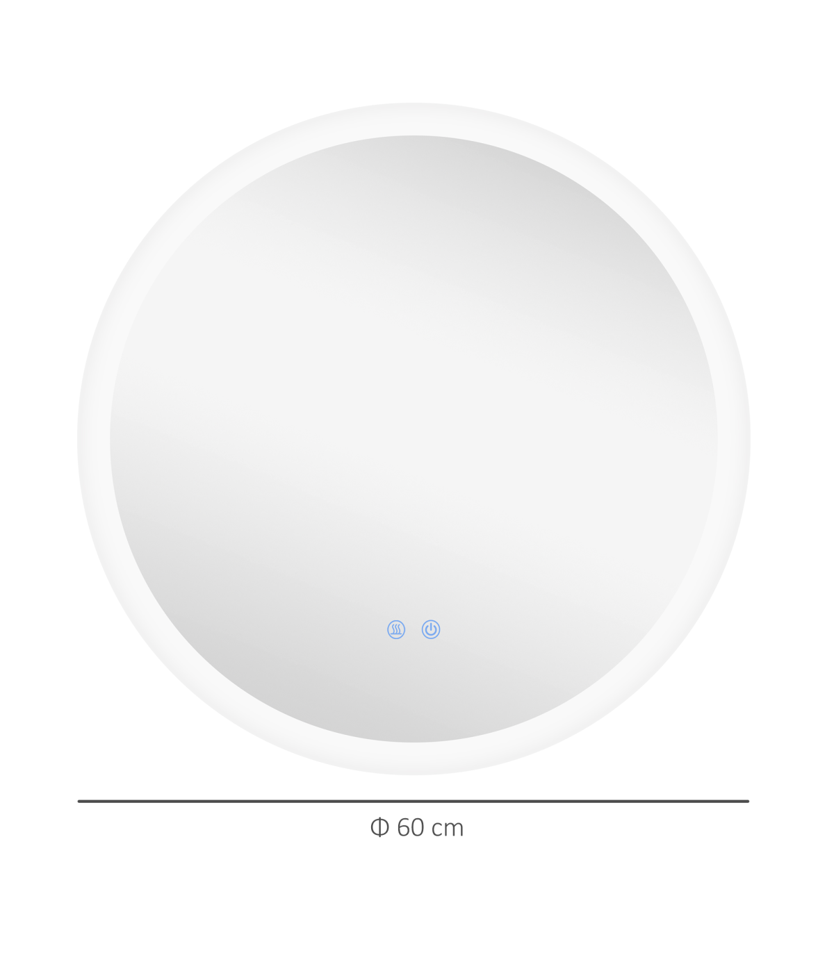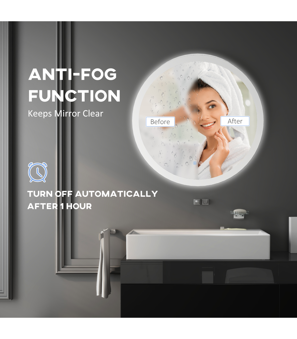 Running a bright ring around style, this kleankin bathroom led mirror is an excellent addition to your home. A clean and simple rounded shape, it comes with an outer LED light: choose between the warm white, white and cool colour and adjust the brightness to what you want - ideal for using both day and night. Controlled by a touch switch, it's easy to use - also has handy memory function. Complete with the defog feature, so you can still use this mirror around steam and mist.